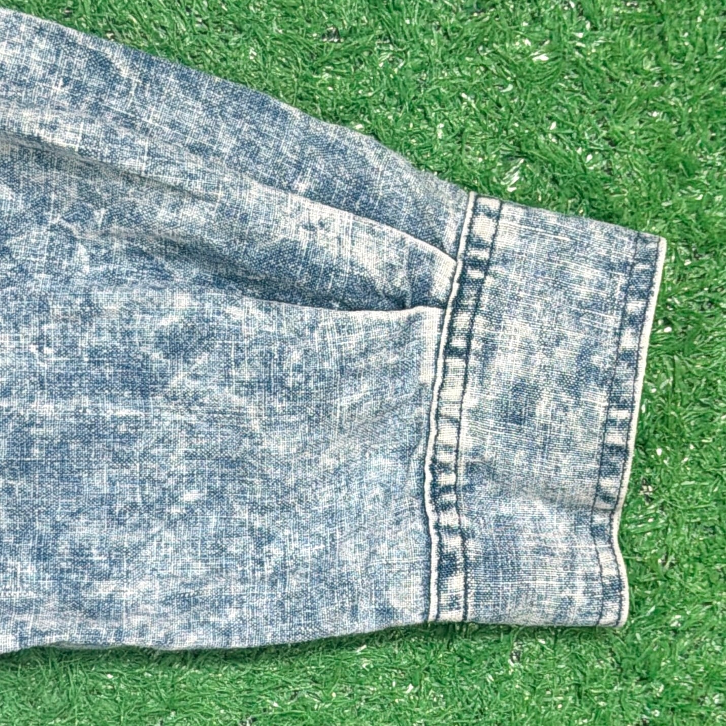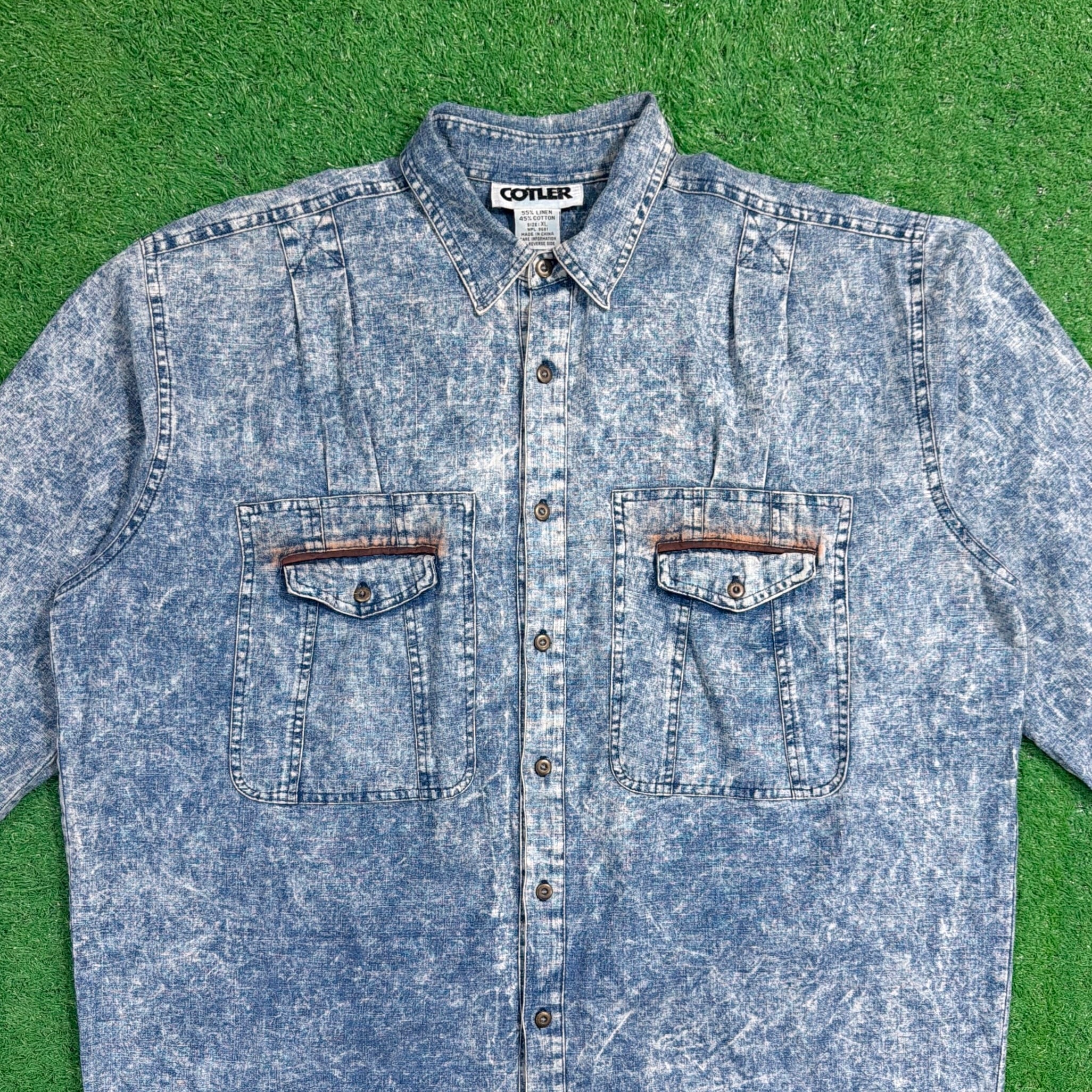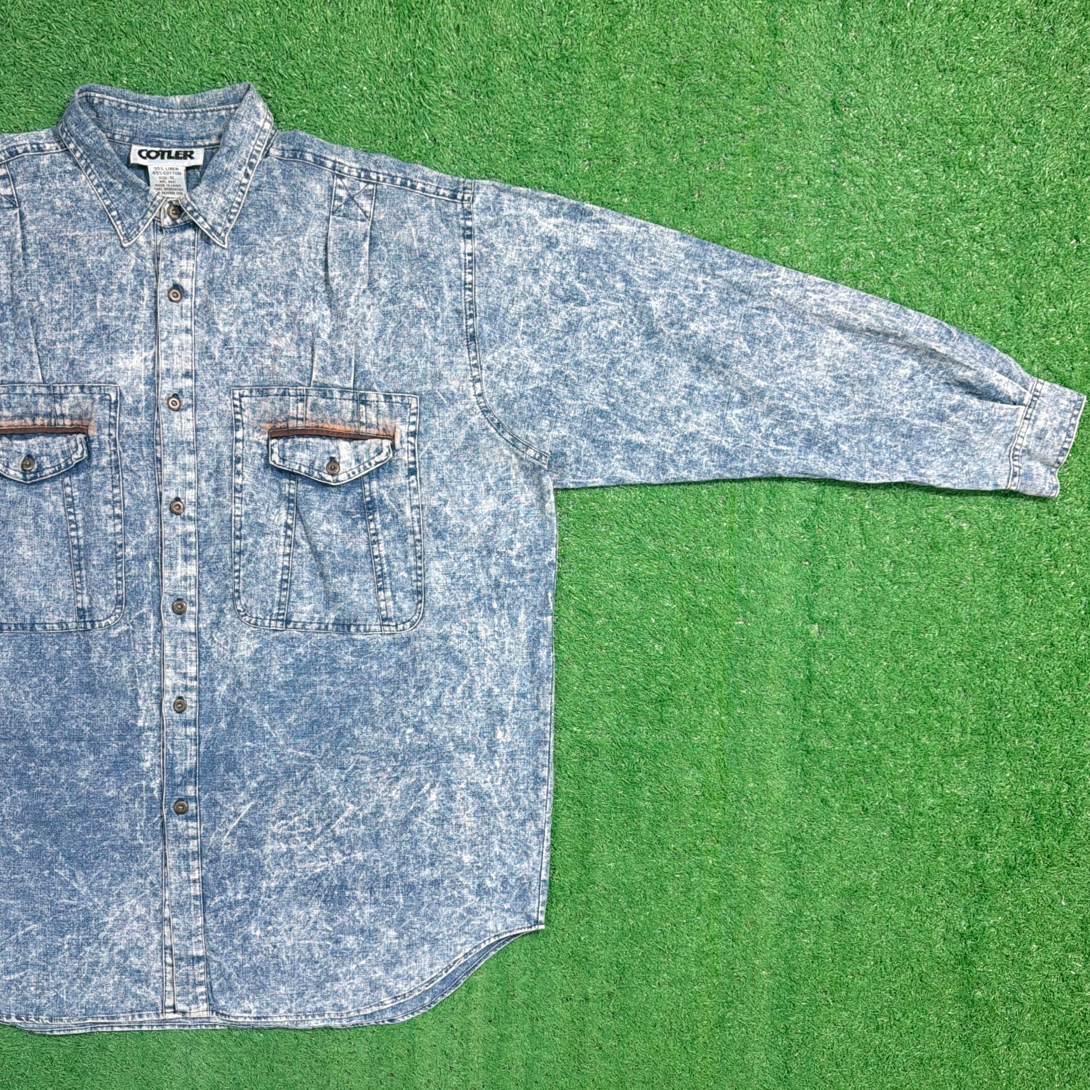 90年代らしいケミカルウォッシュの風合いが印象的な、コットン×リネン素材のデザインシャツです。