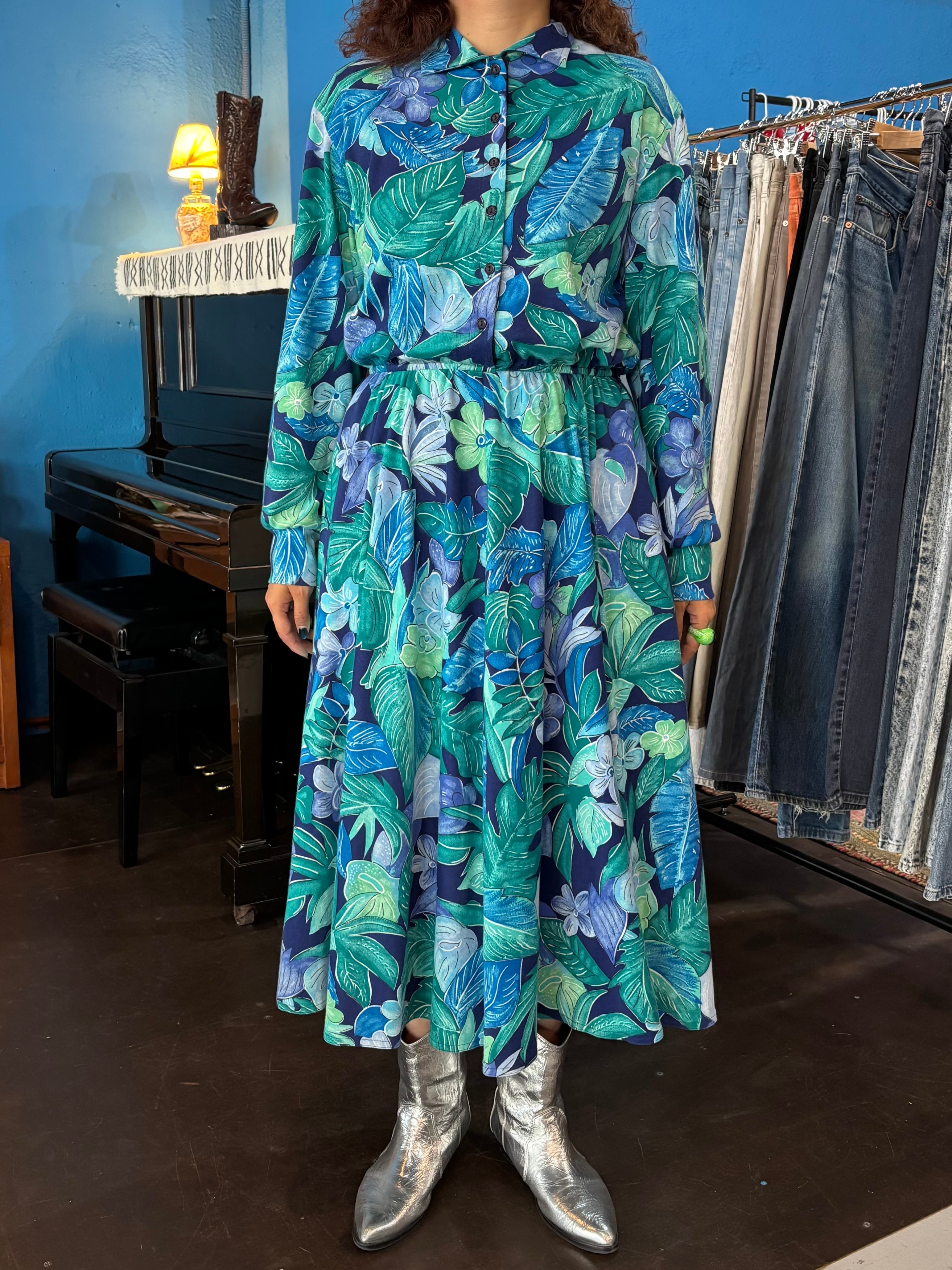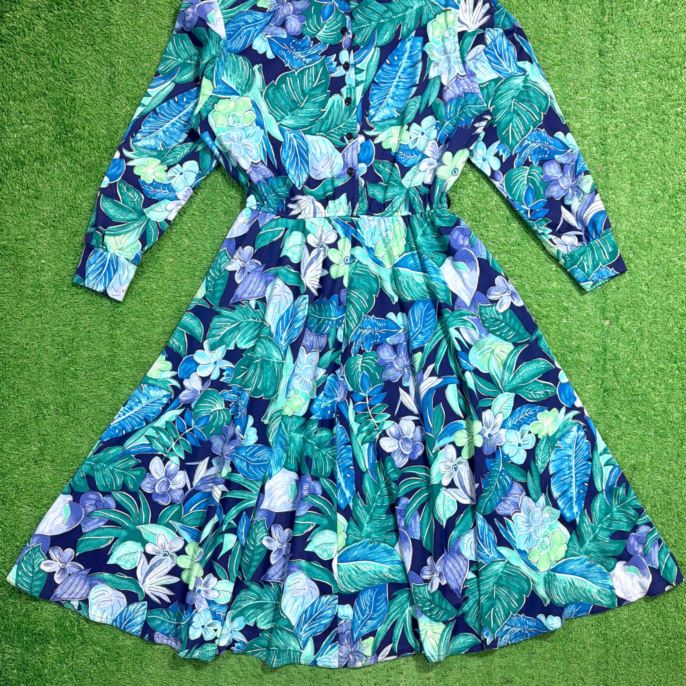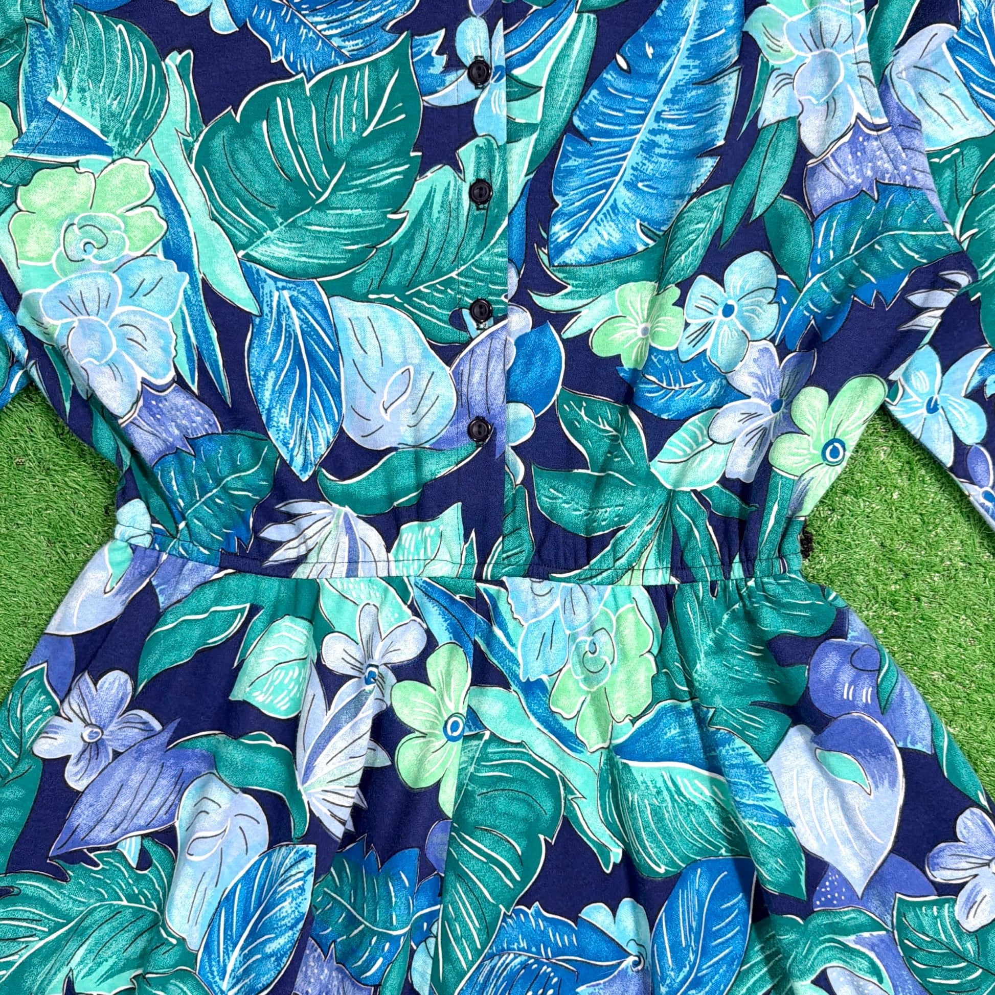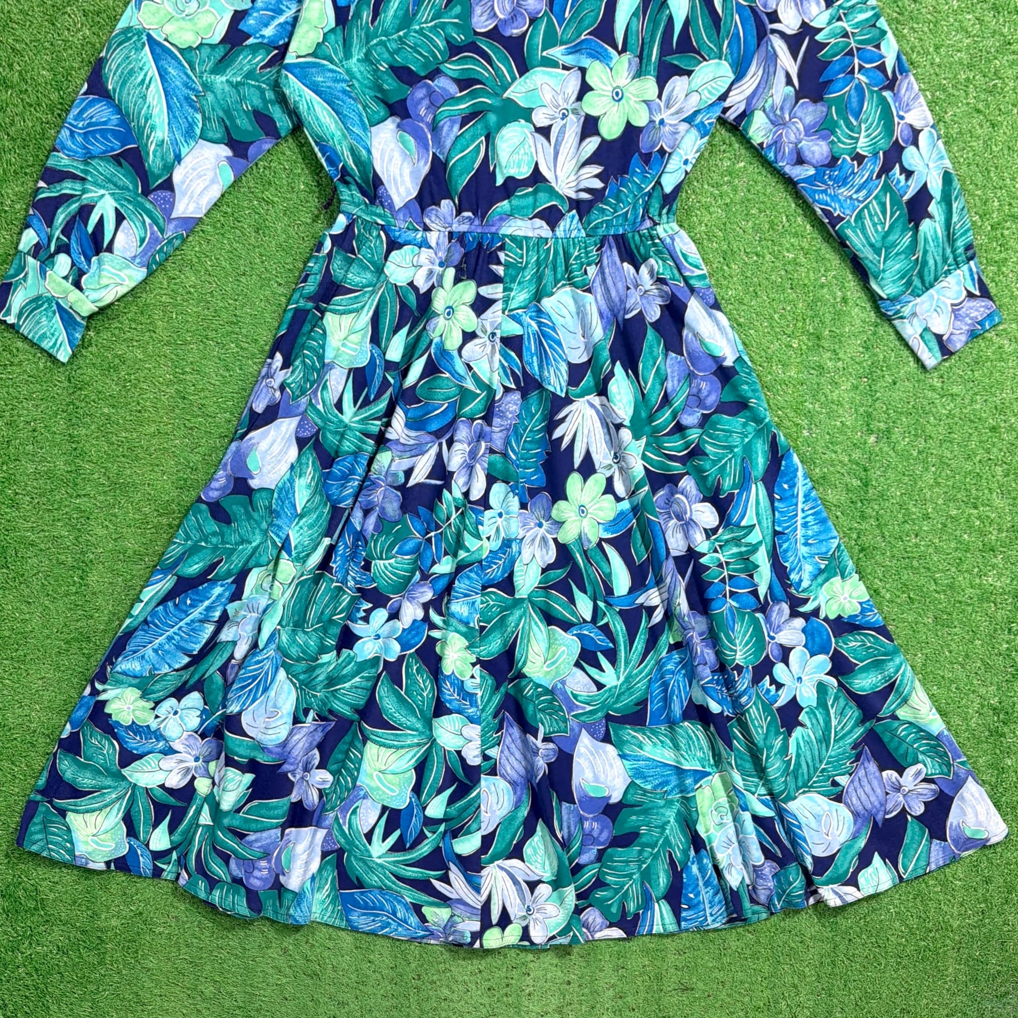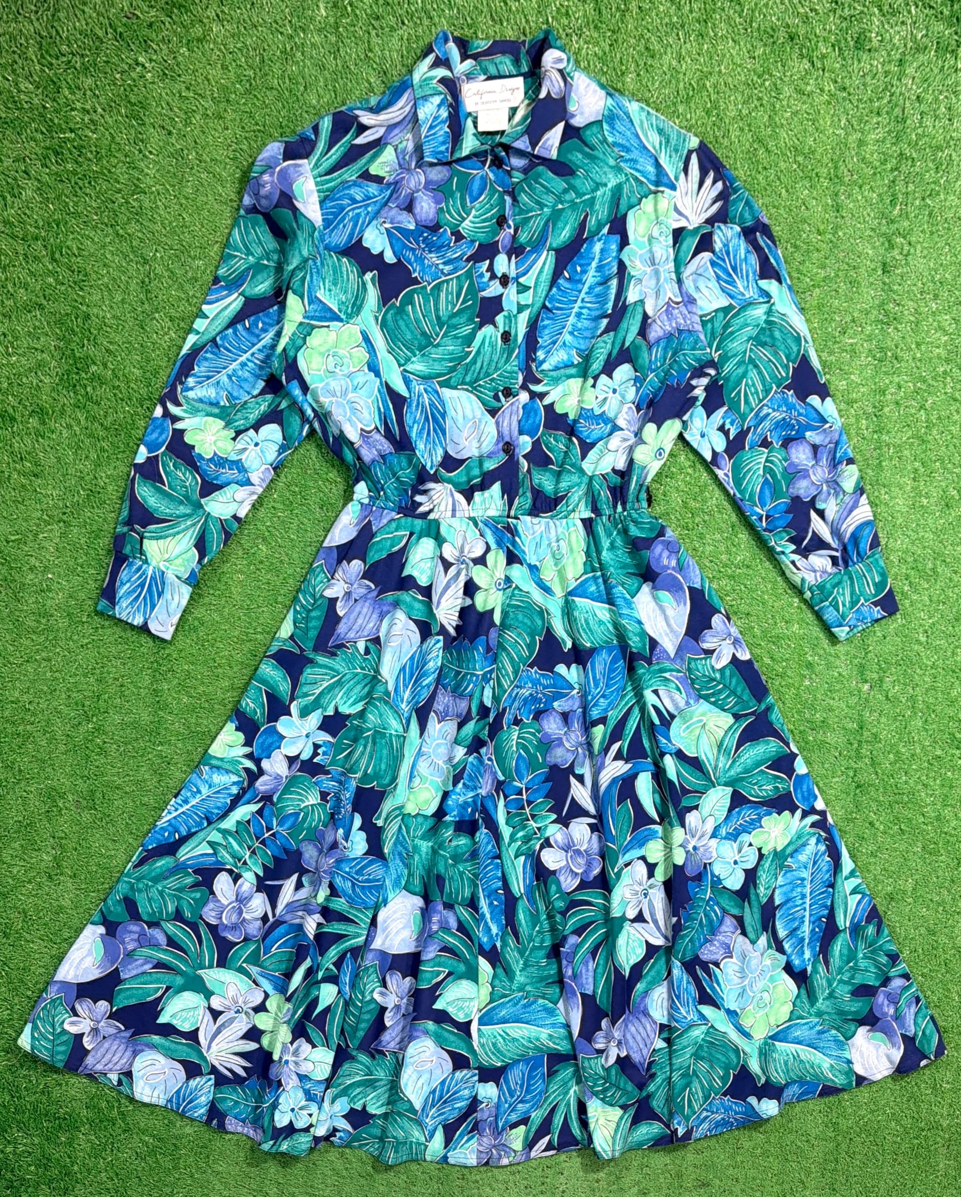 【Lady's】 80s ボタニカル柄 ワンピース / 80年代 ワンピ レディース 総柄 1561
