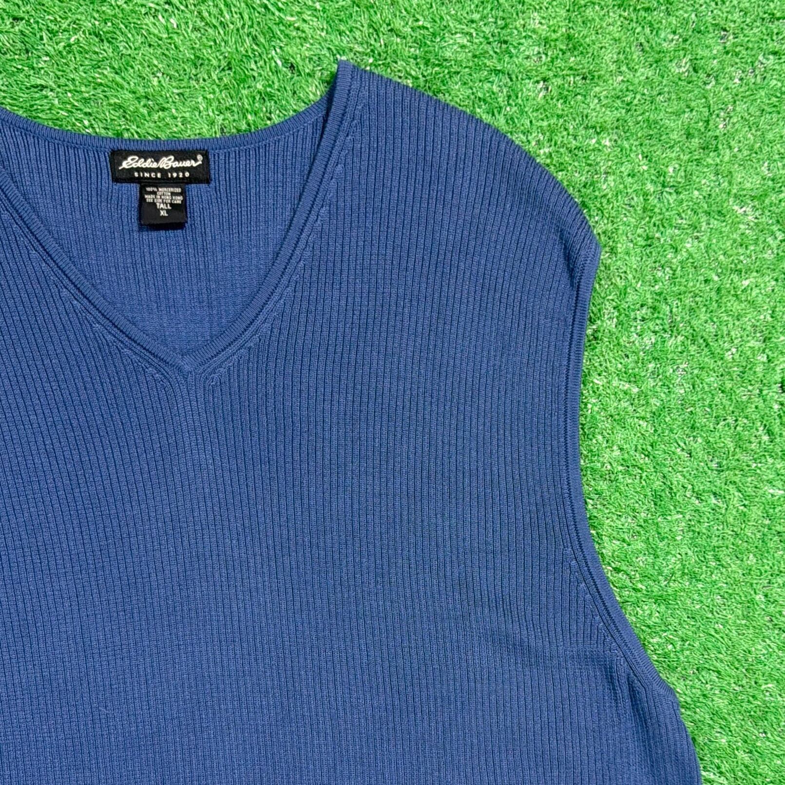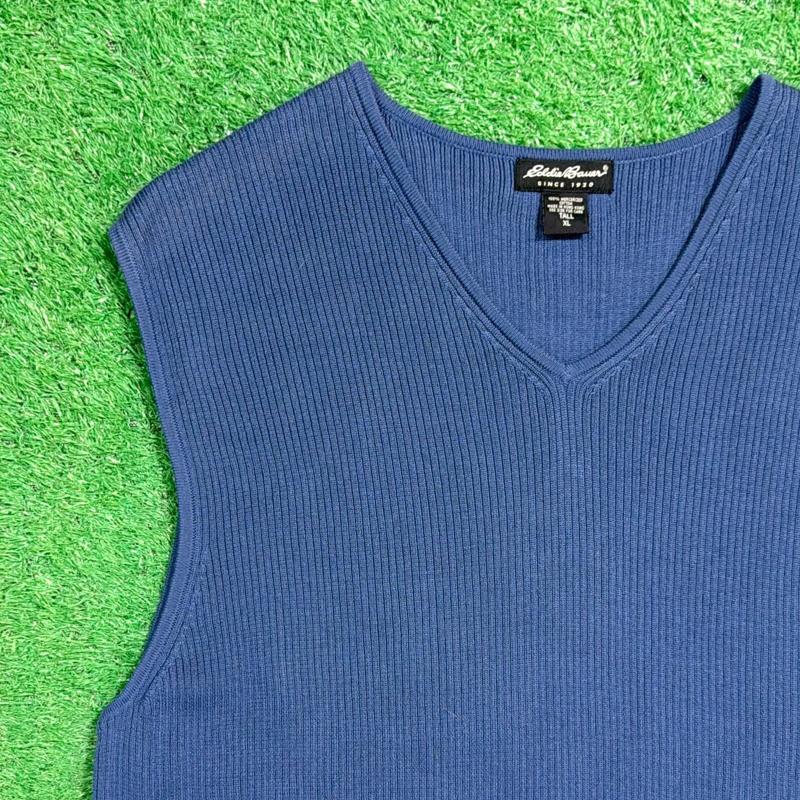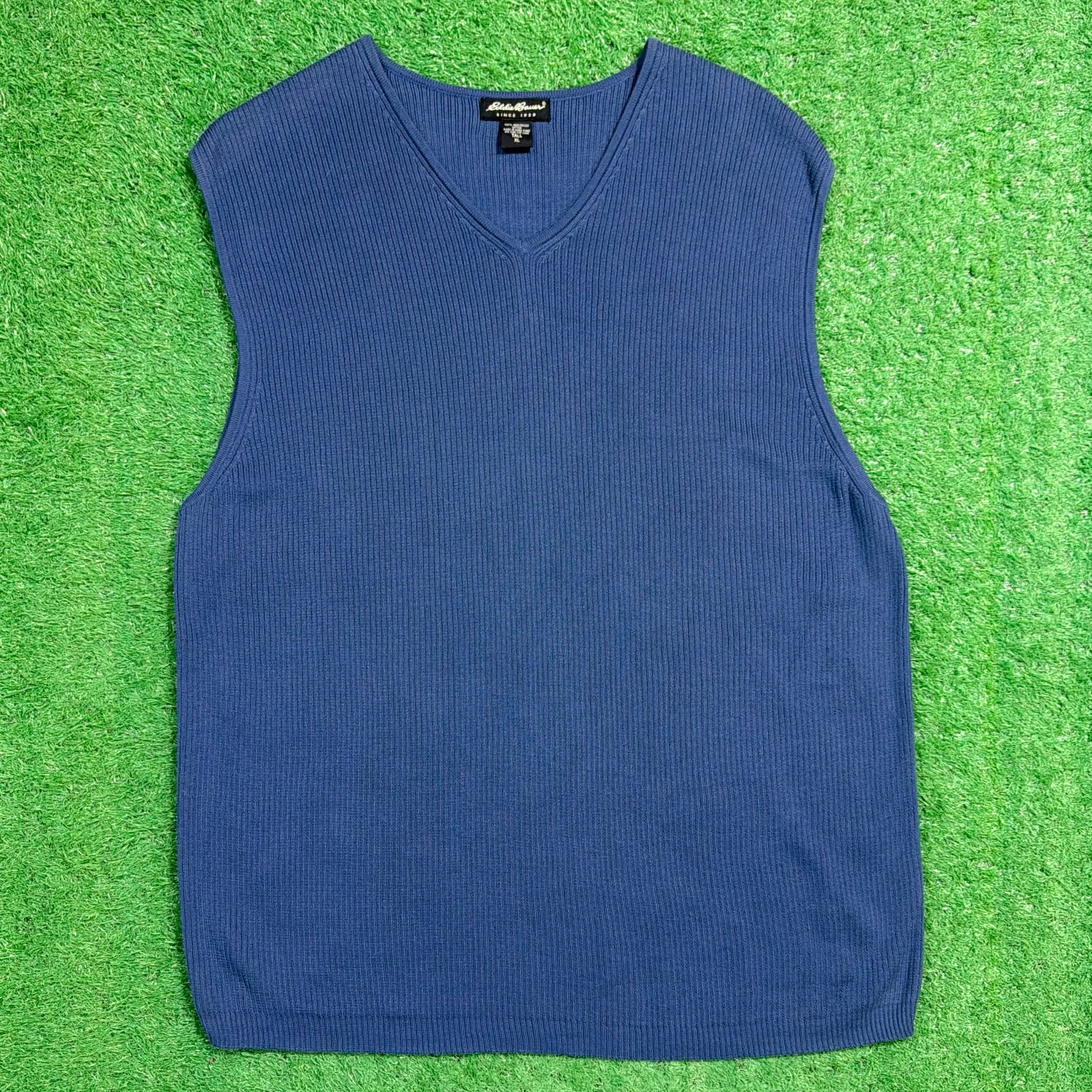 【Men's】 00s - Eddie Bauer リブ編み コットン ニット ベスト / エディバウアー 古着 メンズ 1562
