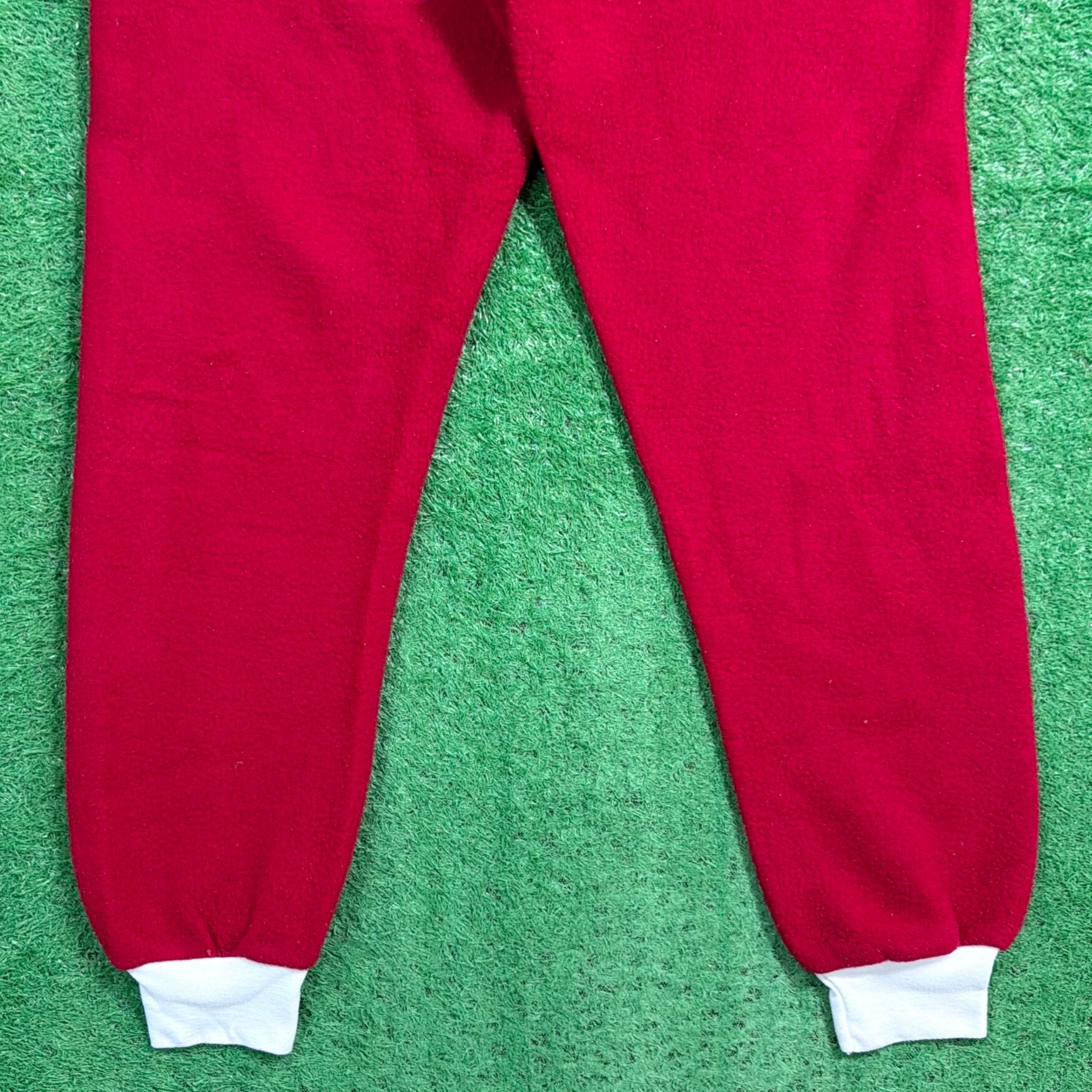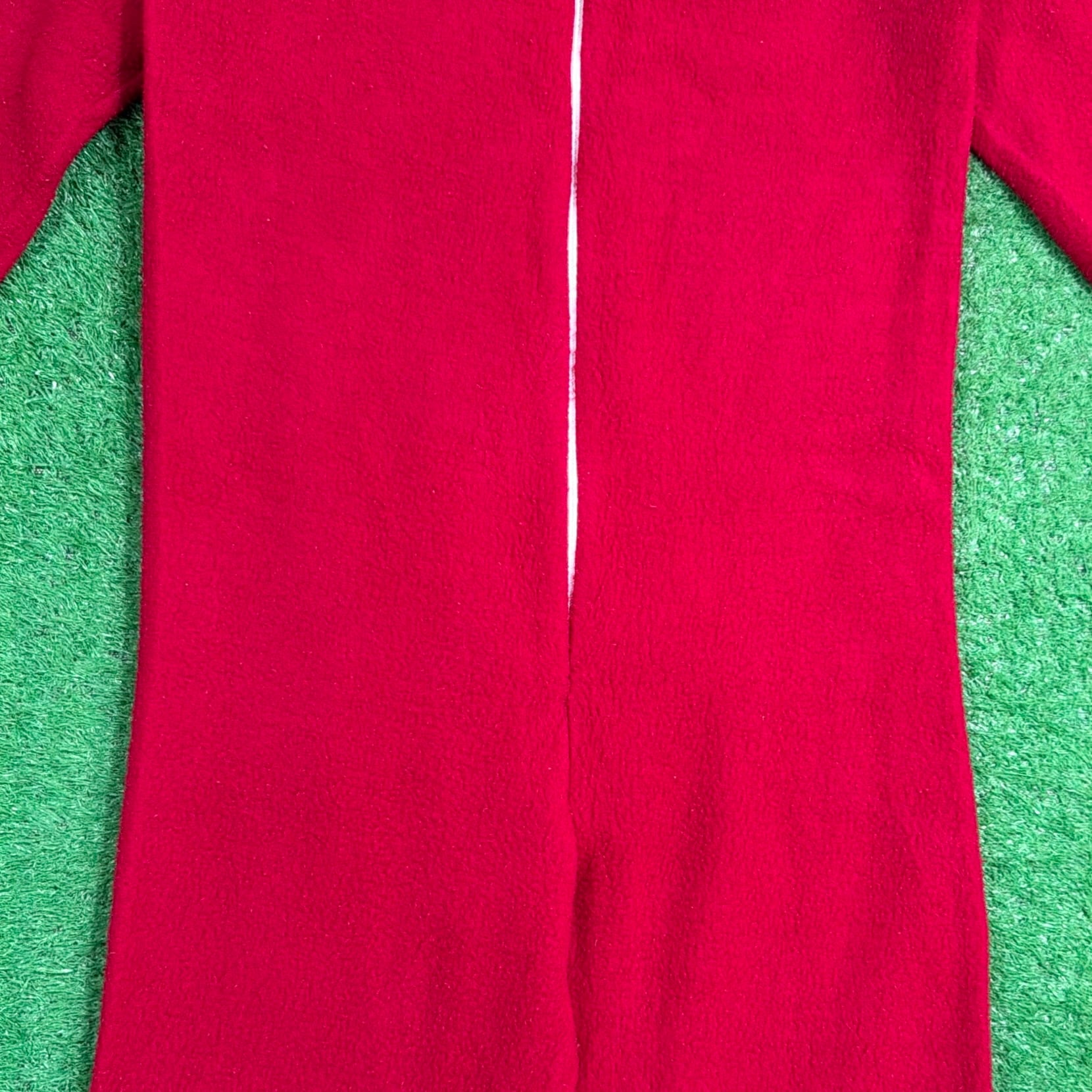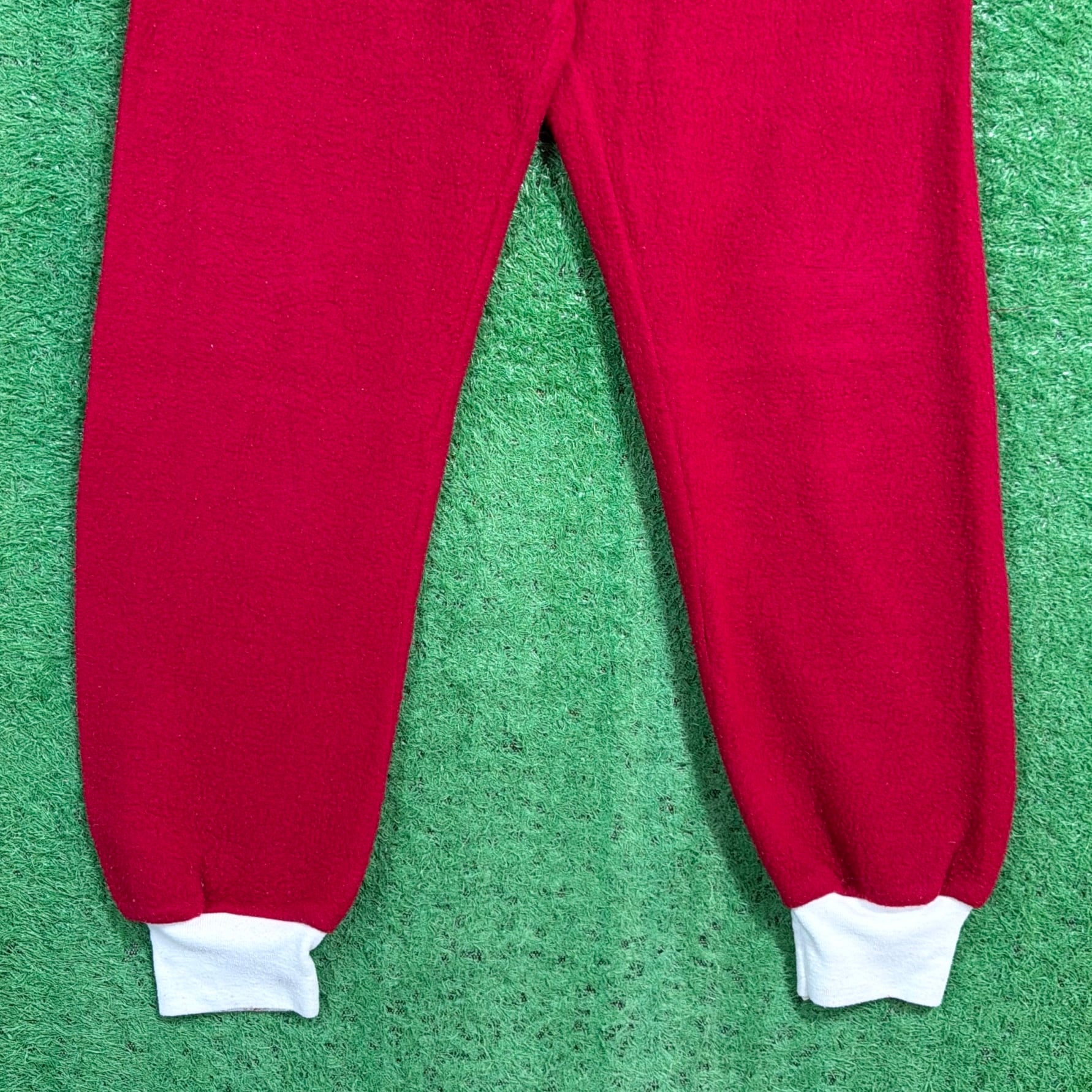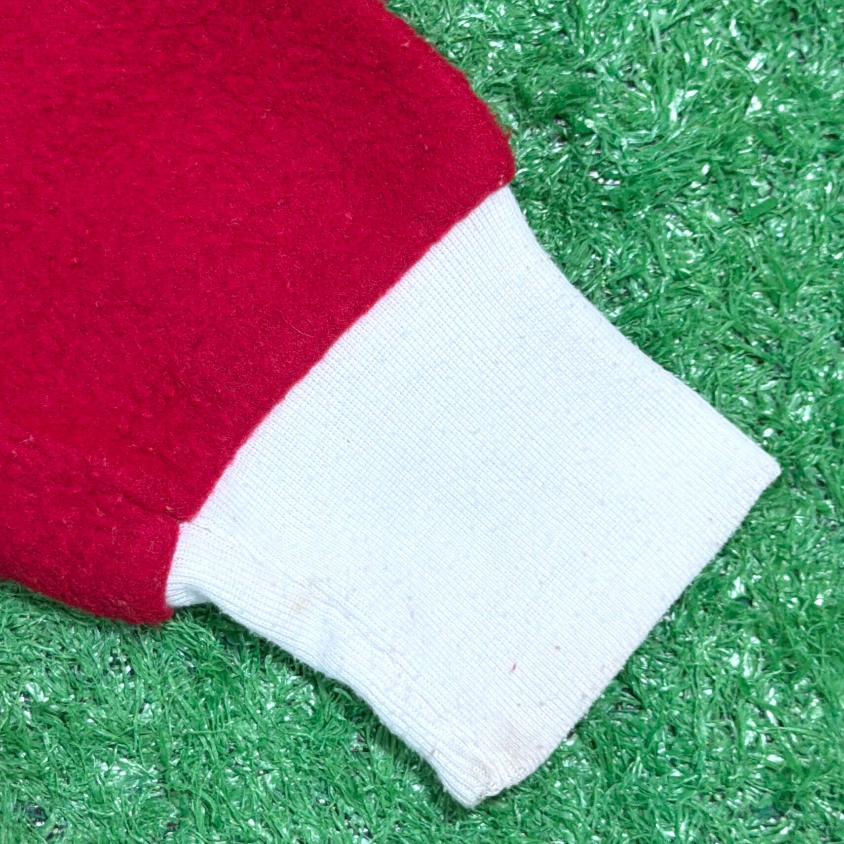 赤×白のコントラストが印象的で、当時らしいレトロでポップな雰囲気がしっかり感じられる一着。フロントはジップ仕様で着脱しやすく、袖口・足元はリブになっており、全体的にリラックス感のあるシルエットです。