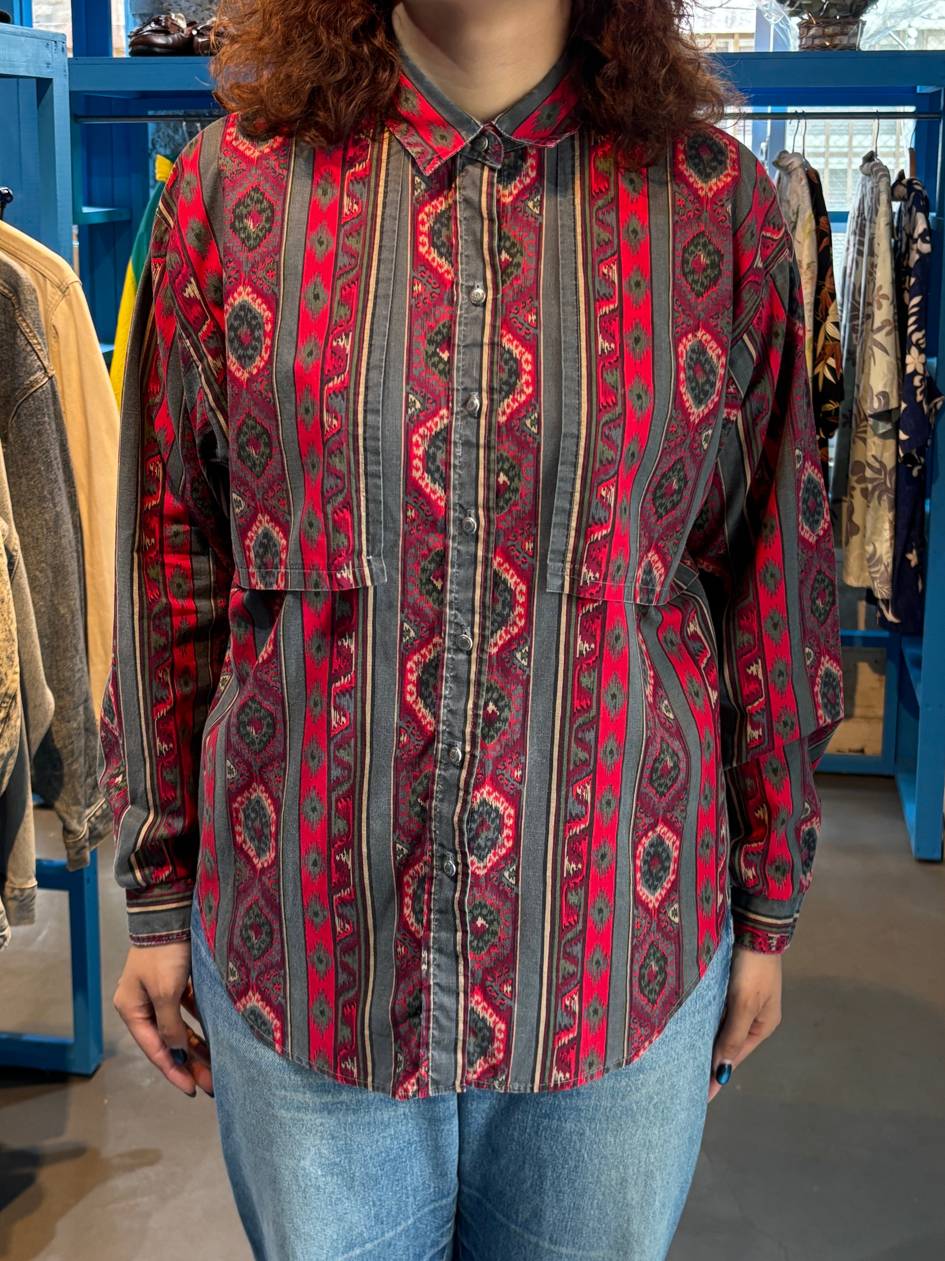 90s USA製 赤 ネイティブ柄 総柄 シャツ