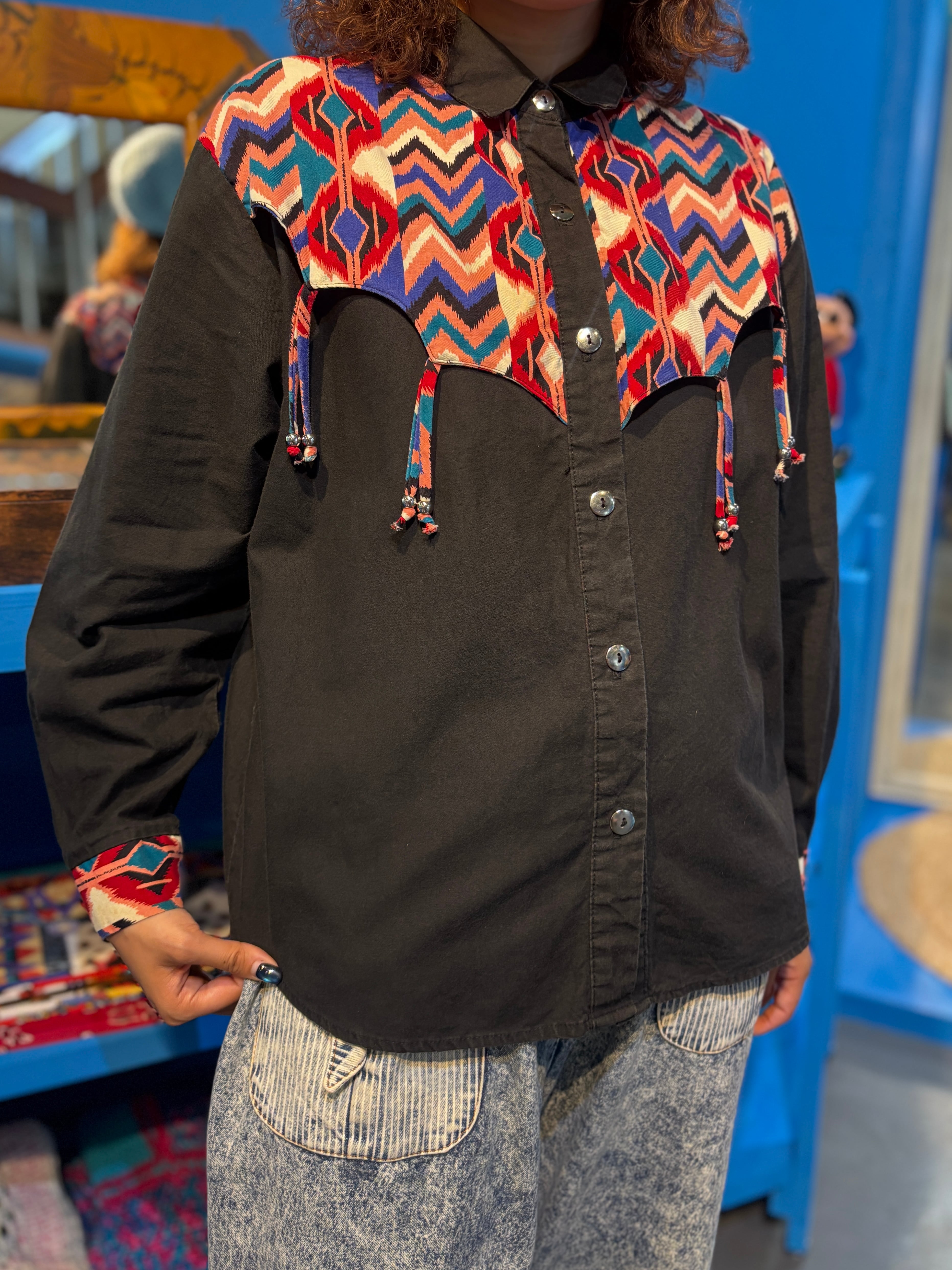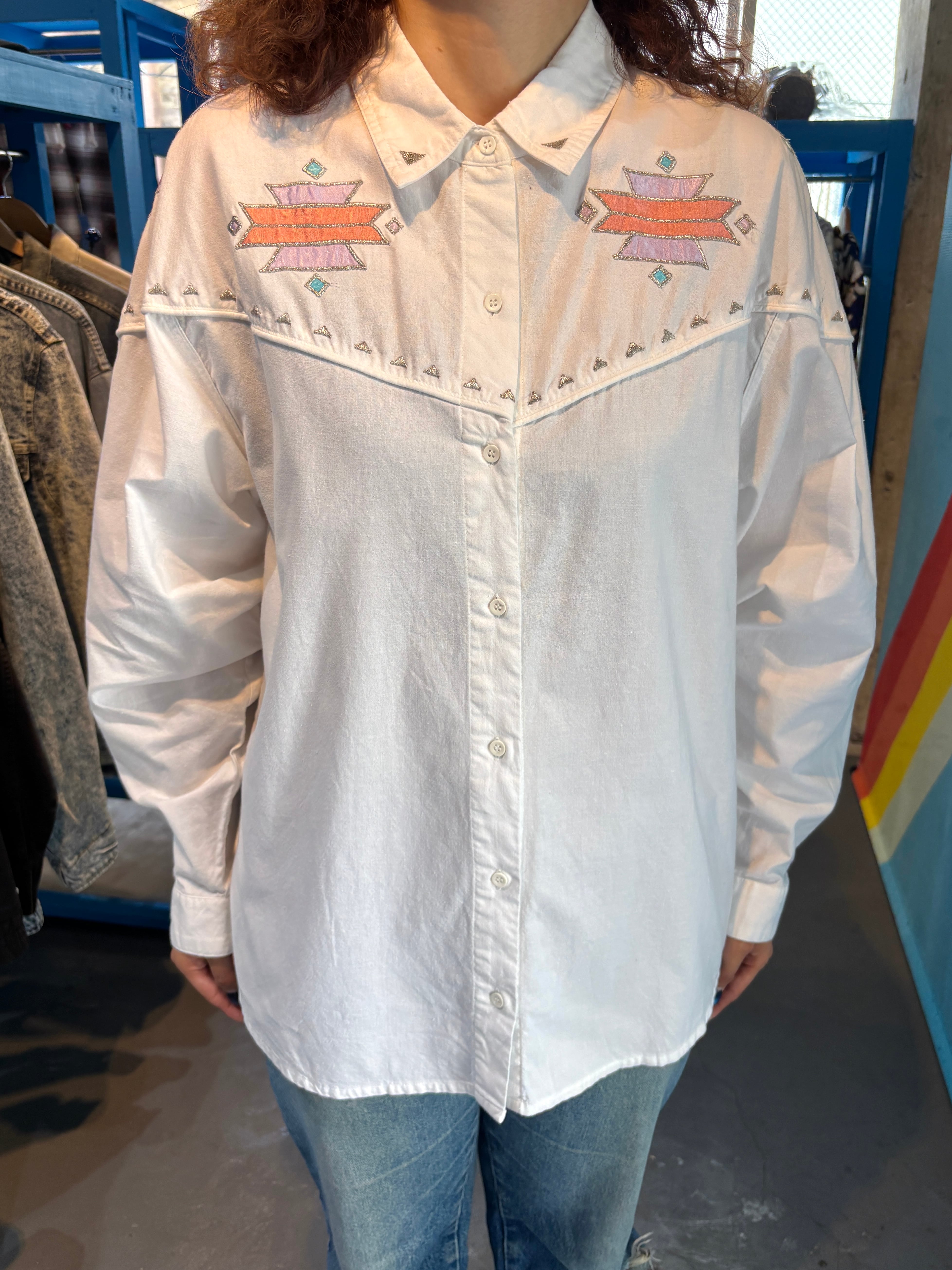 80s-90s ネイティブデザイン 刺繍 白シャツ
