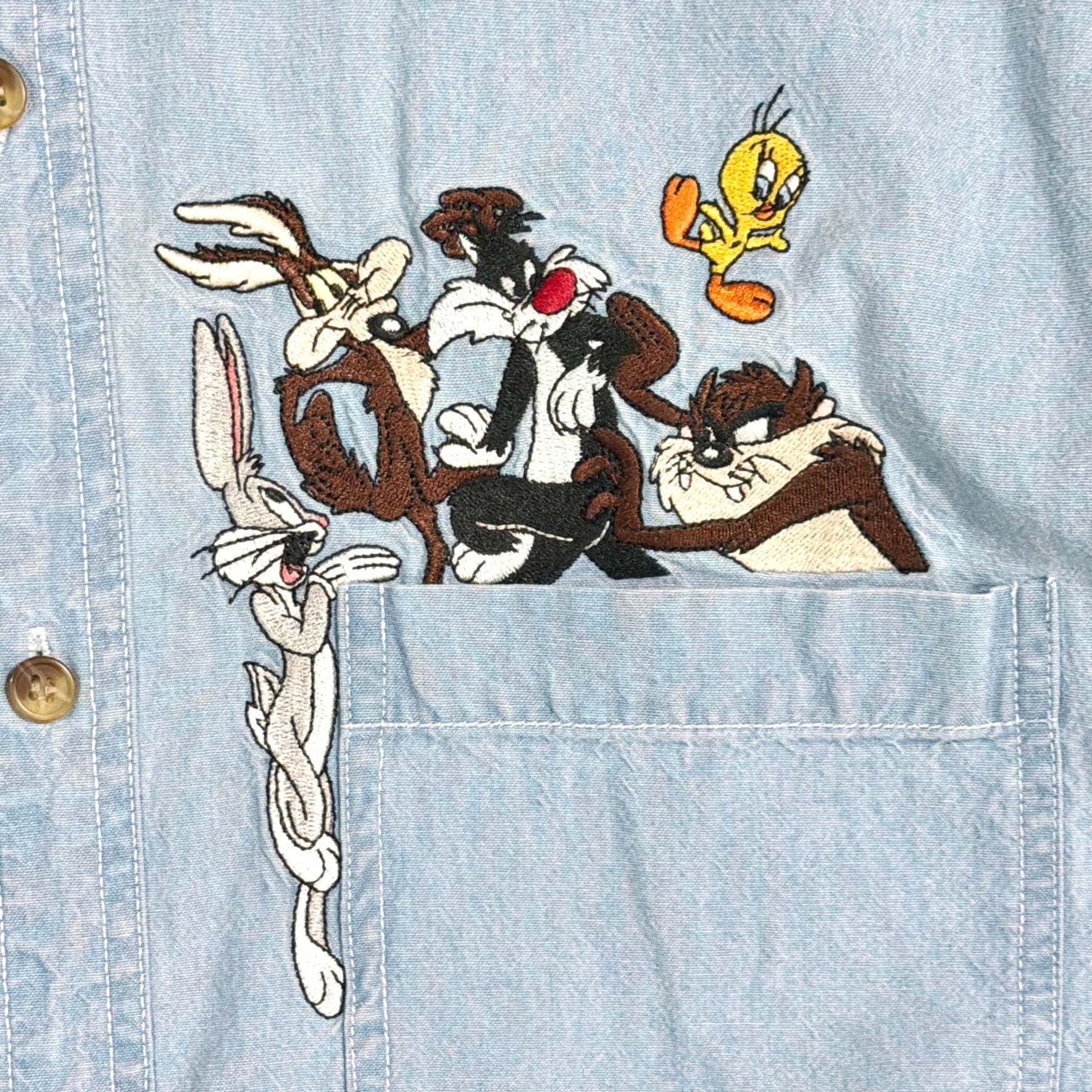 1990年代のLooney Tunesの刺繍入りデニムシャツです。