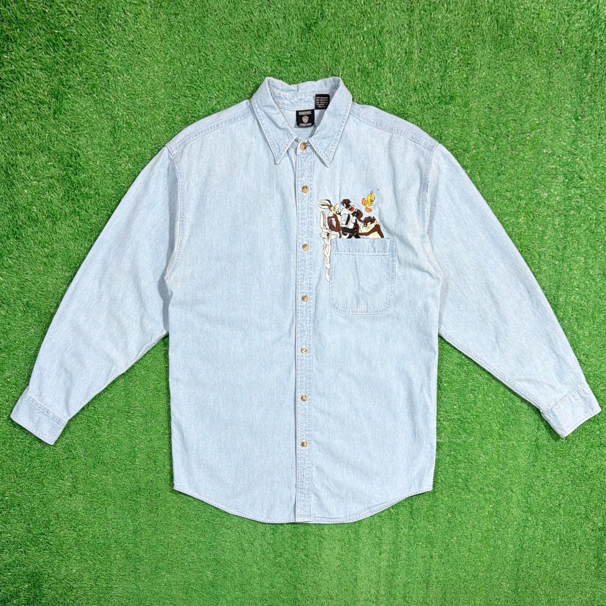 【Men's】 90s Looney Tunes 刺繍 デニムシャツ / 90年代 シャツ デニム ルーニー・テューンズ メンズ 1596