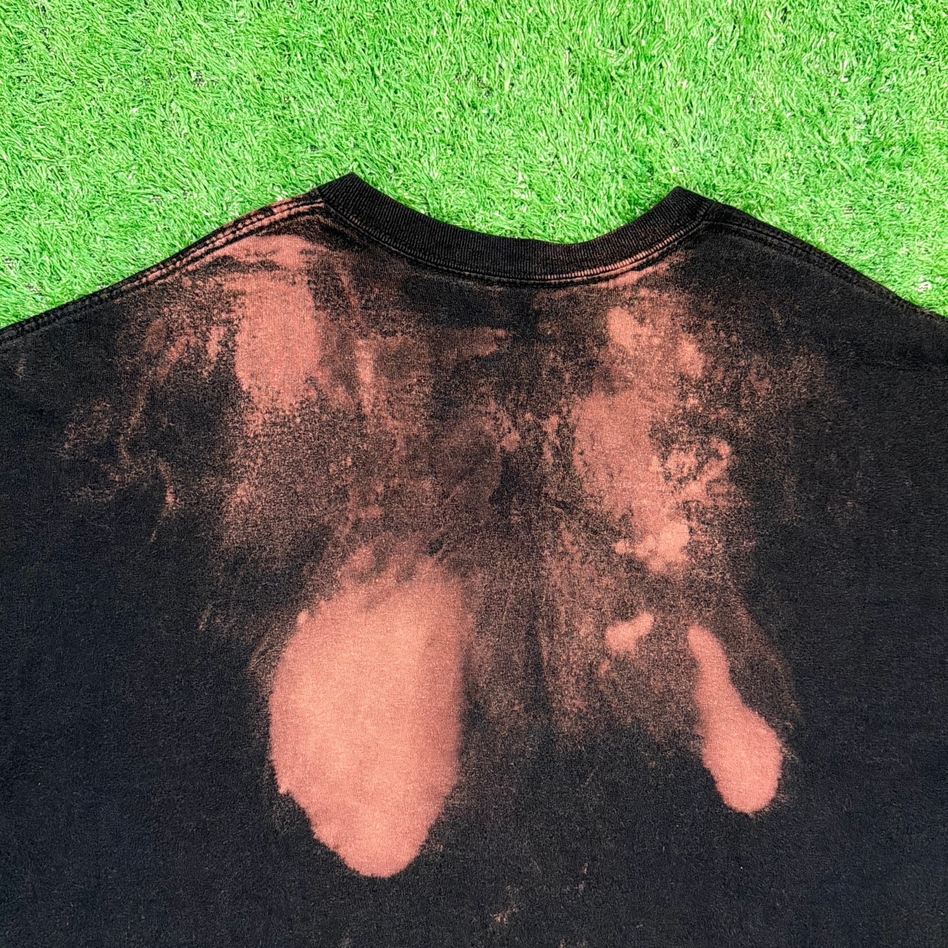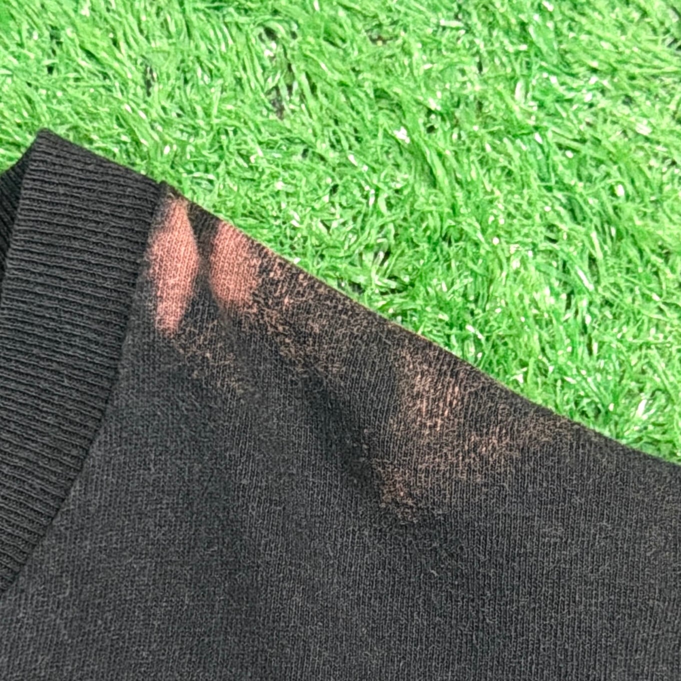 背面には大胆な色落ちが見られ、着込まれたことで生まれた独特の風合いが古着らしい雰囲気を感じさせます。ダメージや色落ちも含めて一点ものの表情を楽しめるTシャツです。