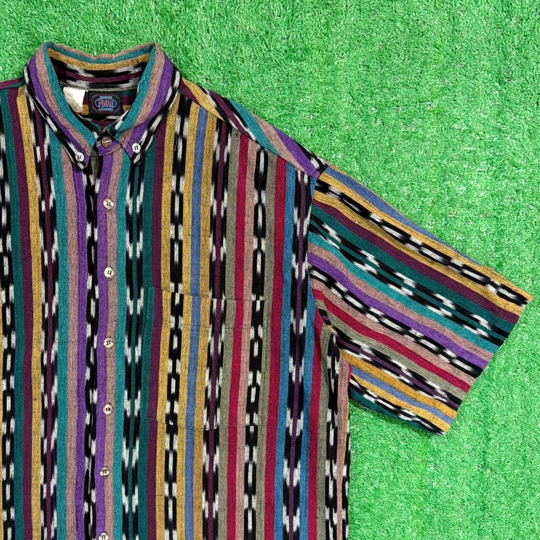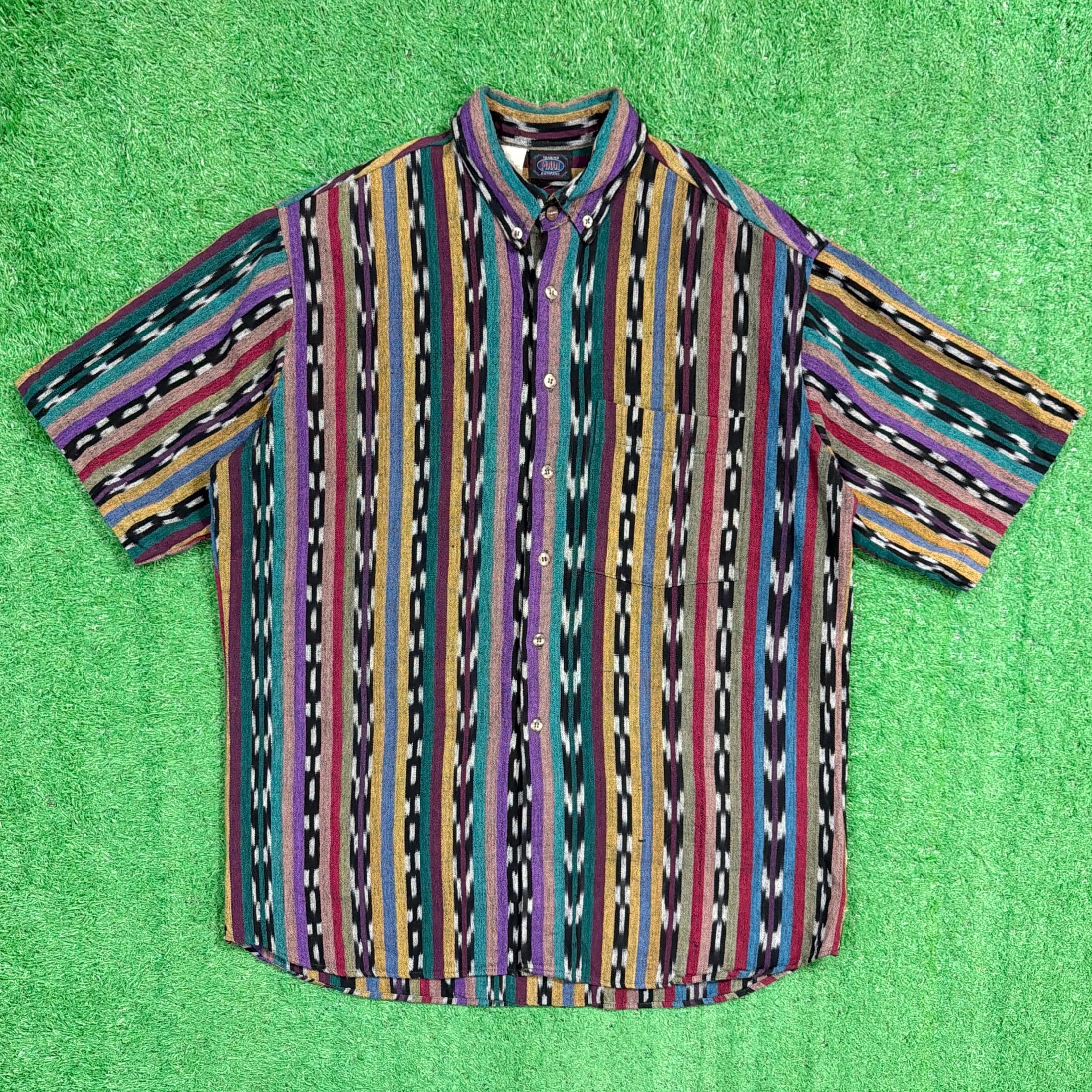 1990年代頃のネイティブ柄ボタンダウン半袖シャツです。