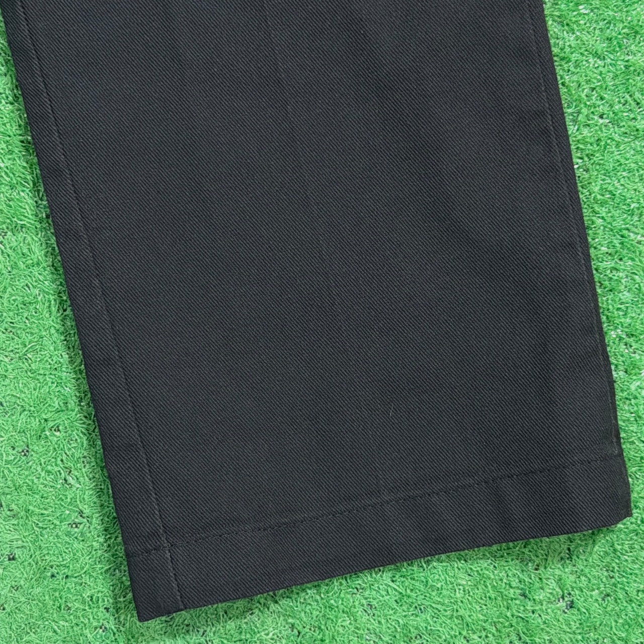 ブラックカラーのシンプルなデザインで、どんなスタイリングにも取り入れやすく、カジュアルからストリートまで幅広く活躍します。センタープレス入りで、ラフすぎずきれいめにも合わせやすいのも魅力です。