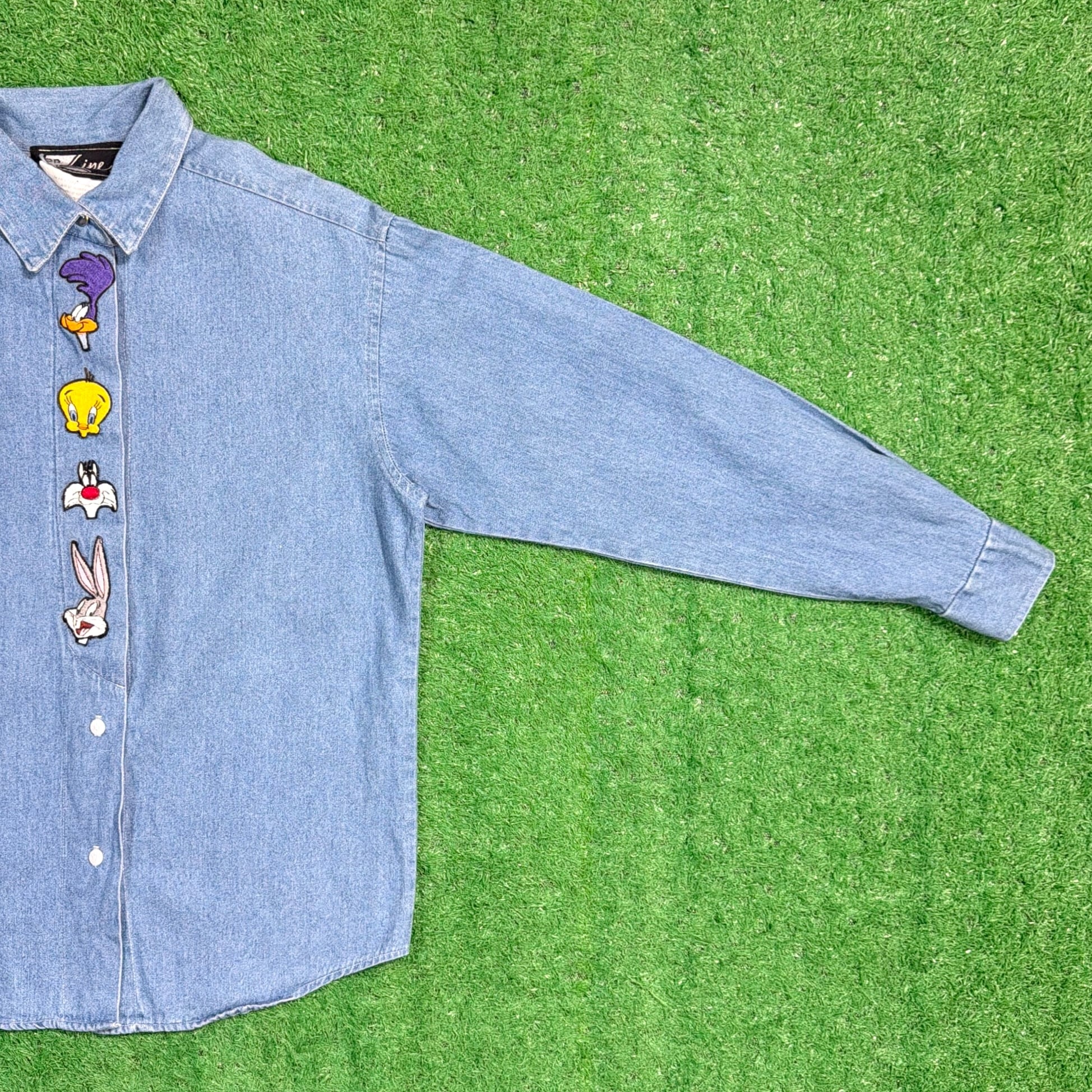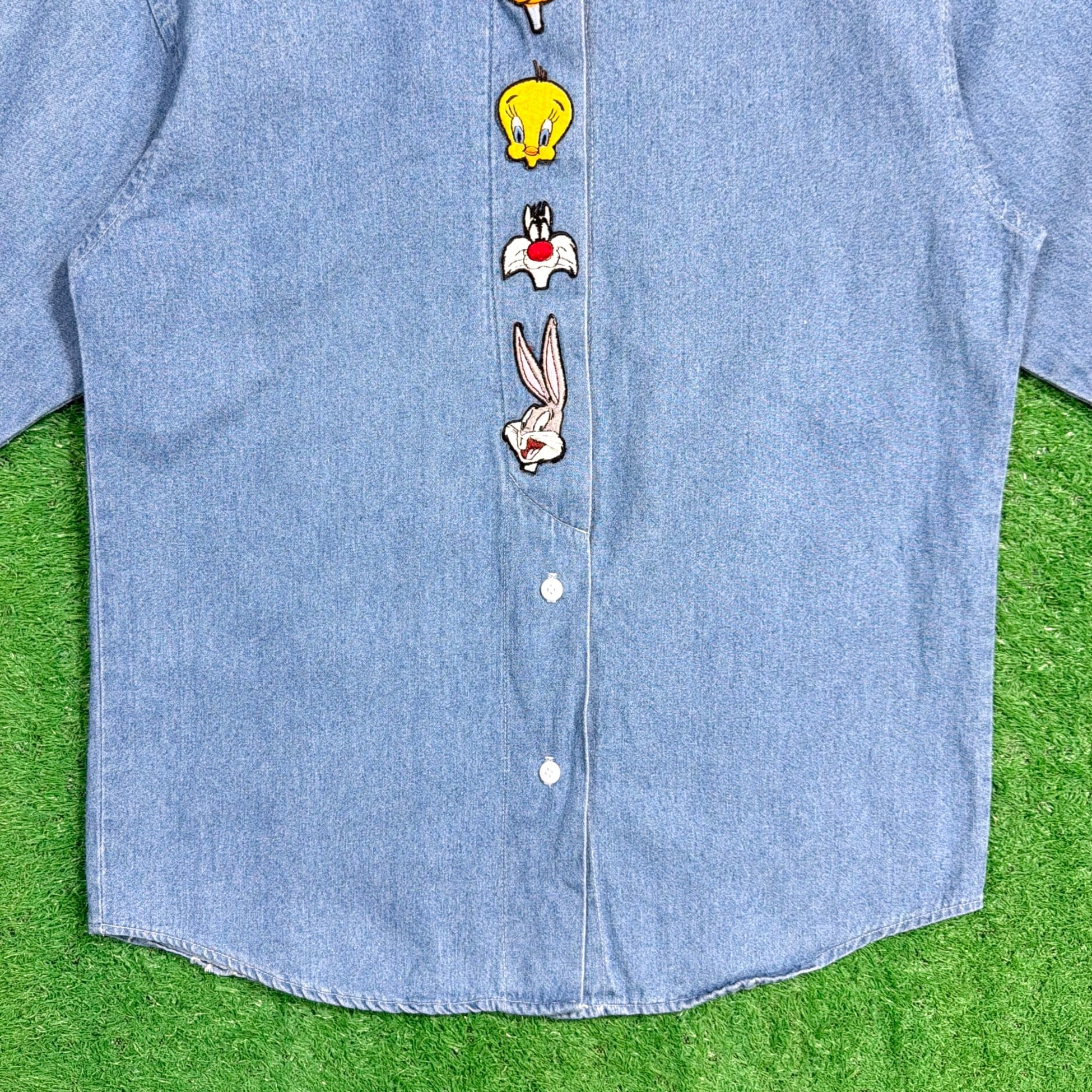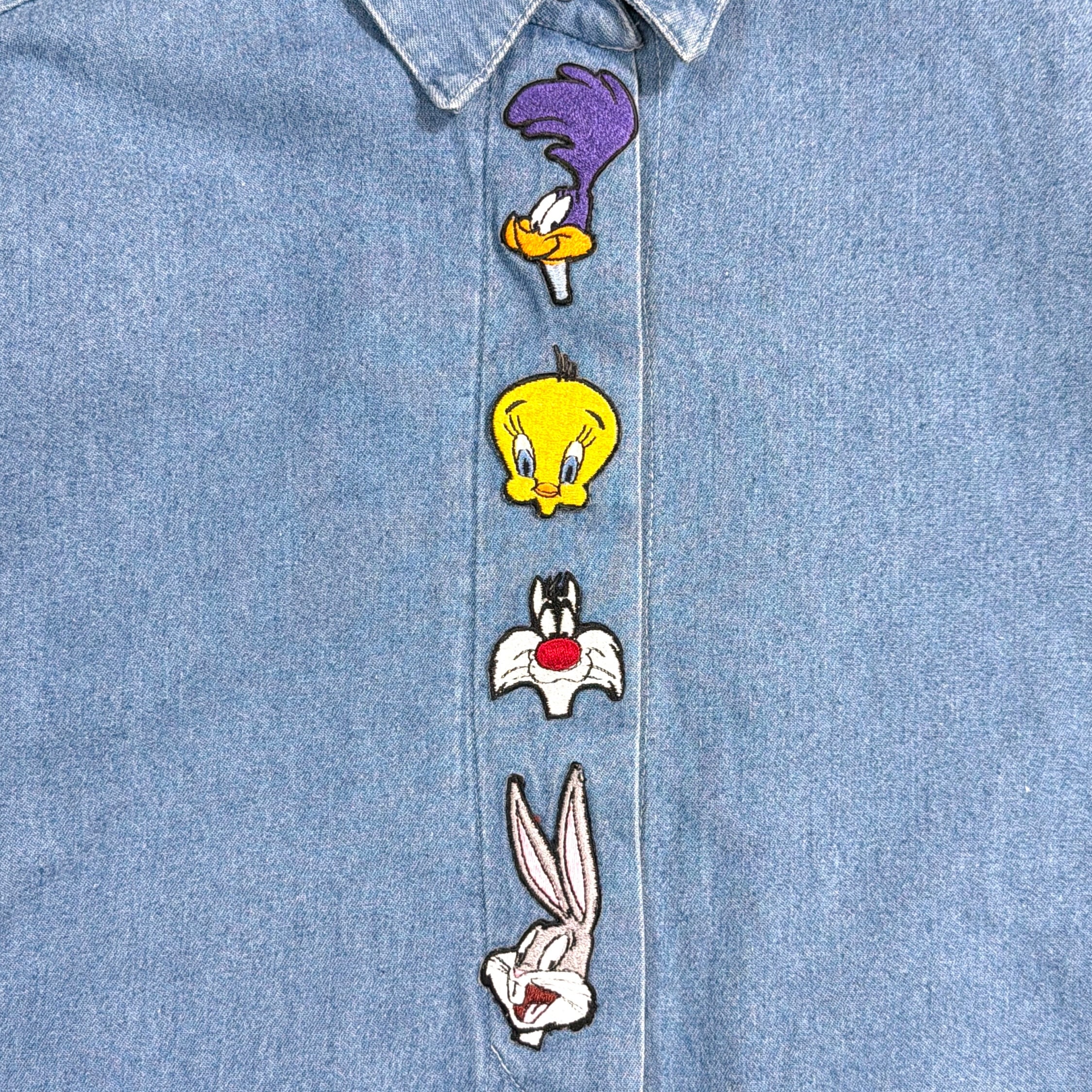 1990年代のアメリカ製、Looney Tunesのワッペン付きデザインデニムシャツです。