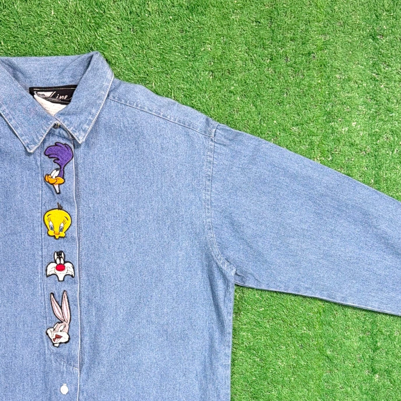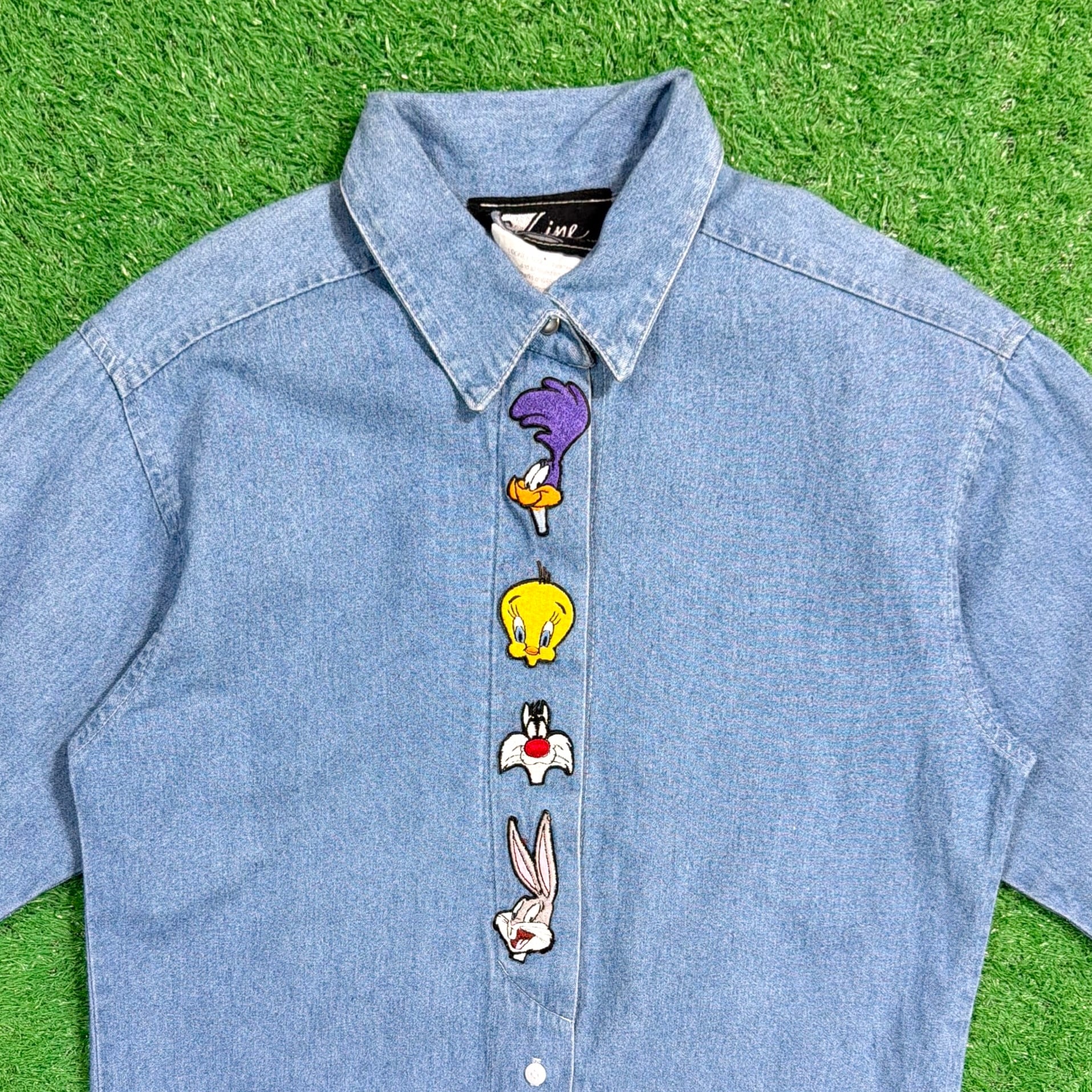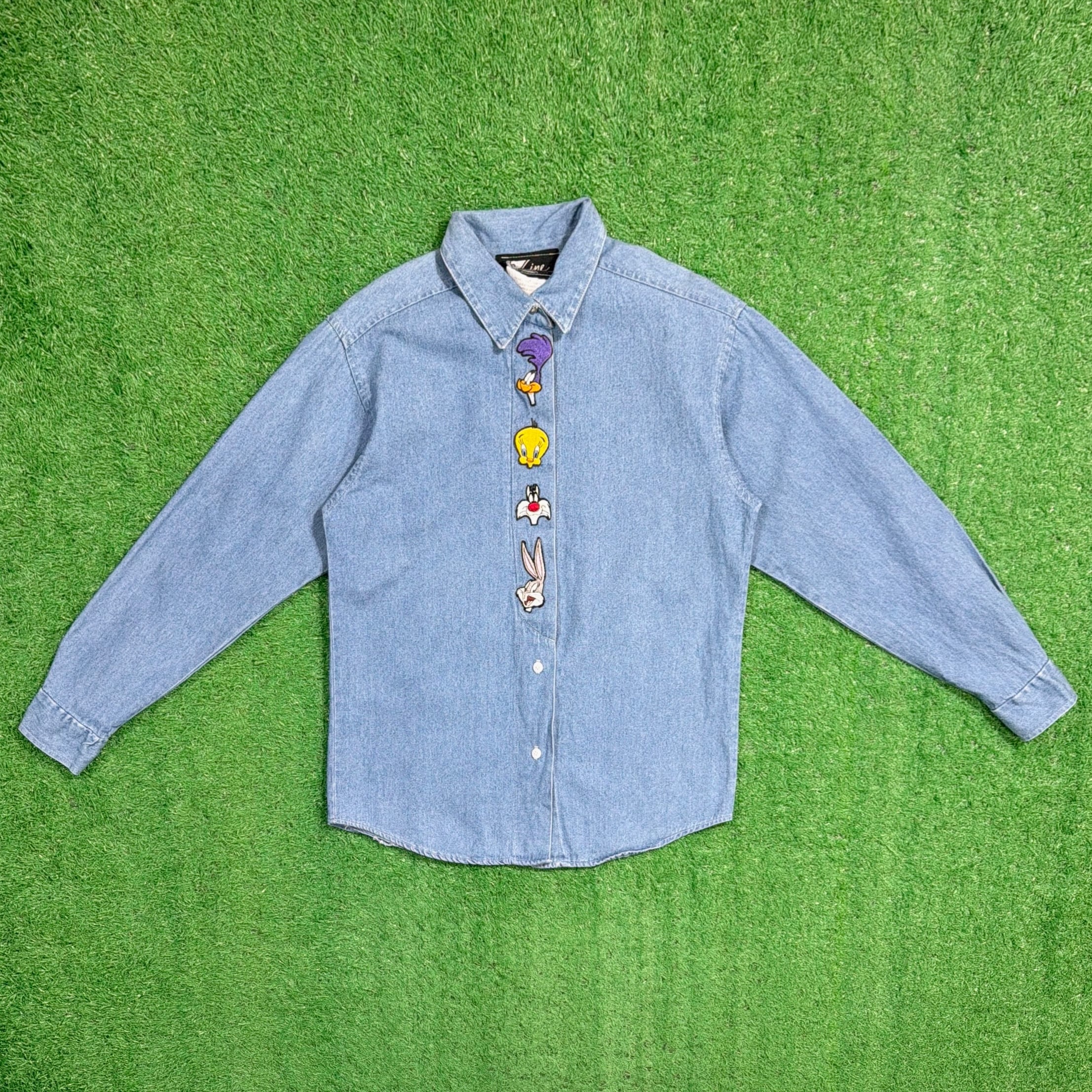 1990年代のアメリカ製、Looney Tunesのワッペン付きデザインデニムシャツです。