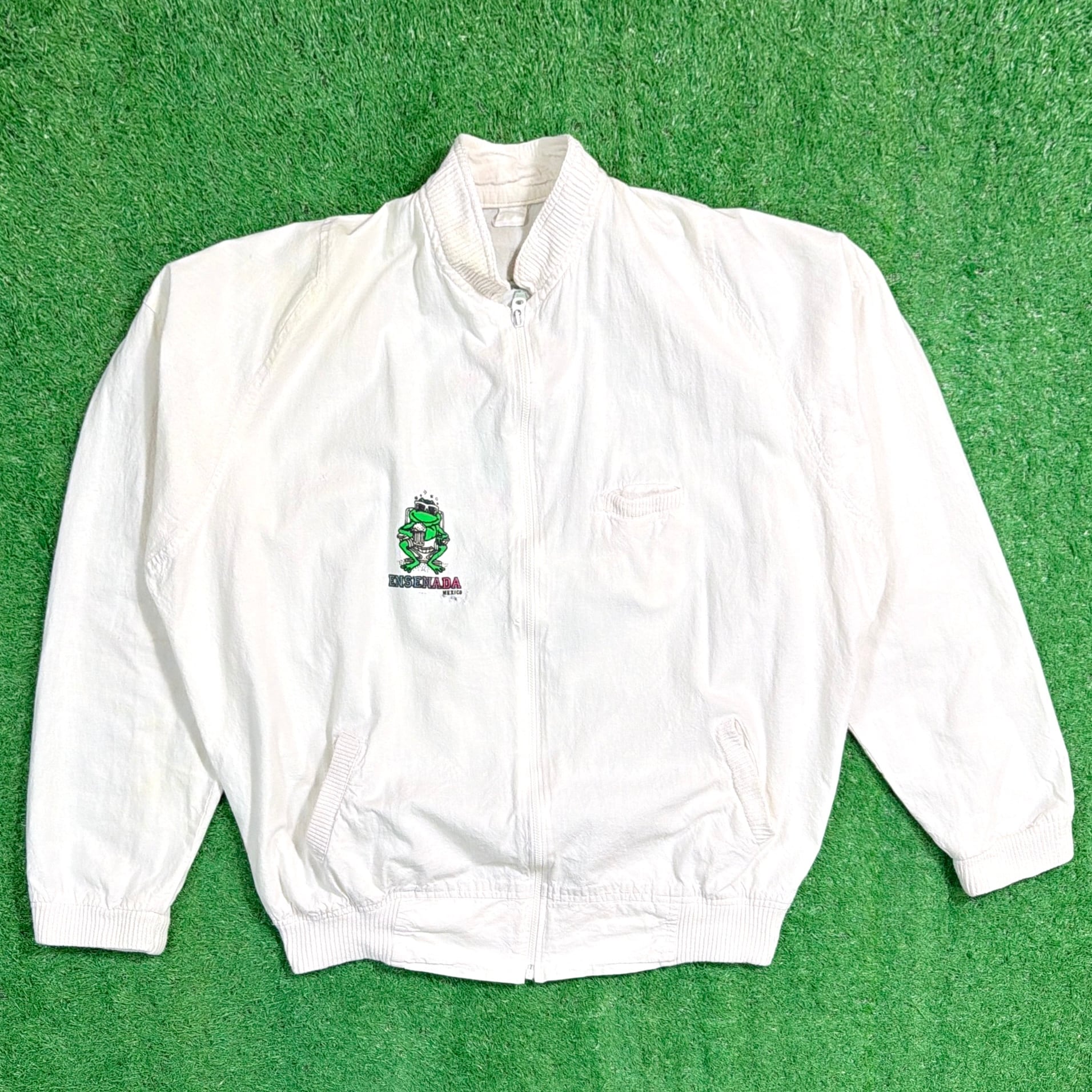80〜90年代らしいポップな空気感のある一着。軽い着心地でさらっと羽織れるジップアップジャケットです。