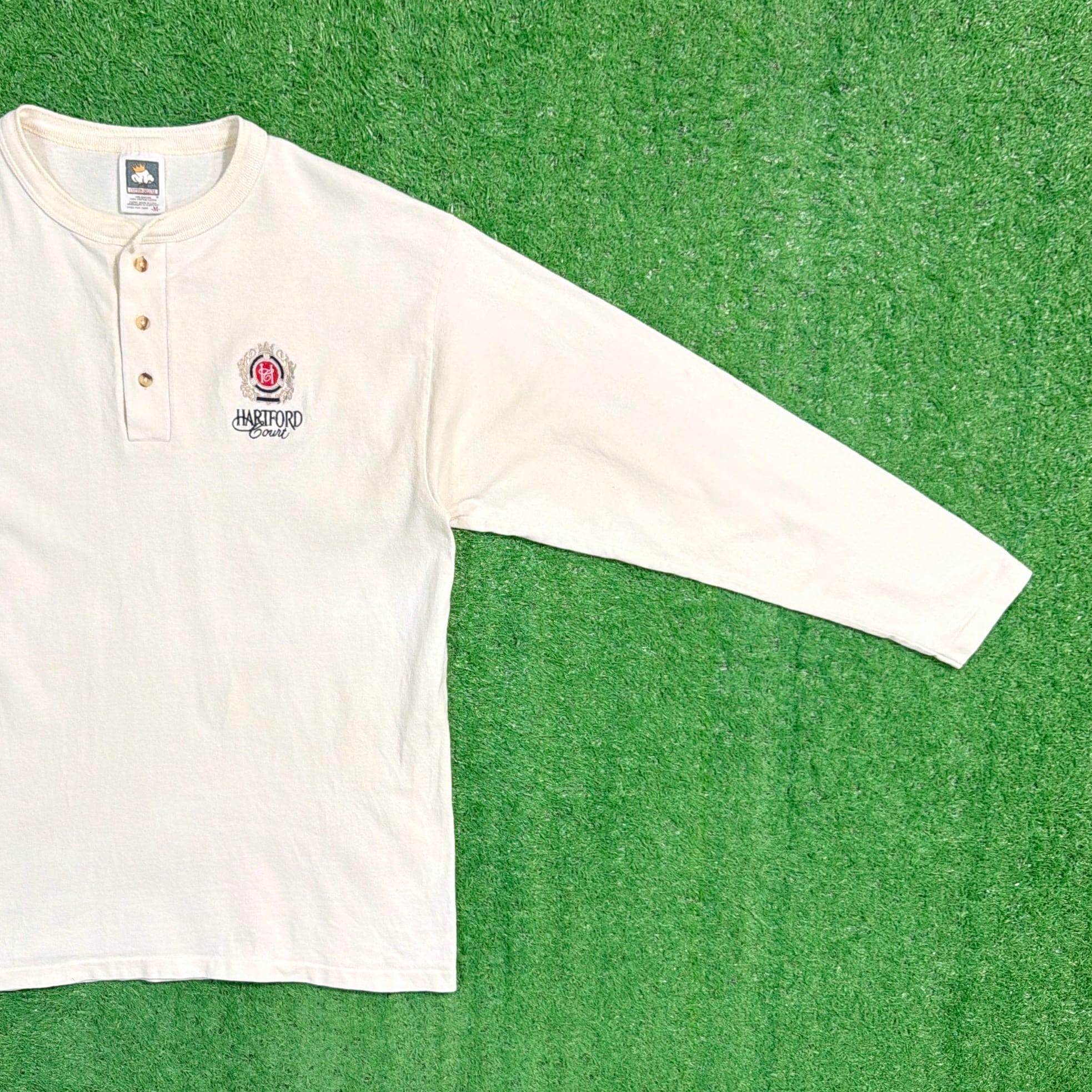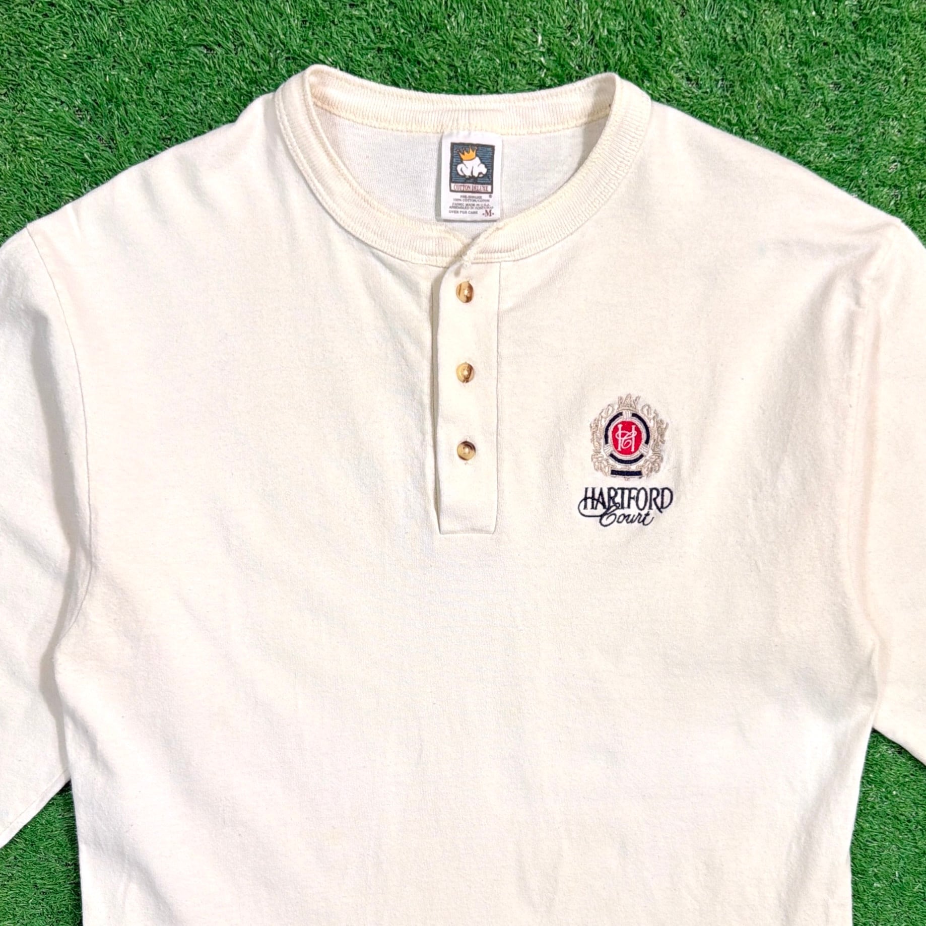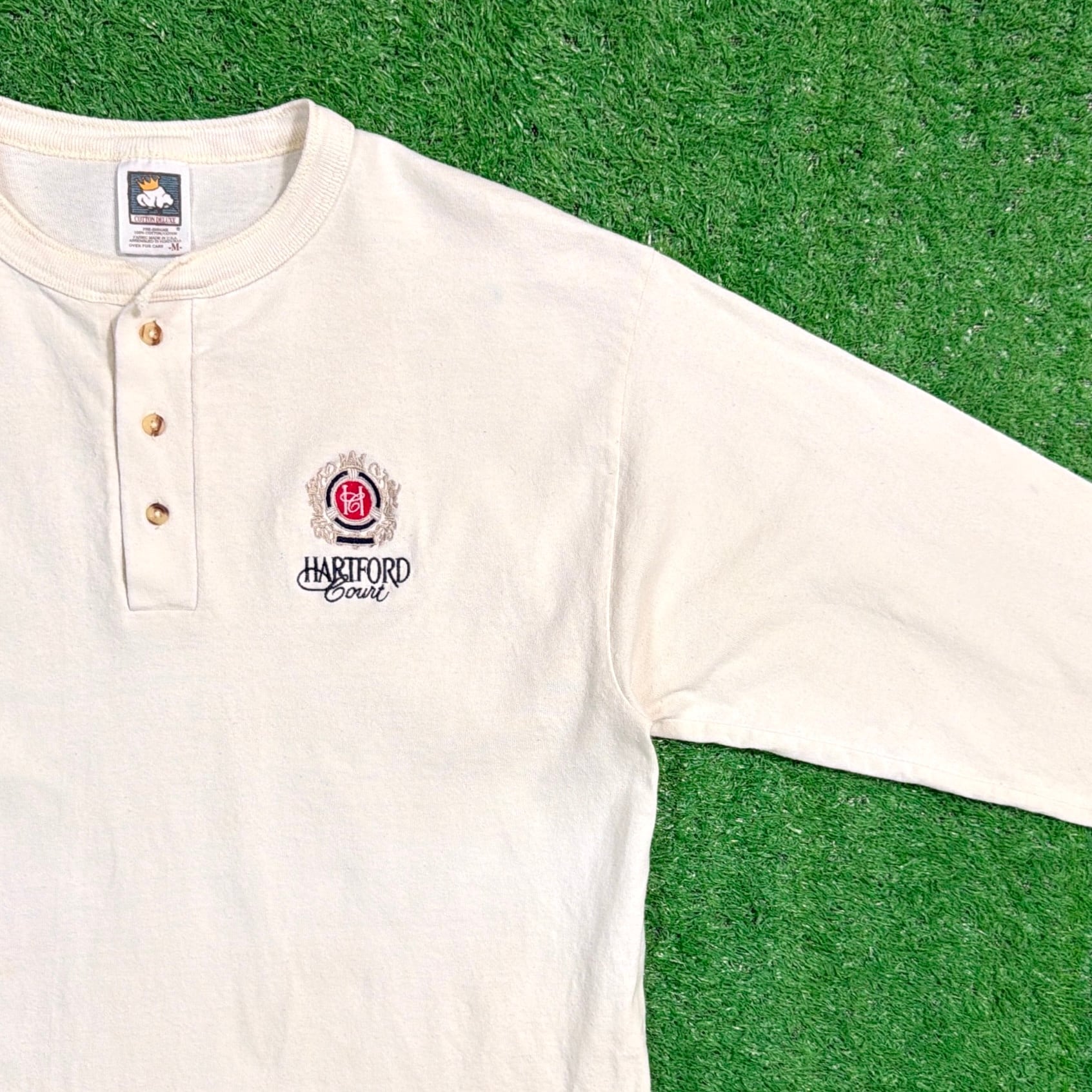 フロントにはクラシックな紋章デザインと「HARTFORD COURT」の刺繍が入ったシンプルなデザイン。