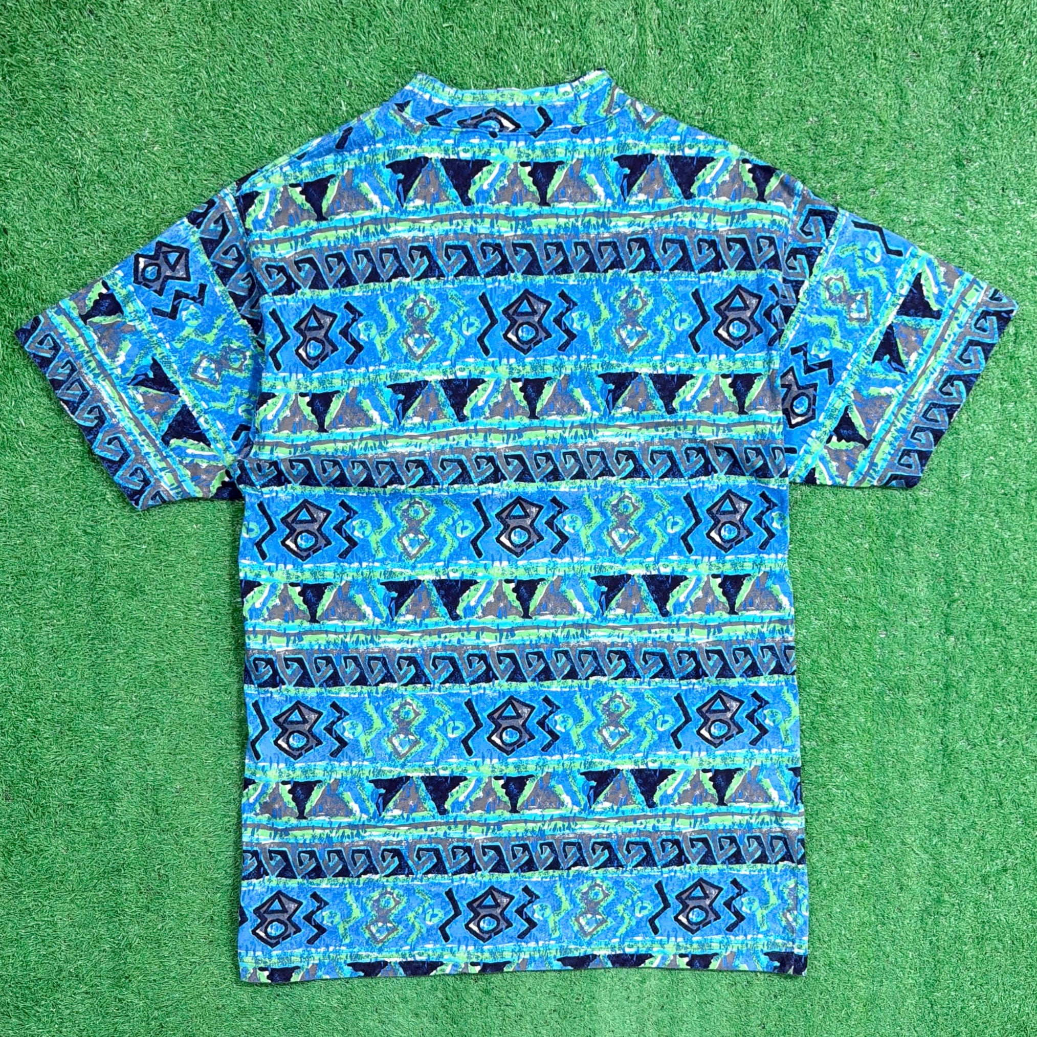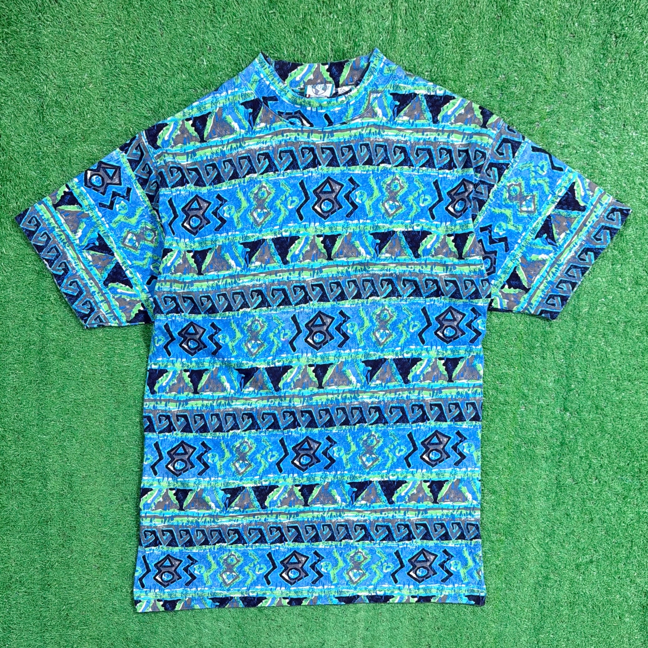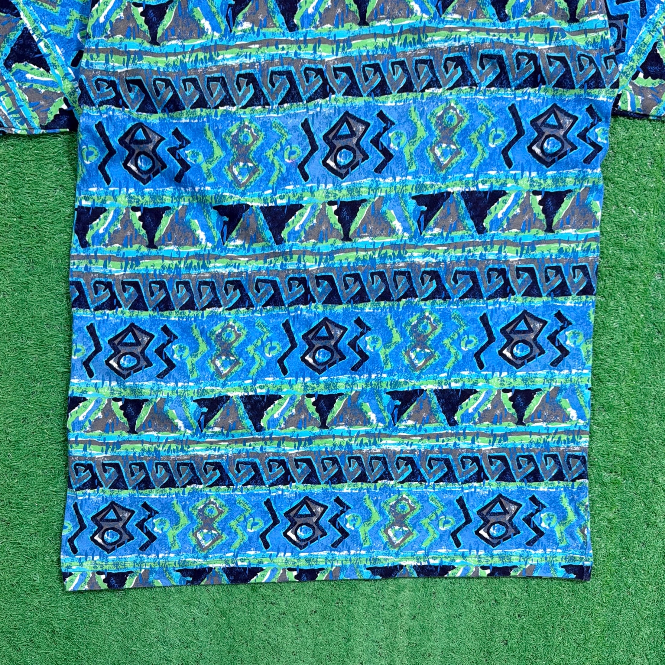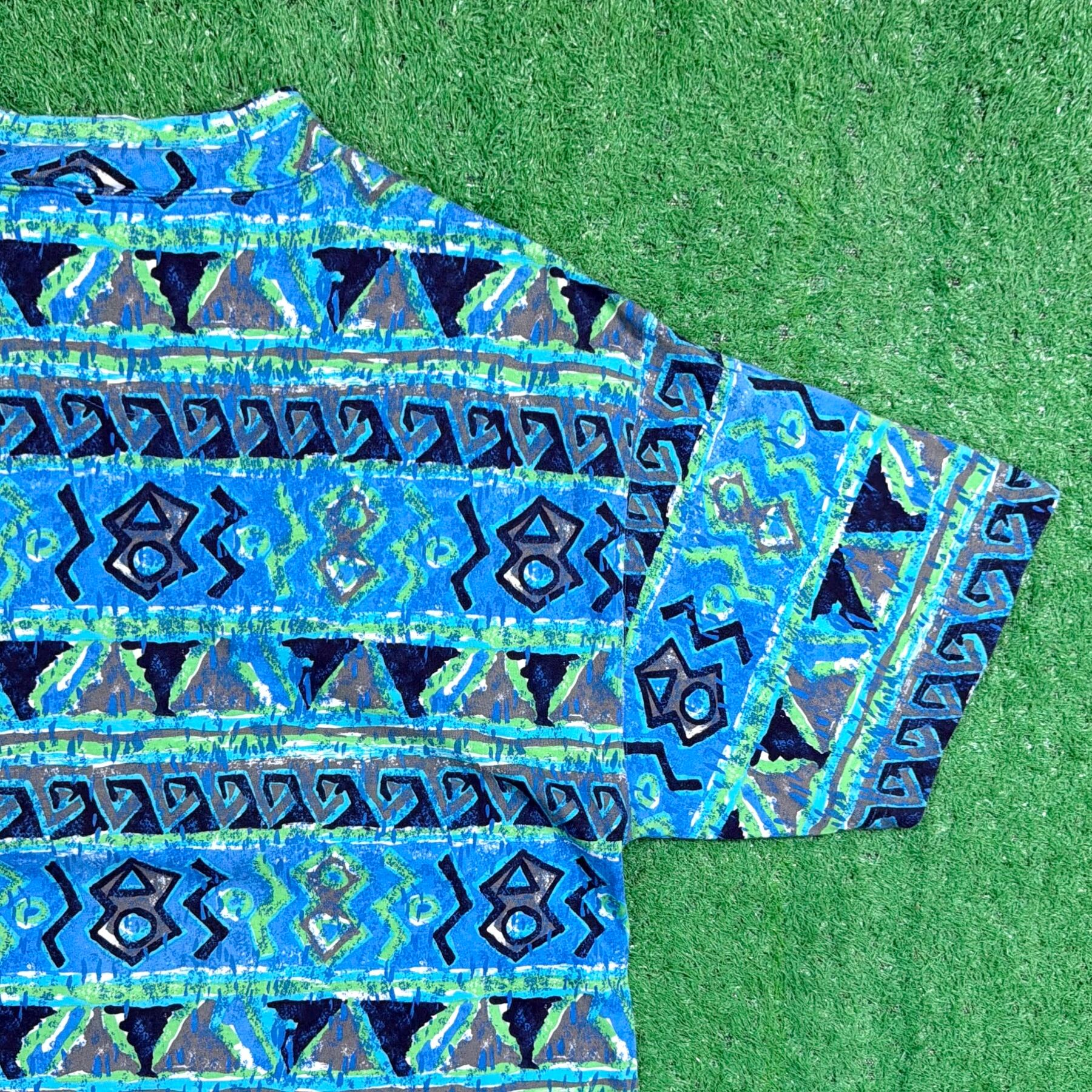 【Men's】 90s ネイティブ柄 ロング丈 Tシャツ / 90年代 古着 ティーシャツ T-Shirt メンズ ワンピ ワンピース 総柄 1639