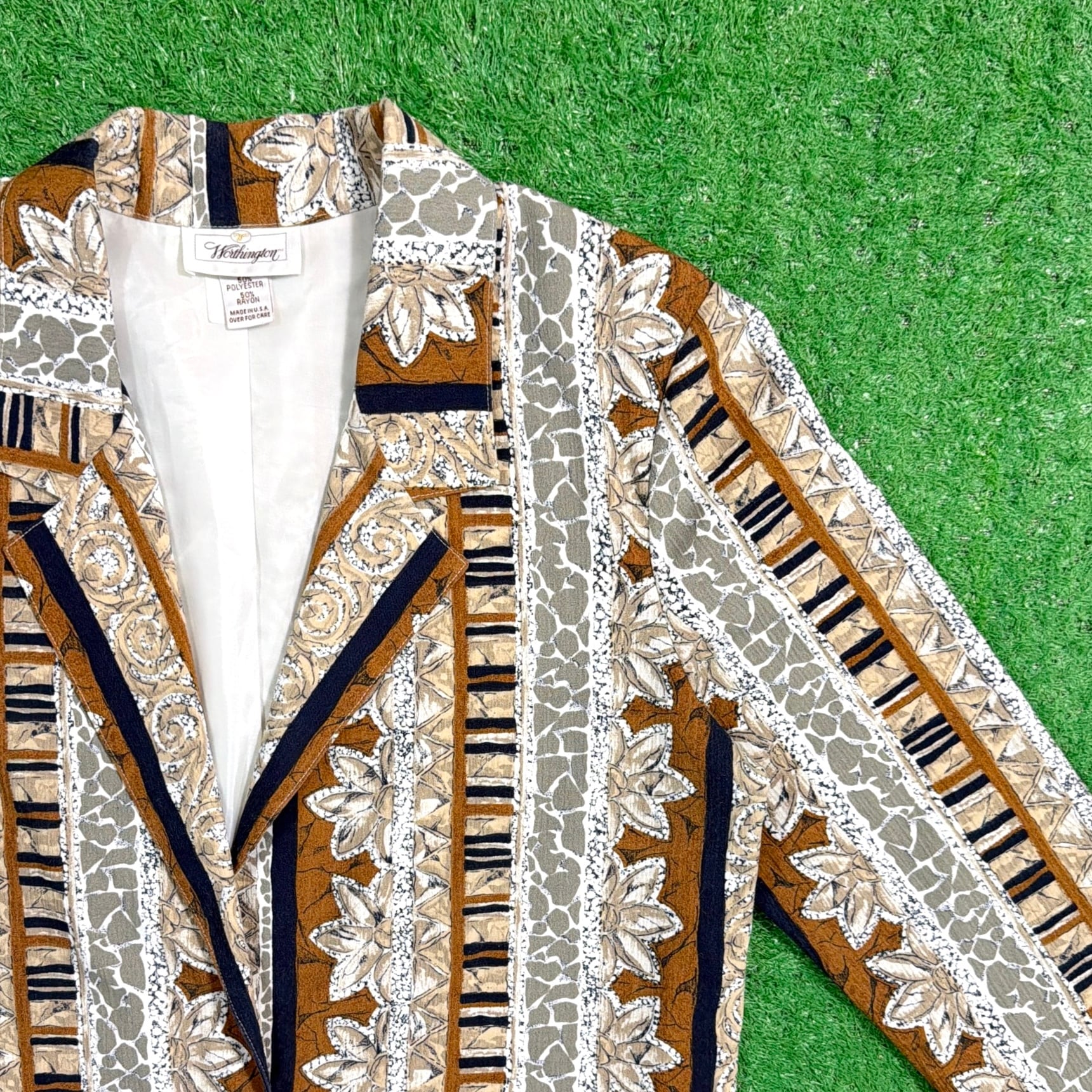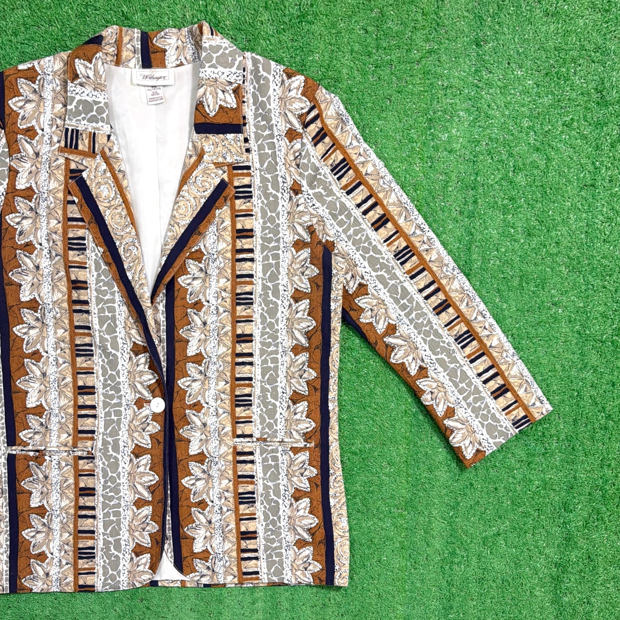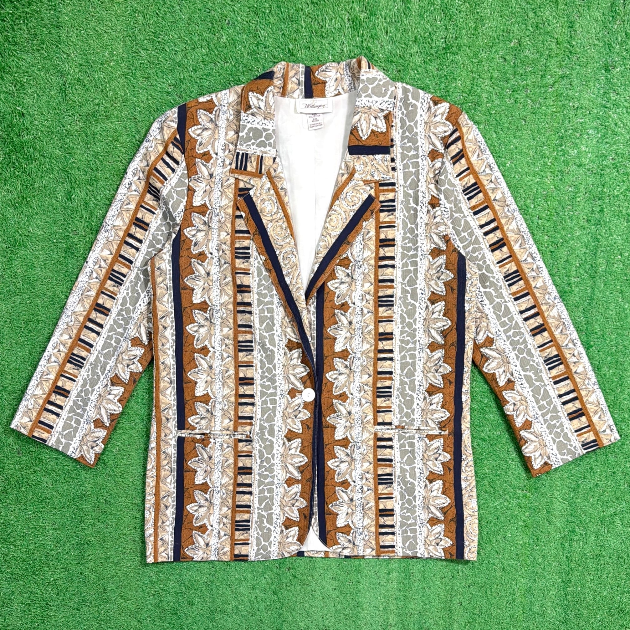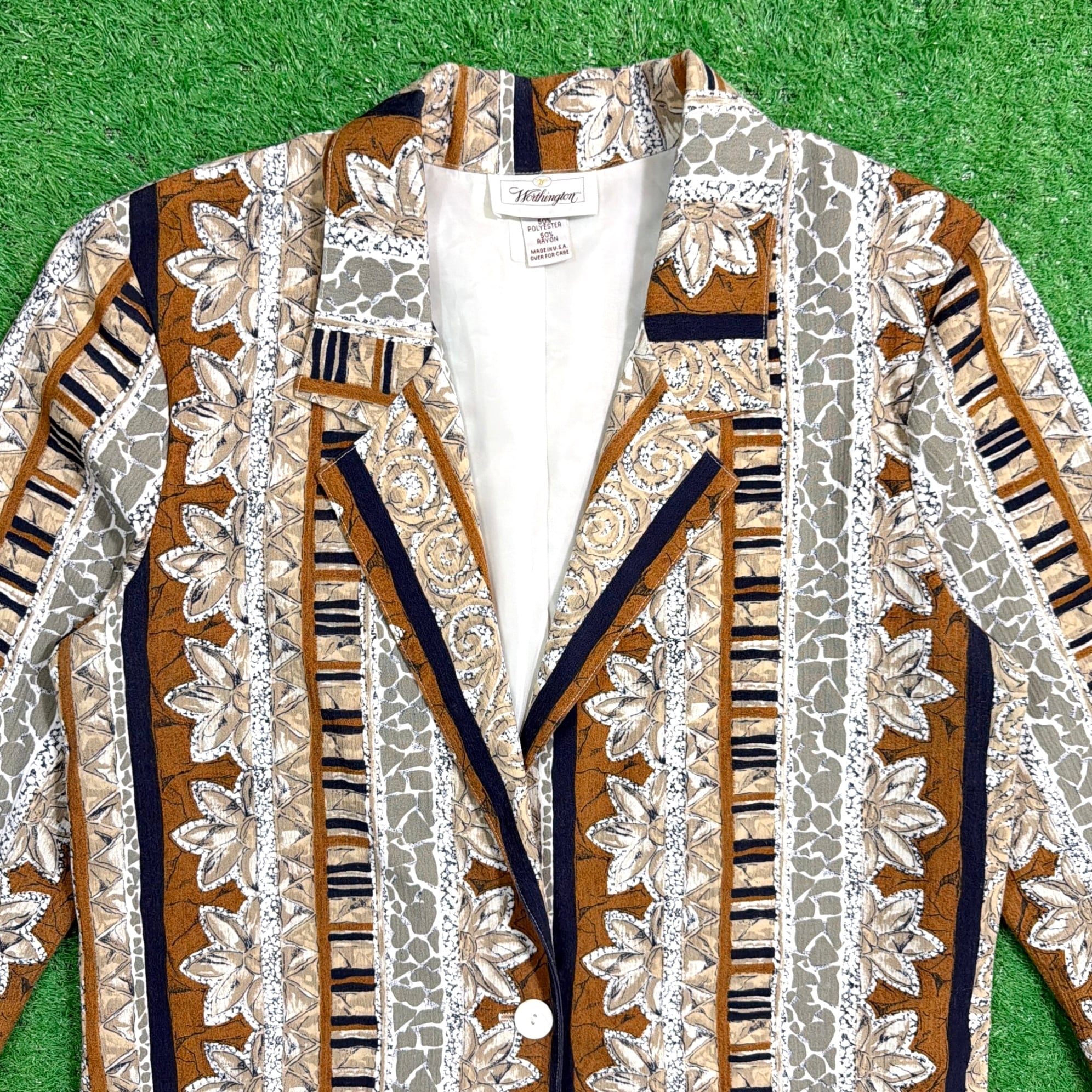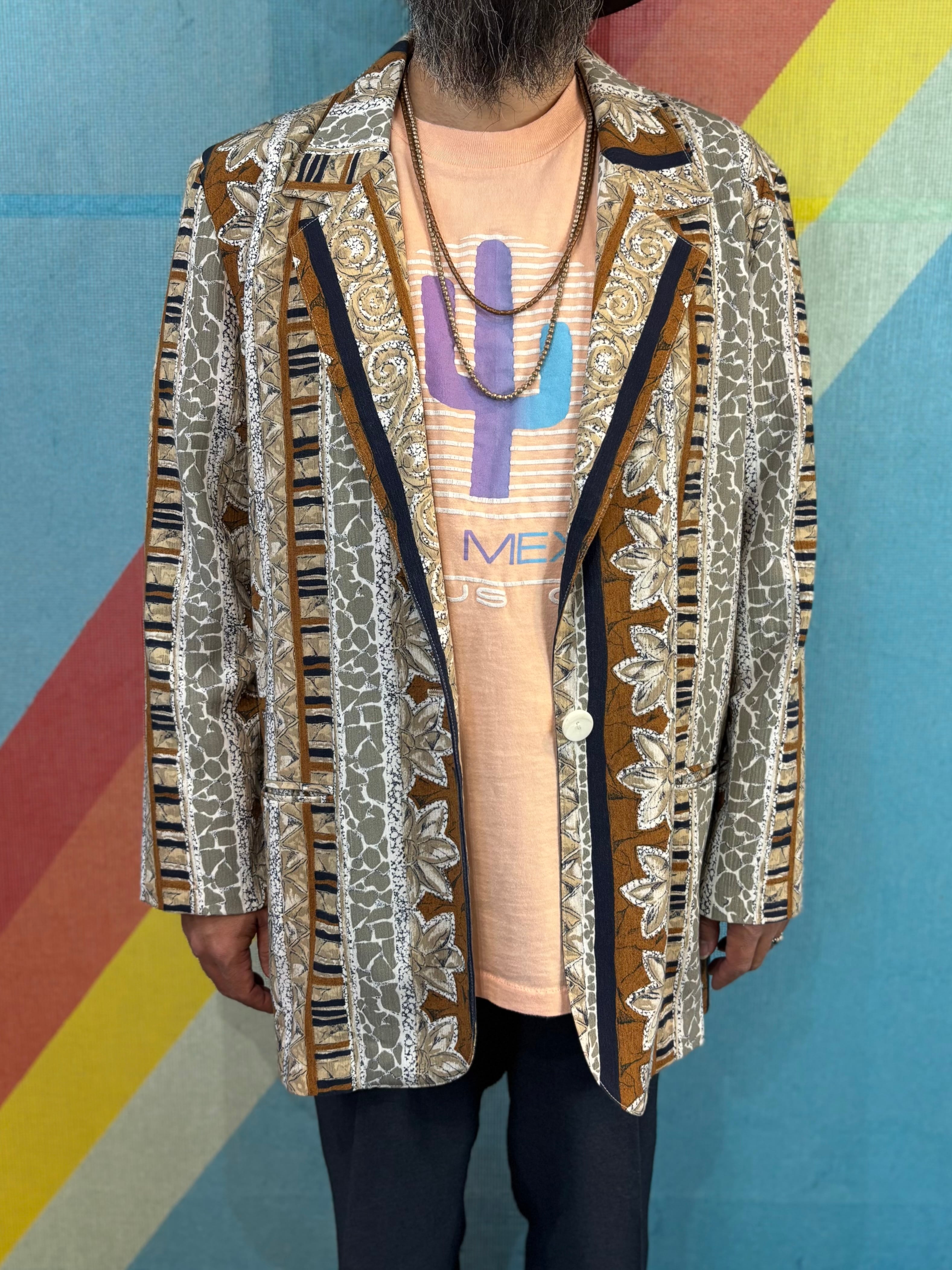 【Unisex】 90s ボタニカル柄 ジャケット / アメリカ製 USA製 90年代 古着 テーラード メンズ レディース 古着 総柄 N0649