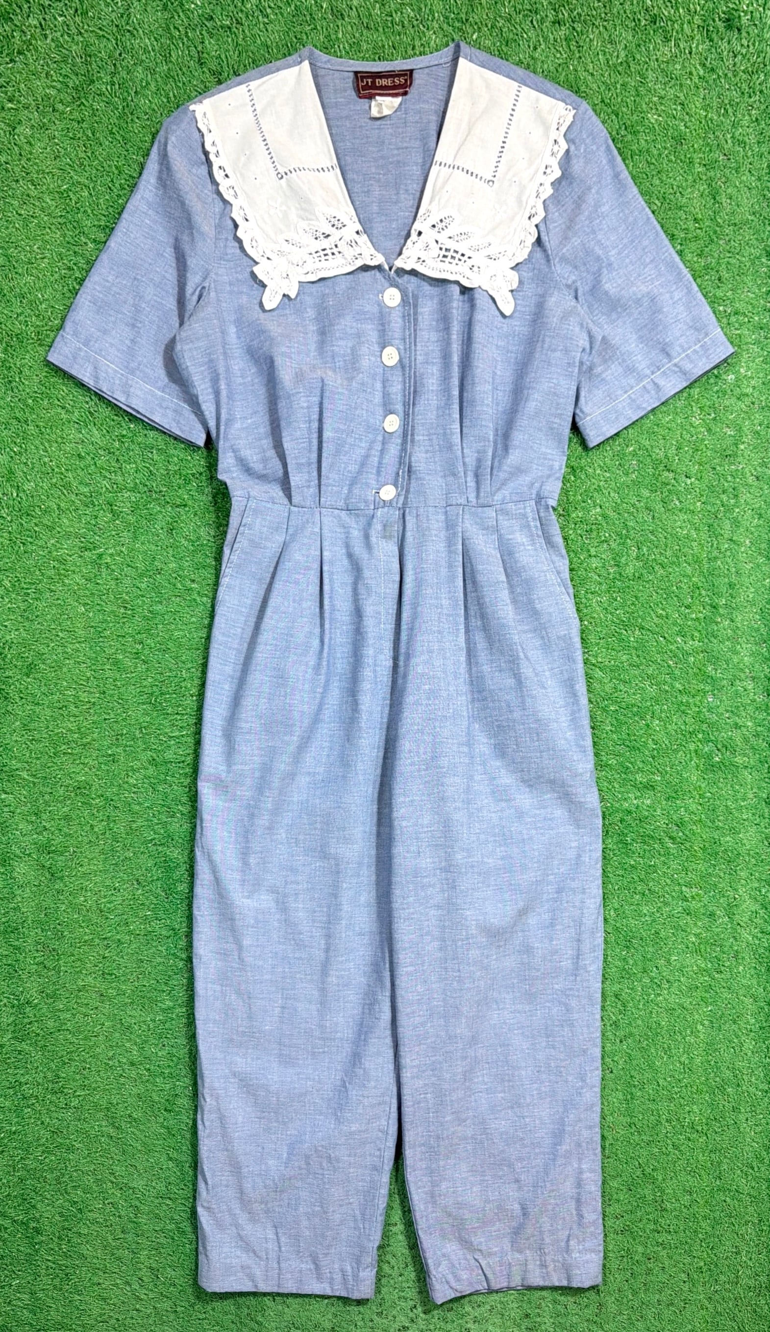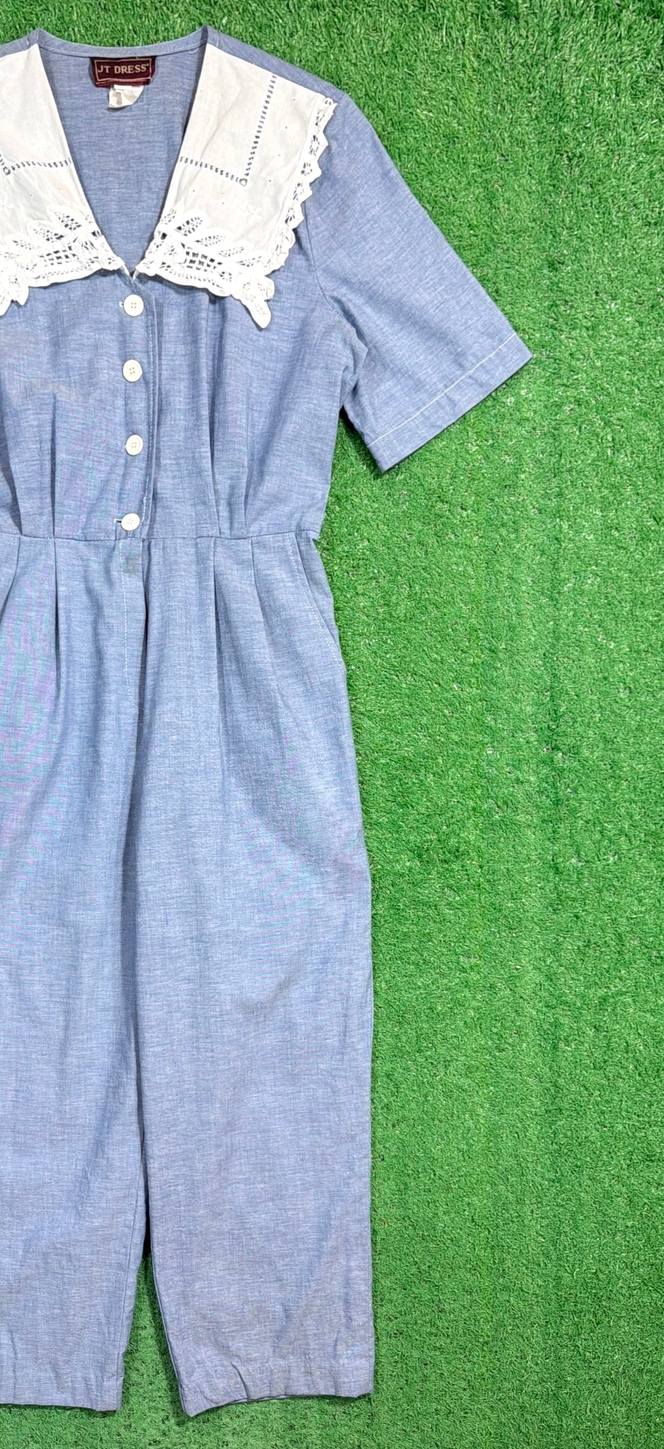 【Lady's】 80s - 90s レースカラー ジャンプスーツ / アメリカ製 USA製 80年代 90年代 古着 つなぎ レディース オールインワン 1655