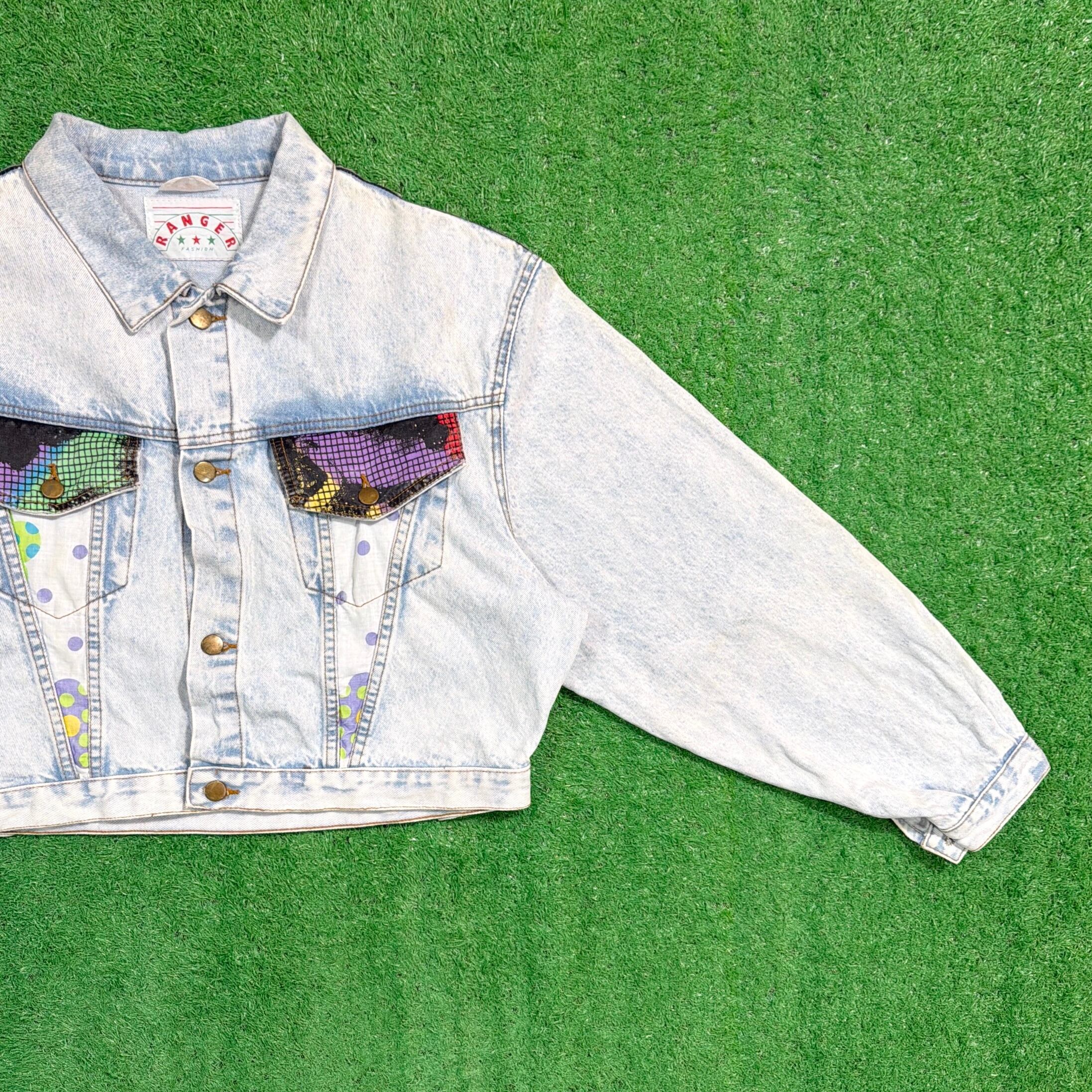 【Lady's】 80s - 90s ショート丈 デザイン デニムジャケット / アメリカ製 USA製 80年代 90年代 古着 ジャケット デニム レディース 短丈 N0674