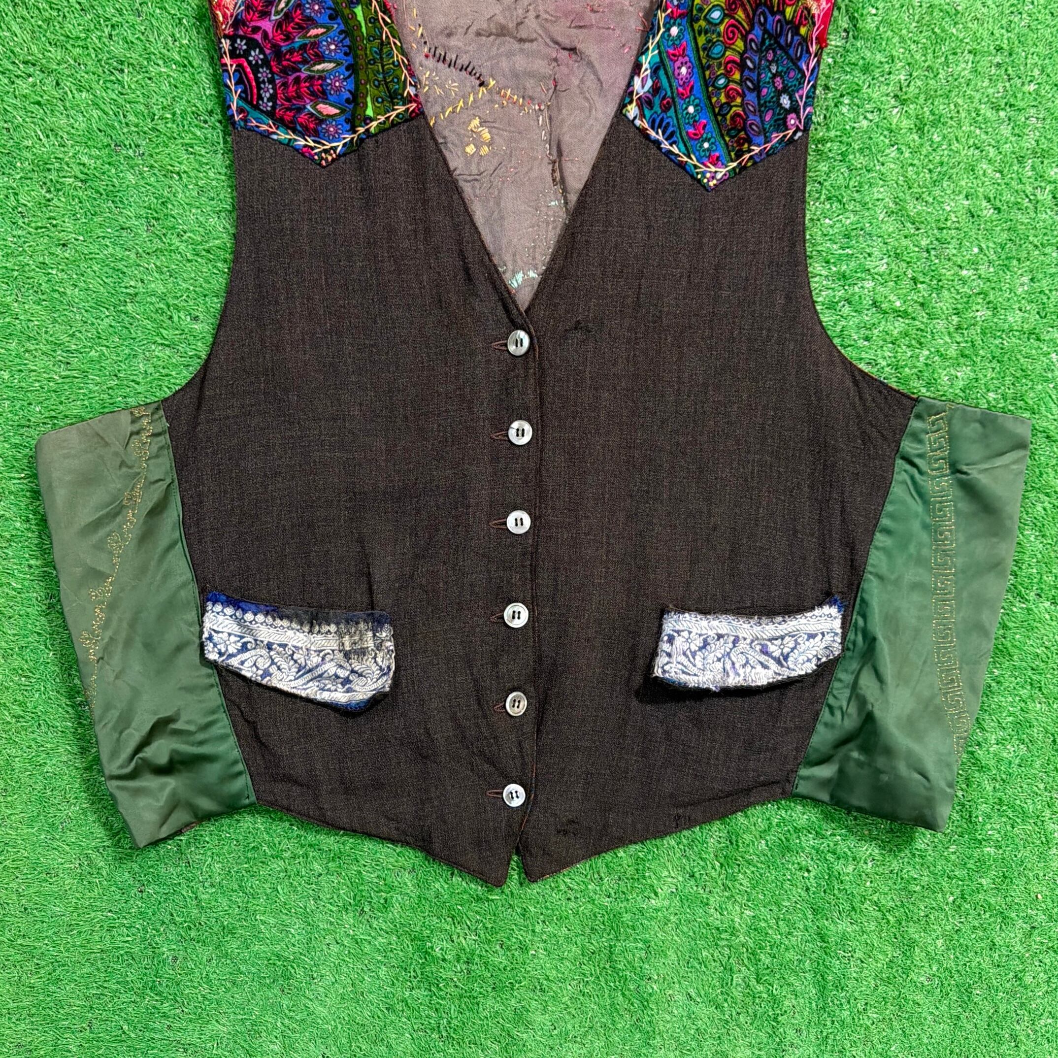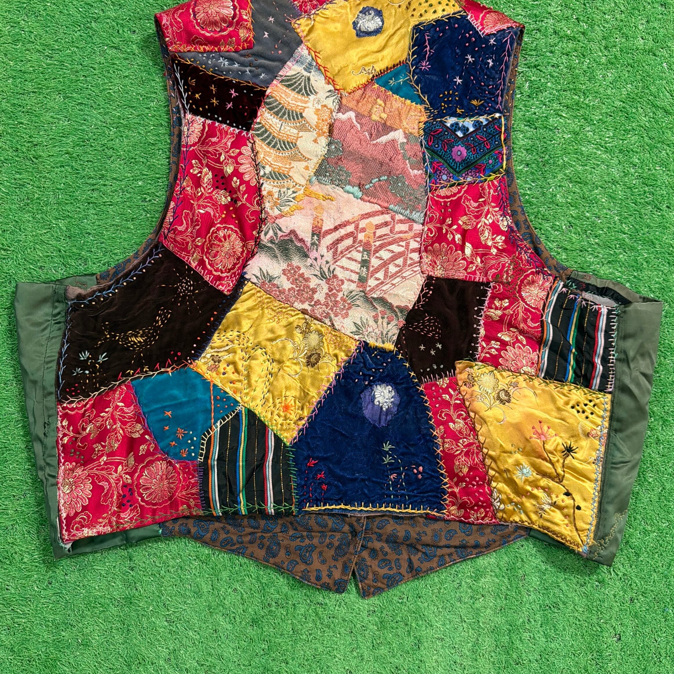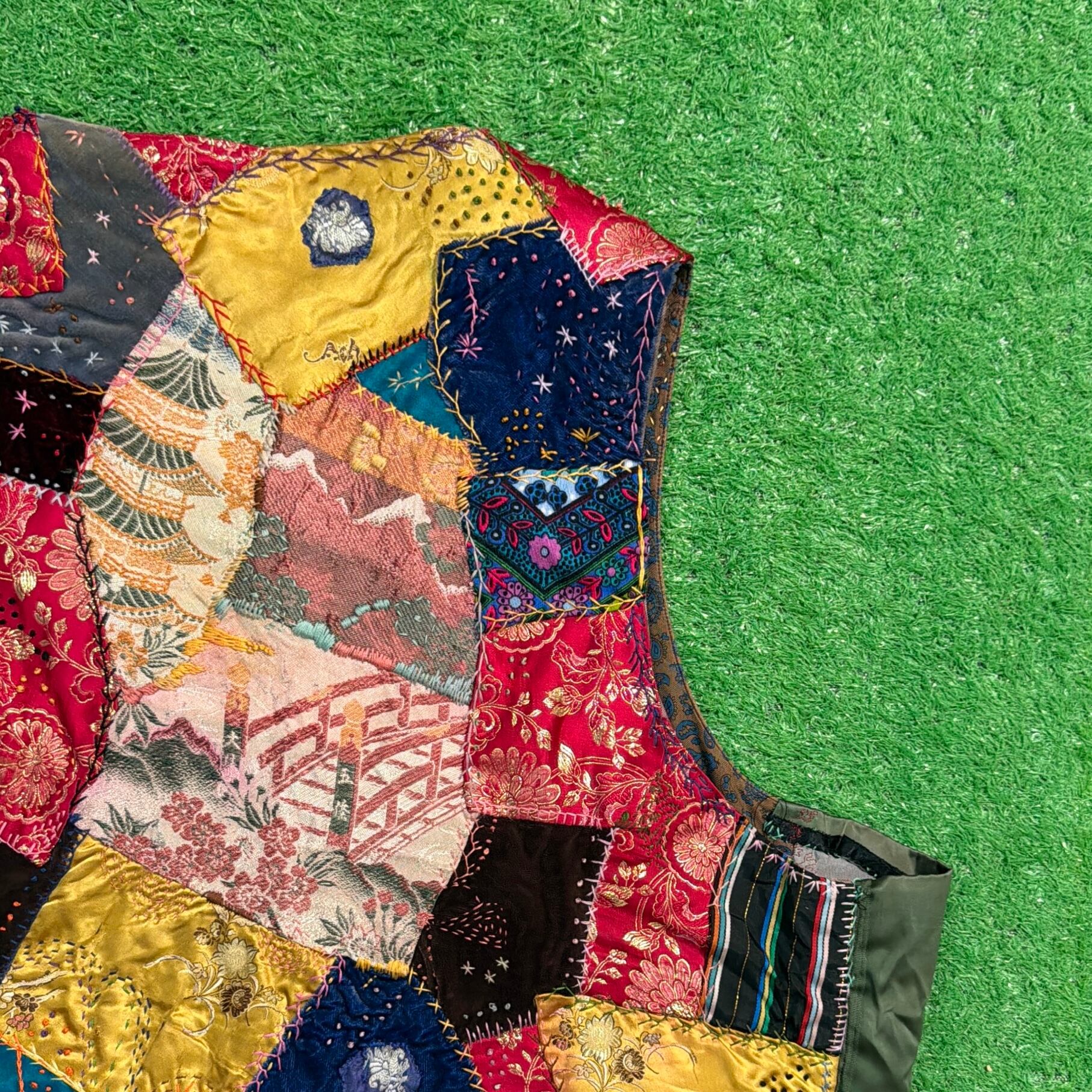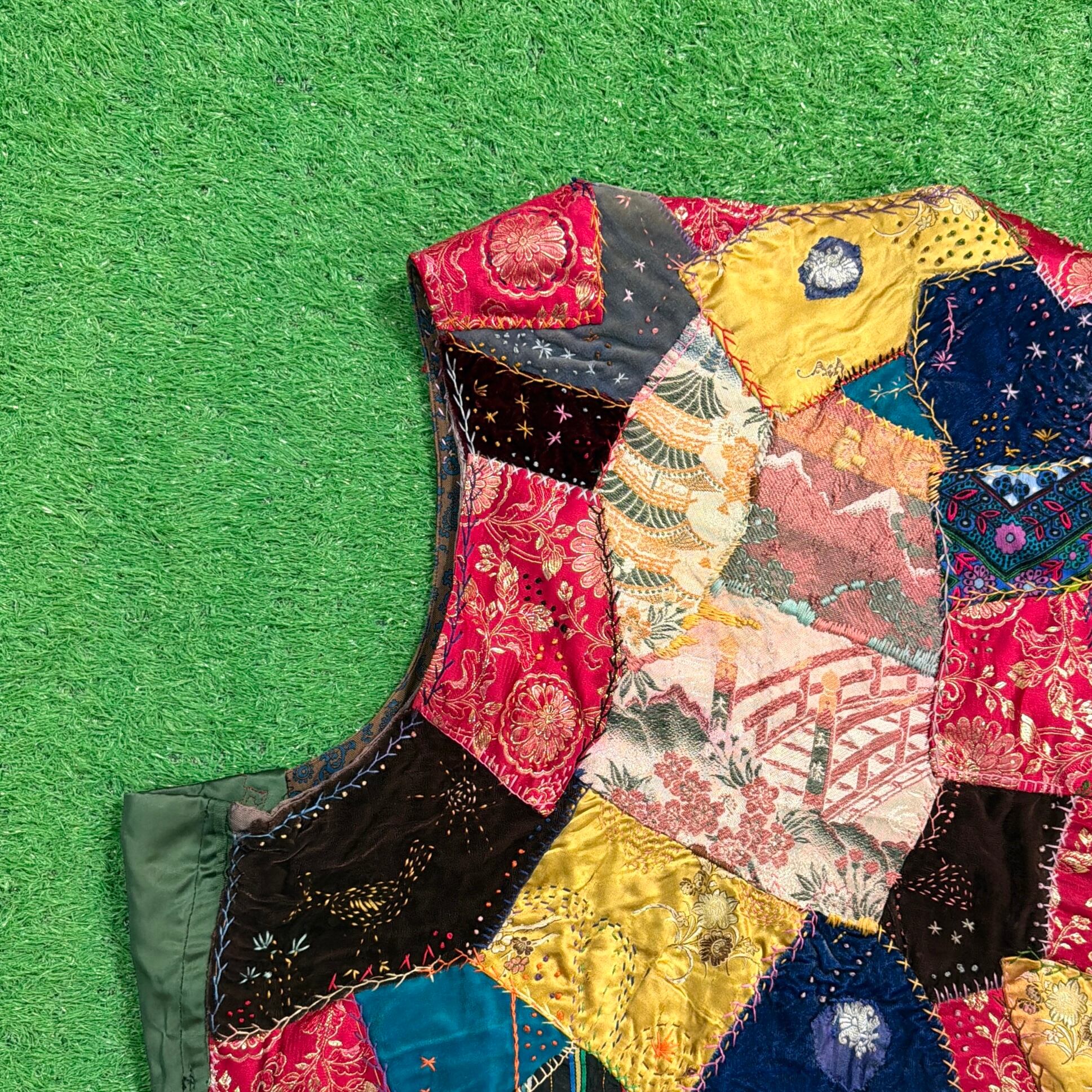【Lady's】 リメイク パッチワーク ベスト / 古着 ジレ レディース N0651