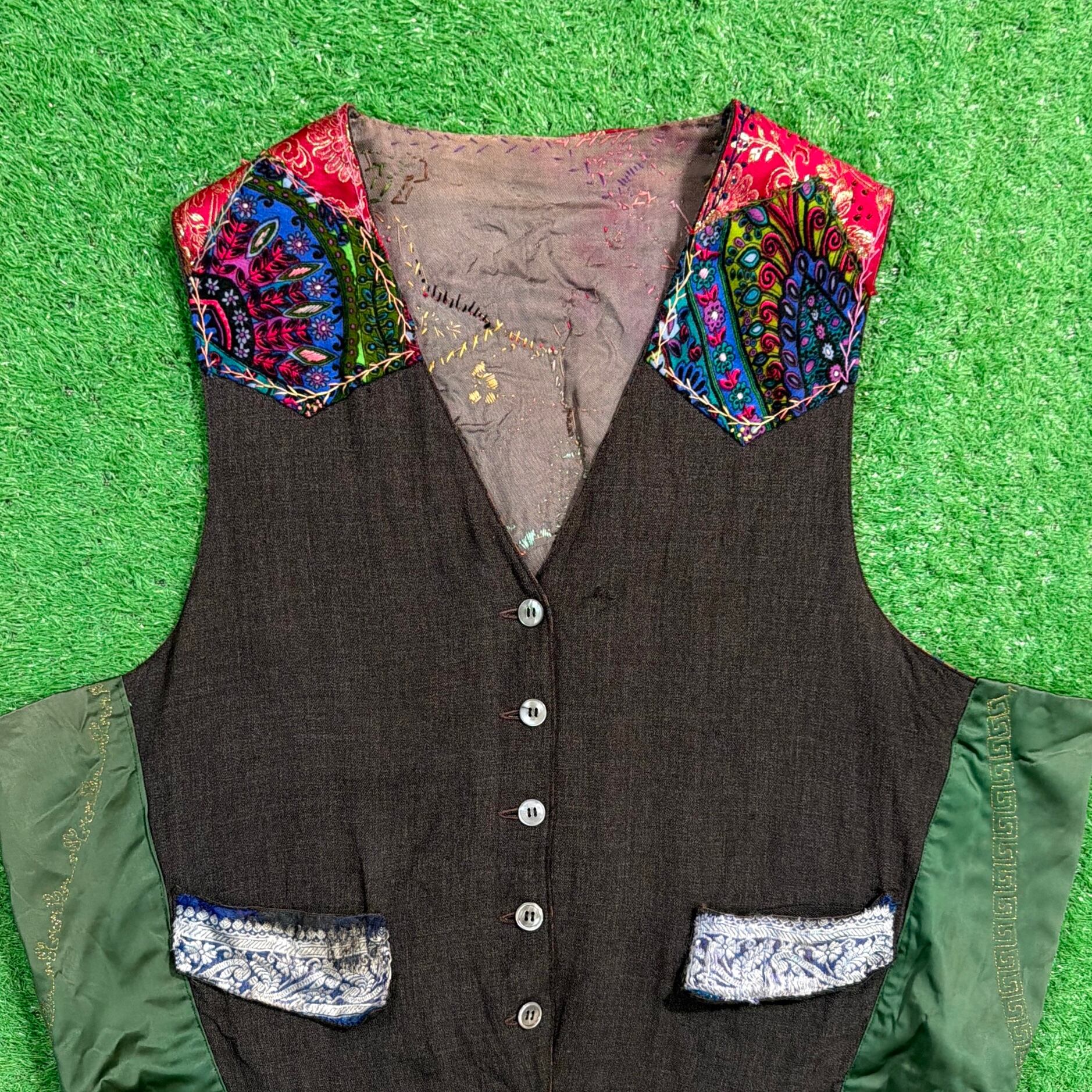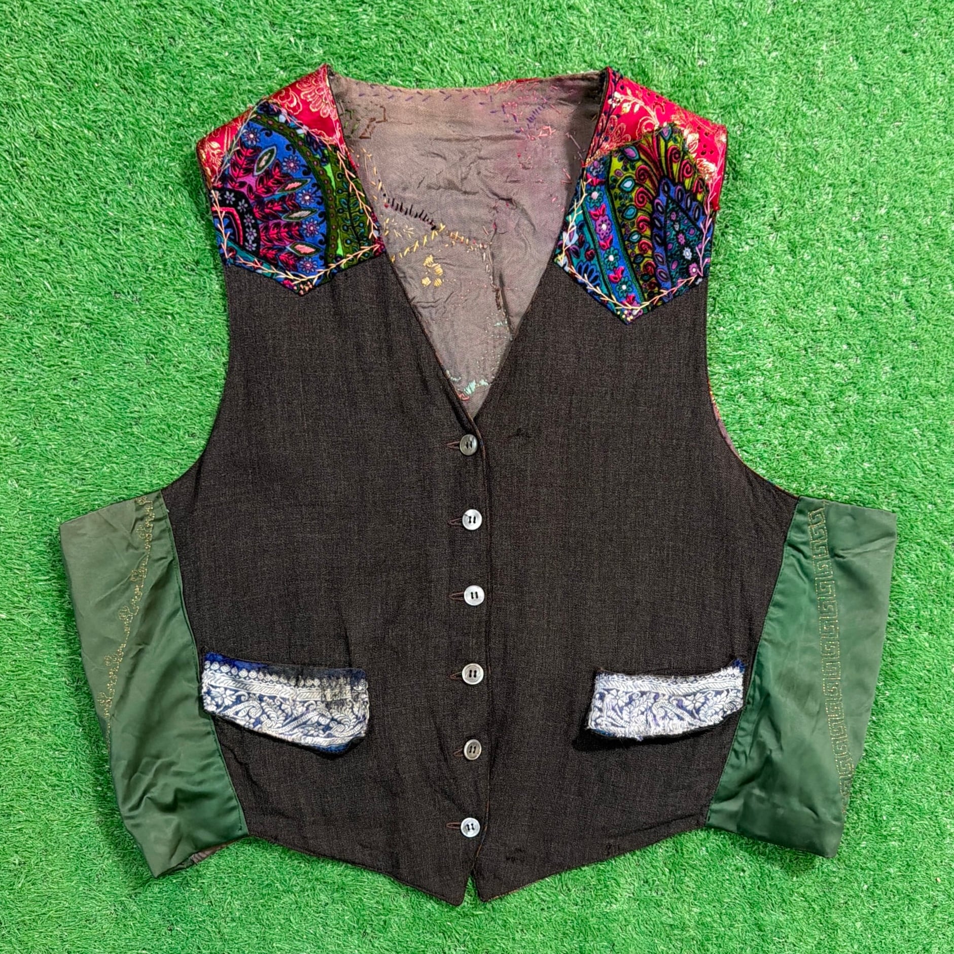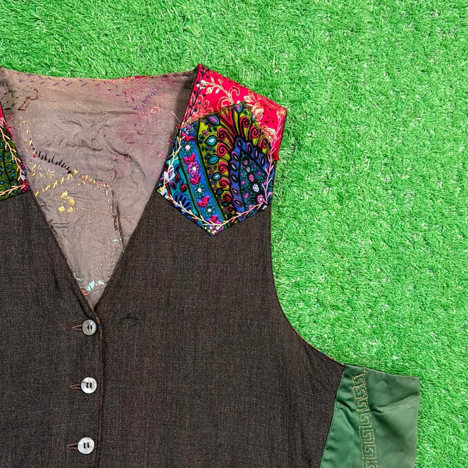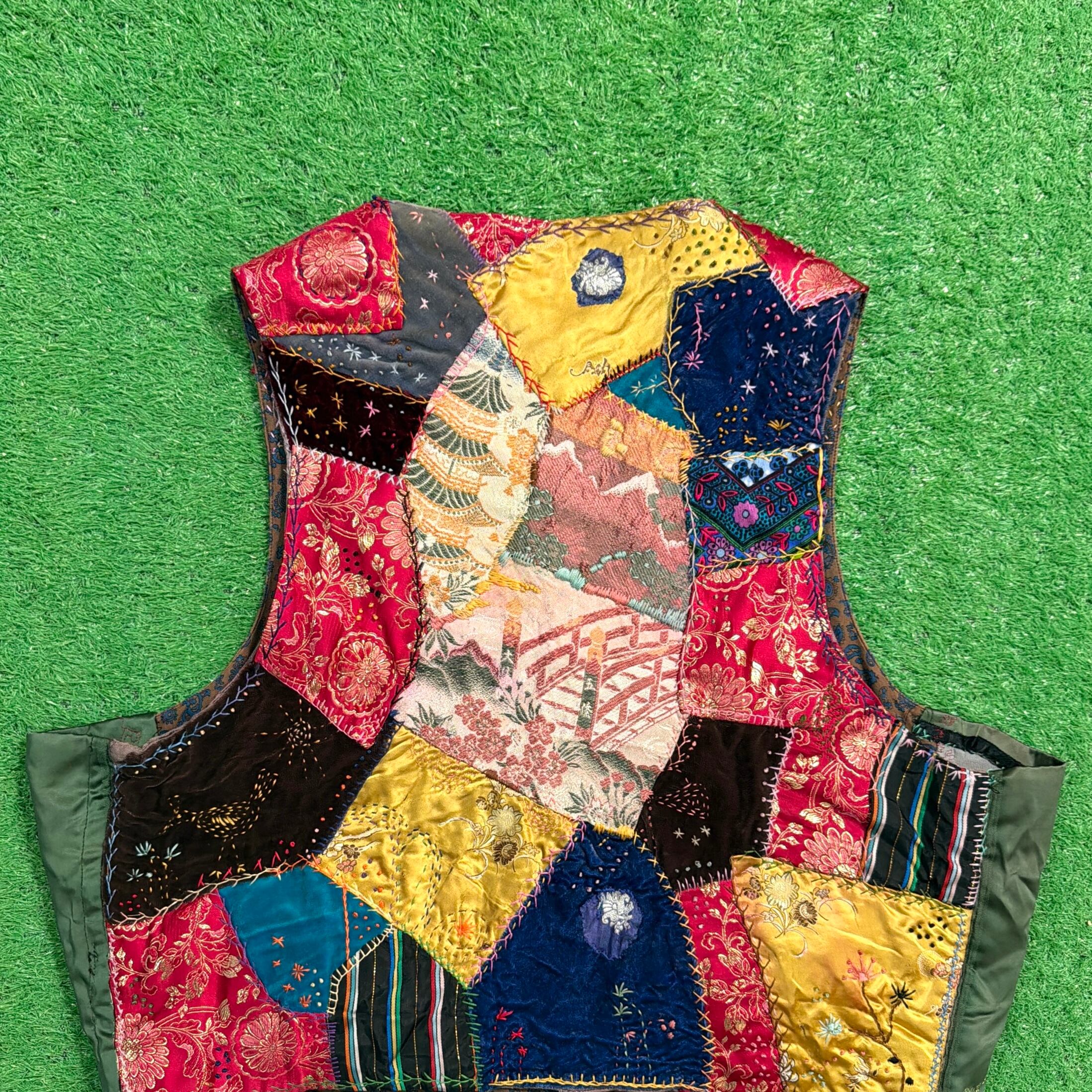 【Lady's】 リメイク パッチワーク ベスト / 古着 ジレ レディース N0651