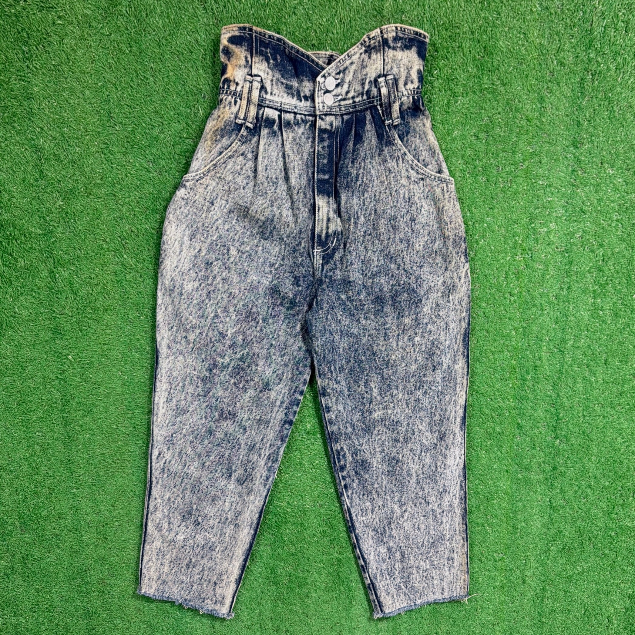 【Lady's】 80s - 90s ケミカルウォッシュ ハイウエスト デザイン デニムパンツ / アメリカ製 USA製 ジーパン ジーンズ レディース N0680