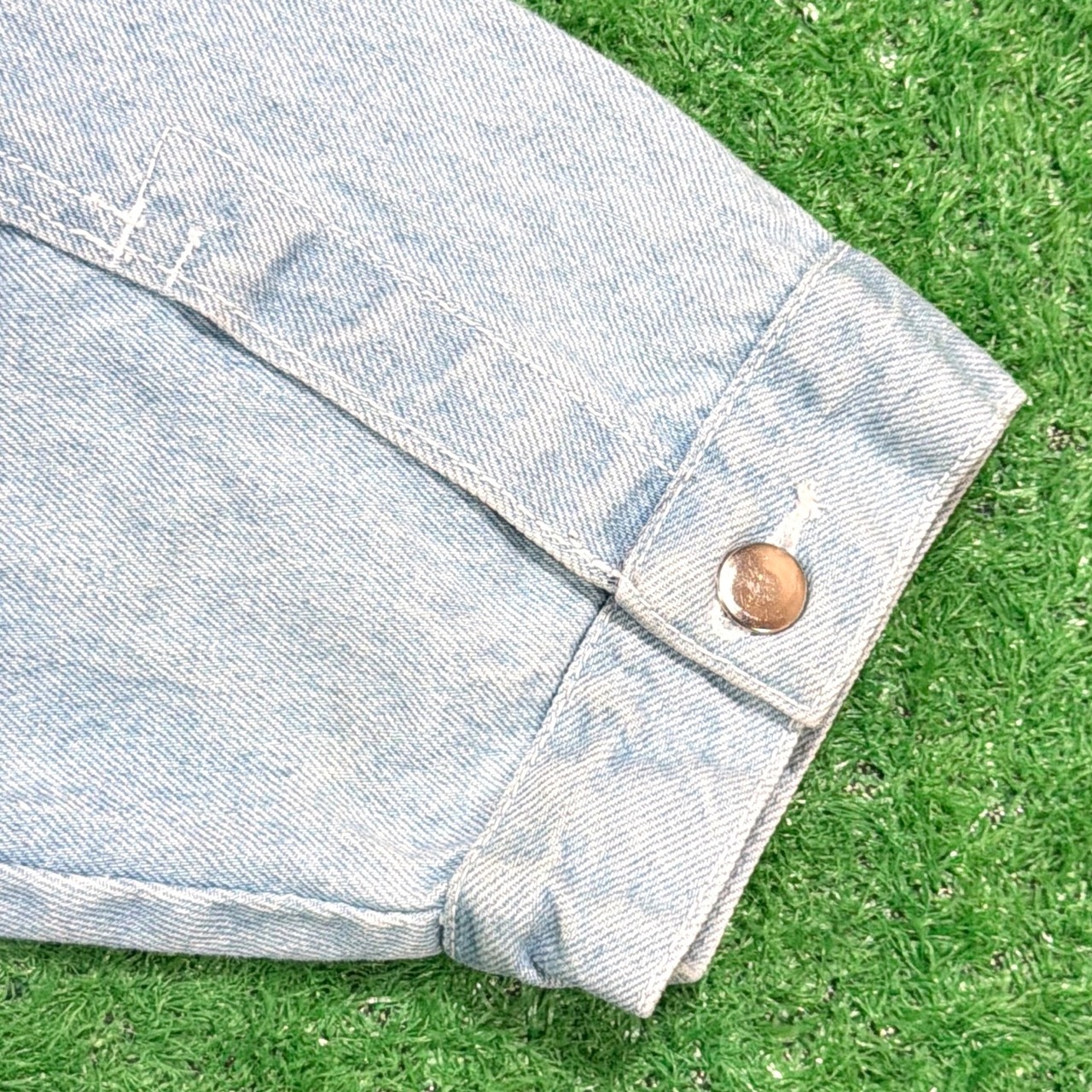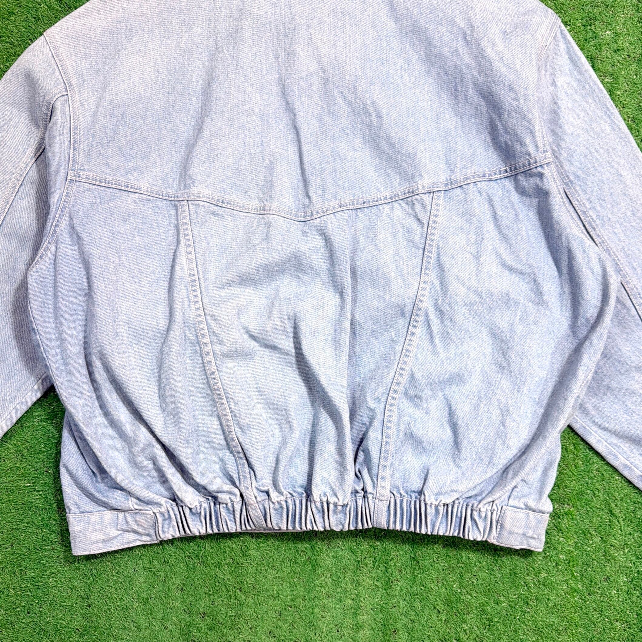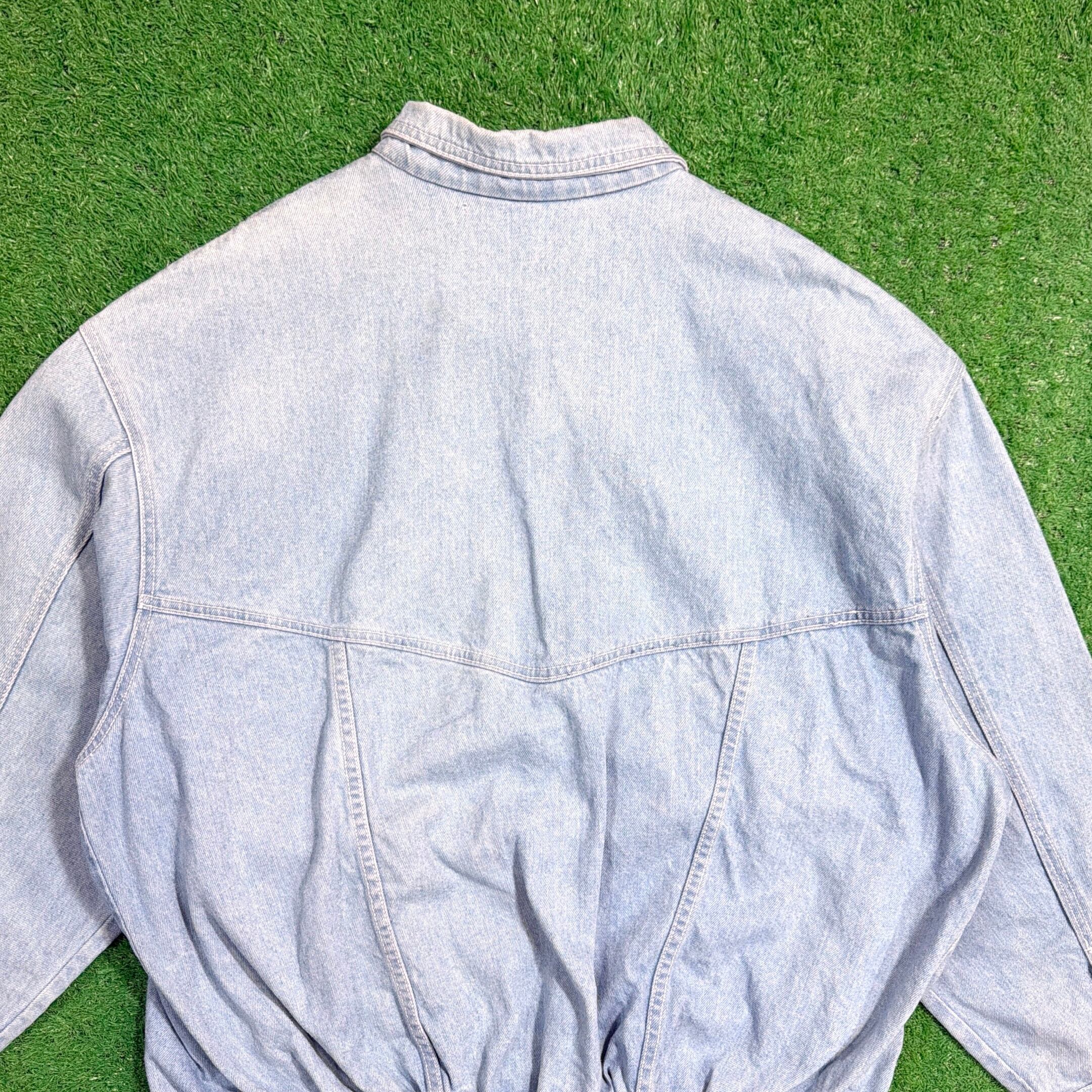 ライトなブルーデニムに、裾部分にゴムが入ったデザインが特徴的な一着。丸みのあるシルエットが生まれ、通常のデニムジャケットとは一味違った柔らかい印象で着られるアイテムです。全体的にゆったりとしたサイズ感で、リラックスした雰囲気で着用できます。