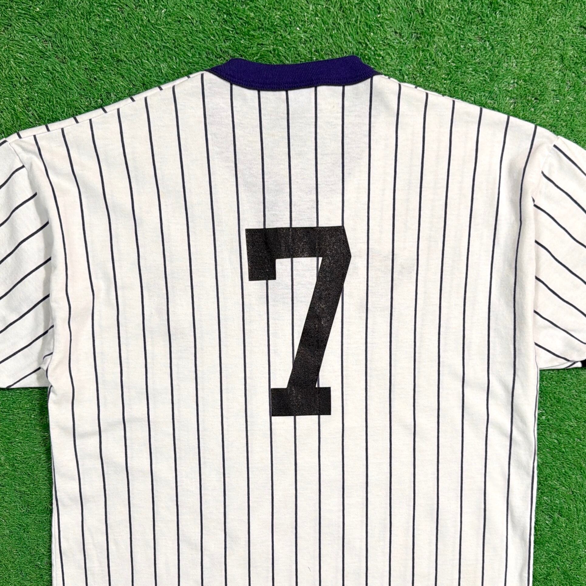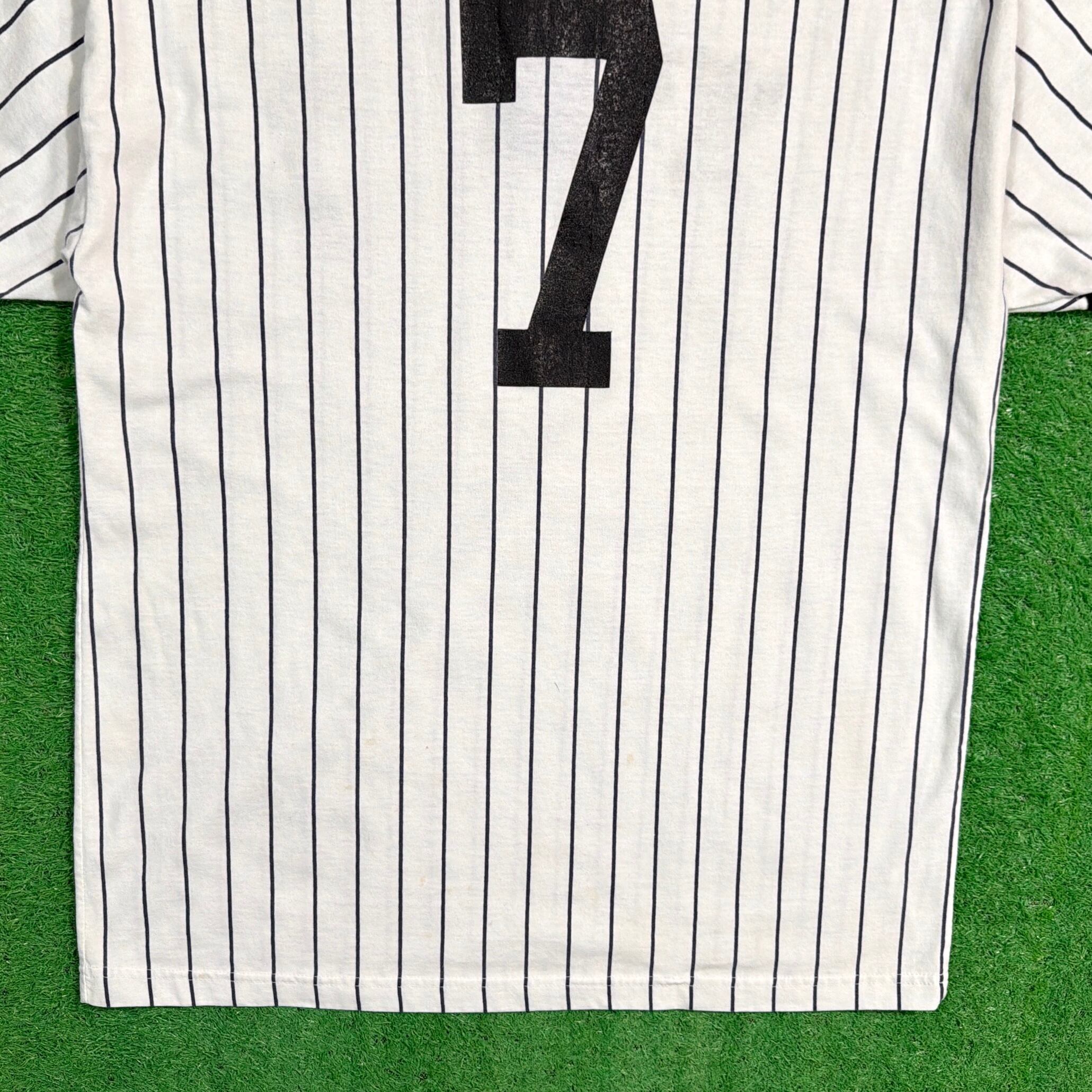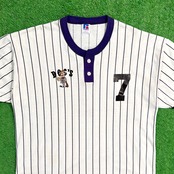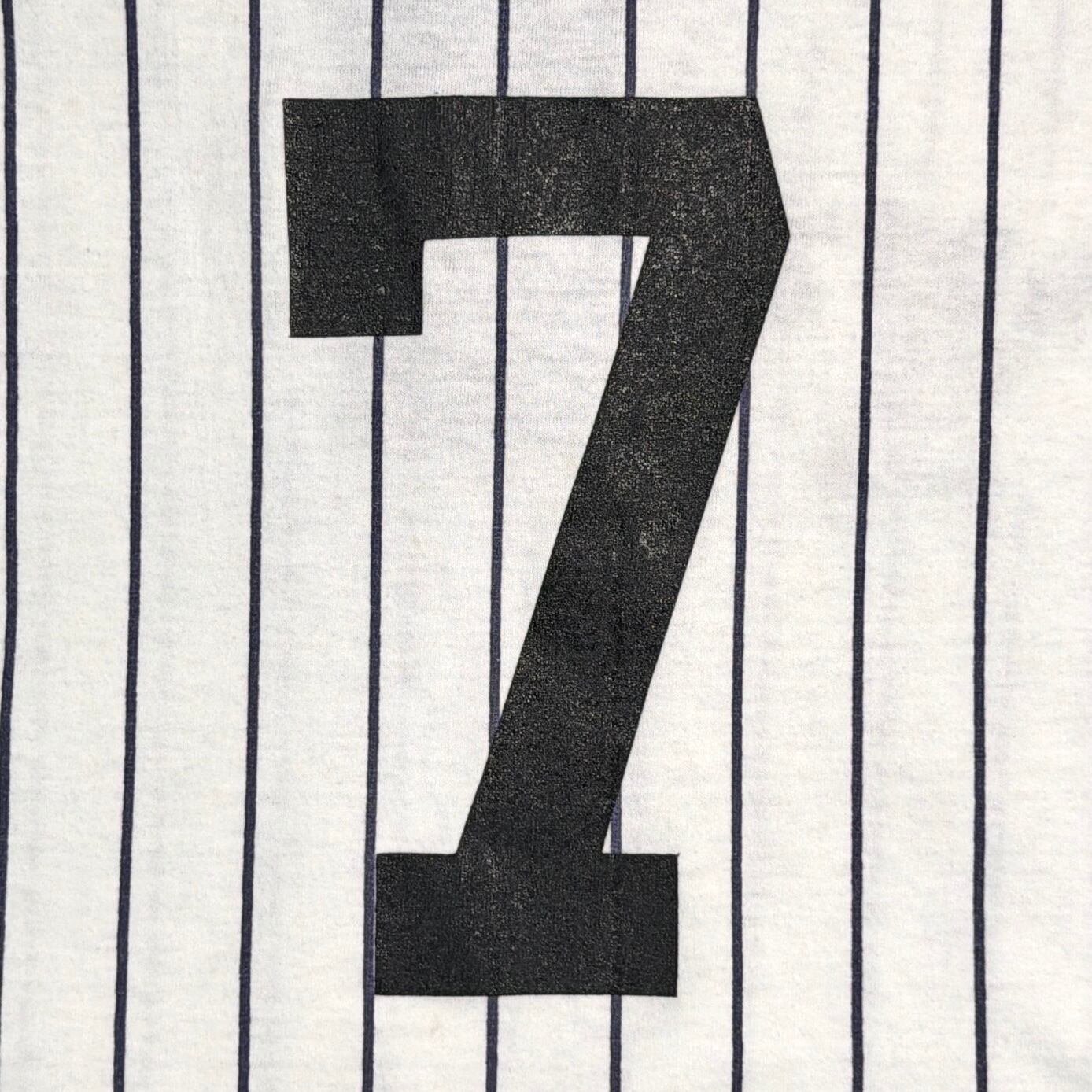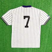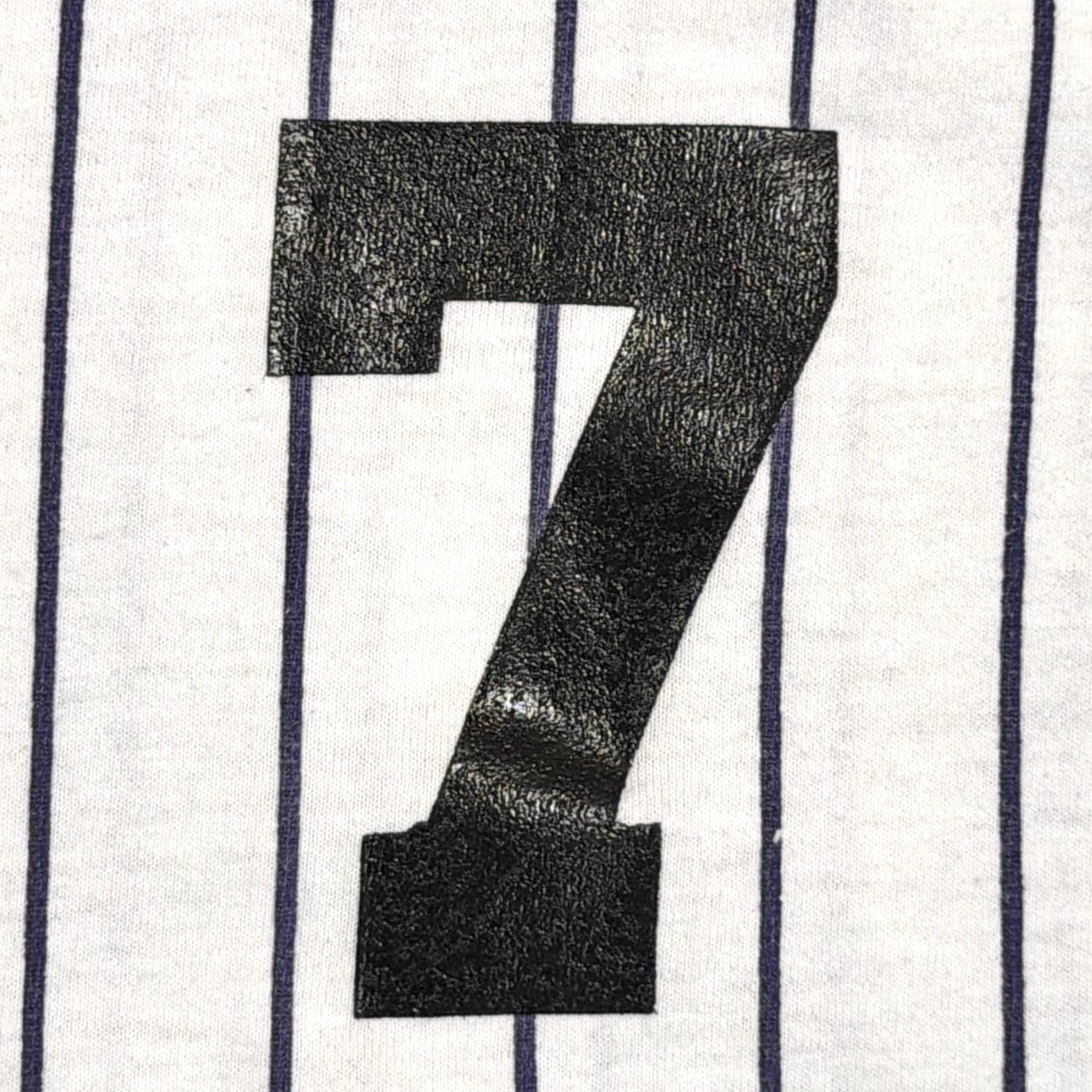 ホワイトベースに細めのストライプが入ったクラシックなベースボールデザインで、フロントとバックに入るナンバリング「7」が存在感のある一枚。