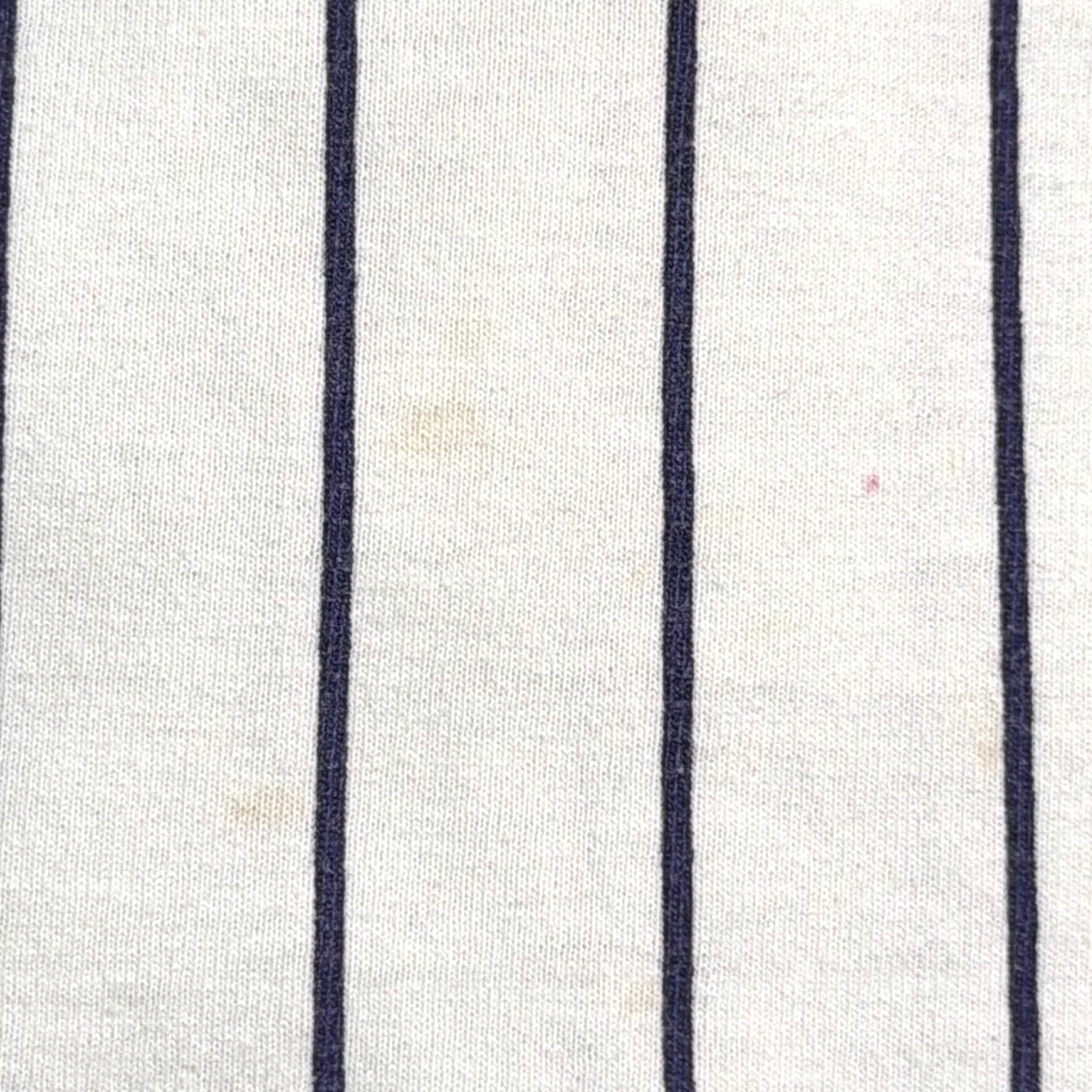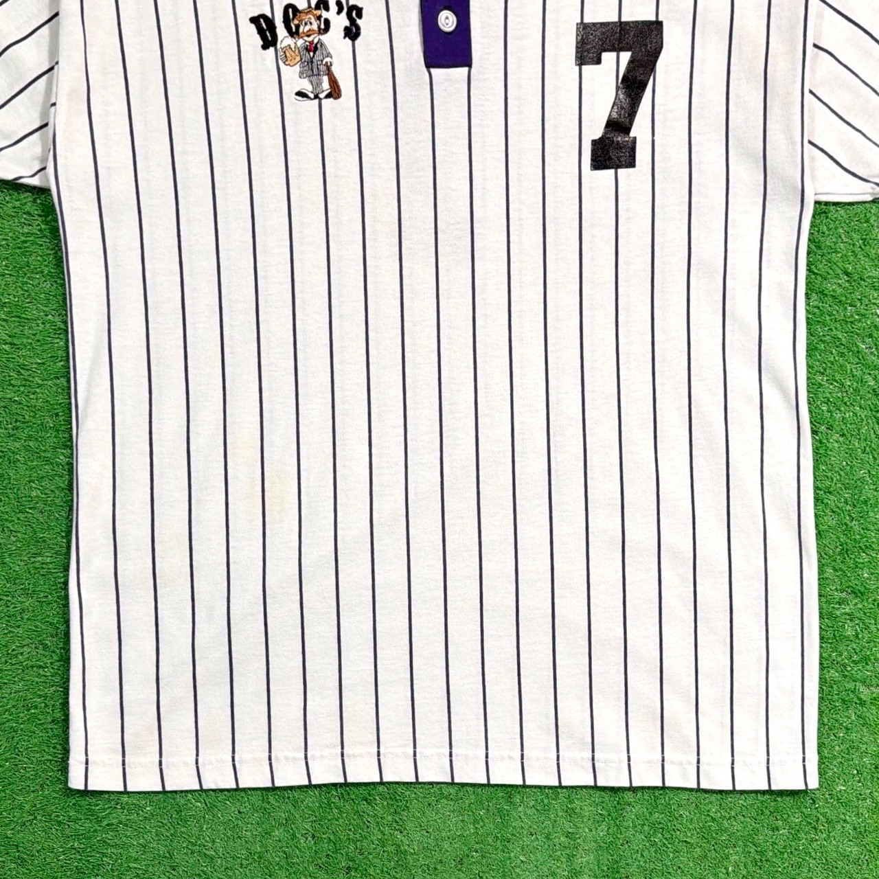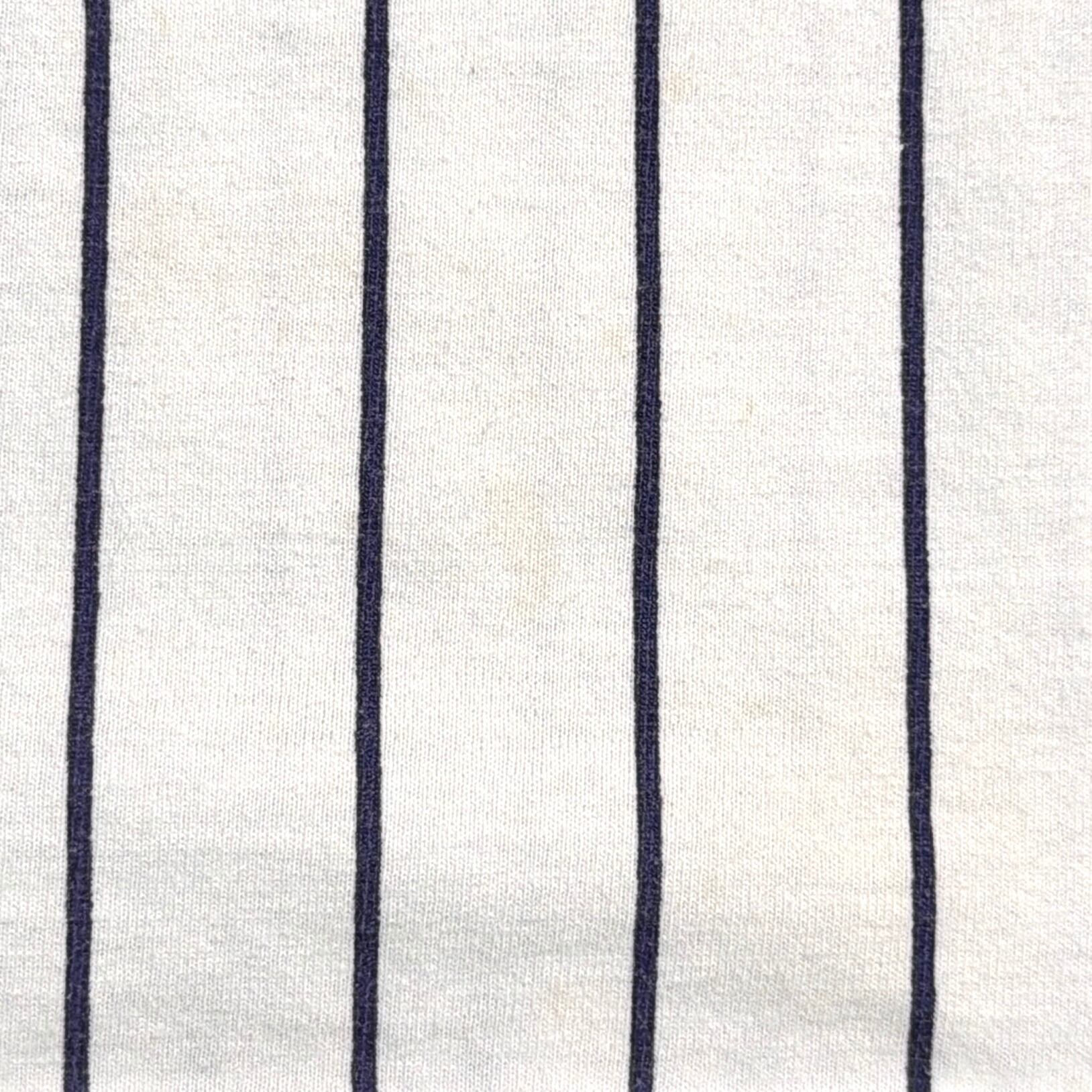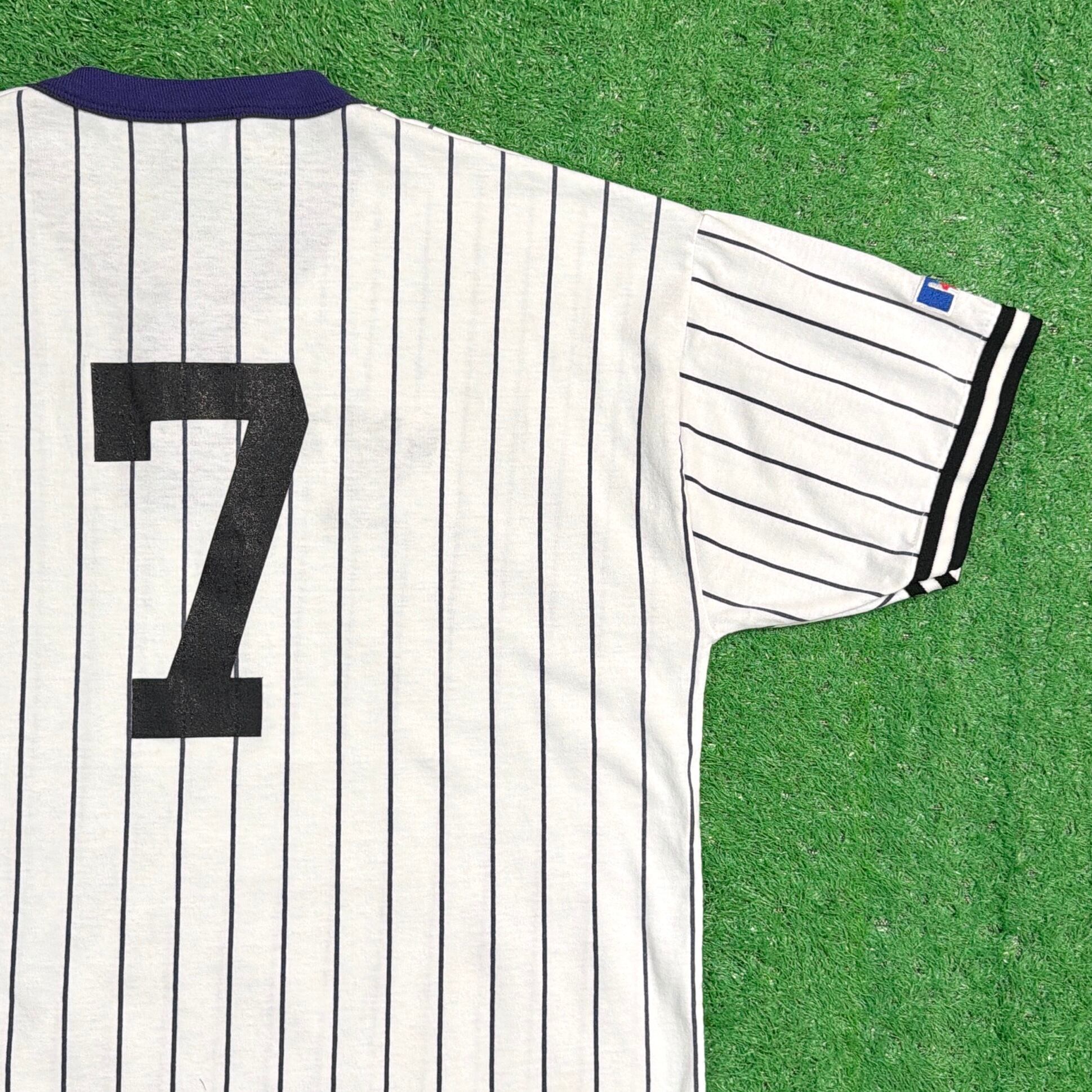 ホワイトベースに細めのストライプが入ったクラシックなベースボールデザインで、フロントとバックに入るナンバリング「7」が存在感のある一枚。