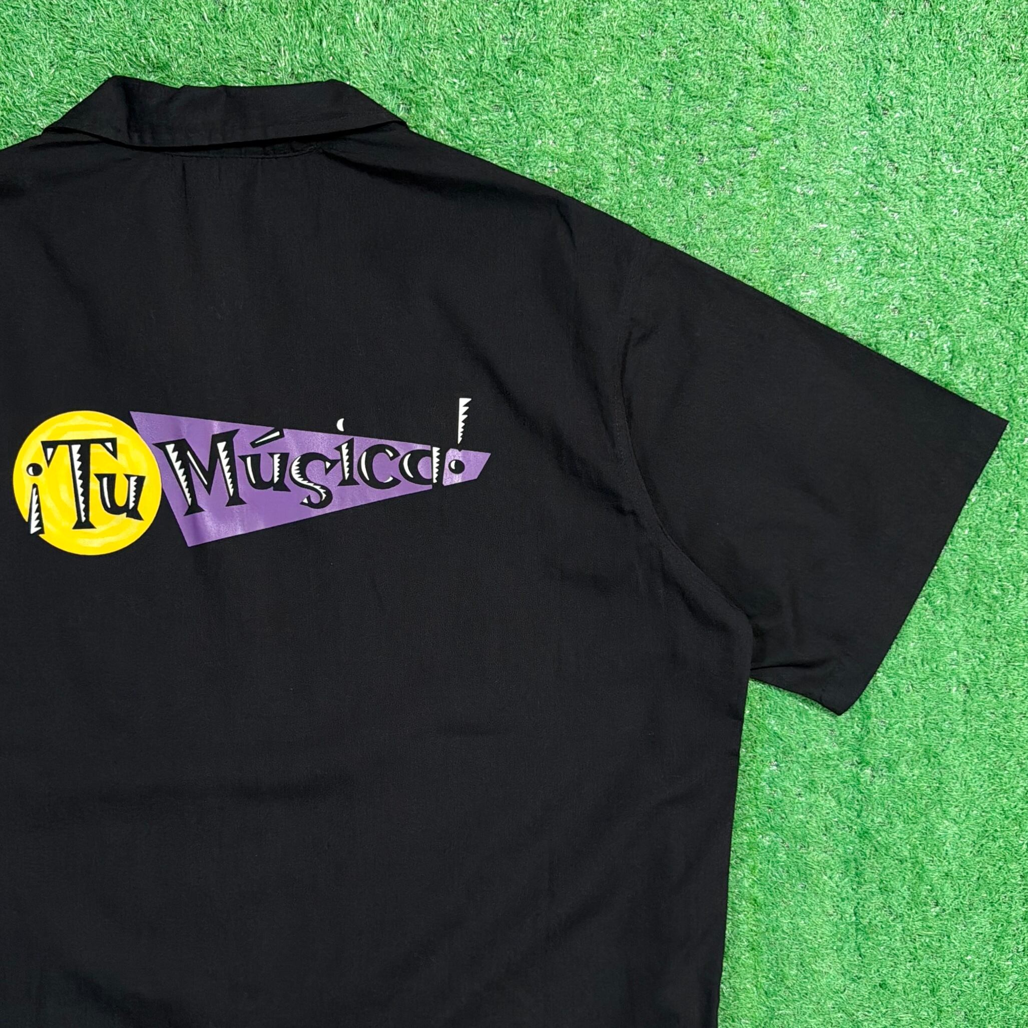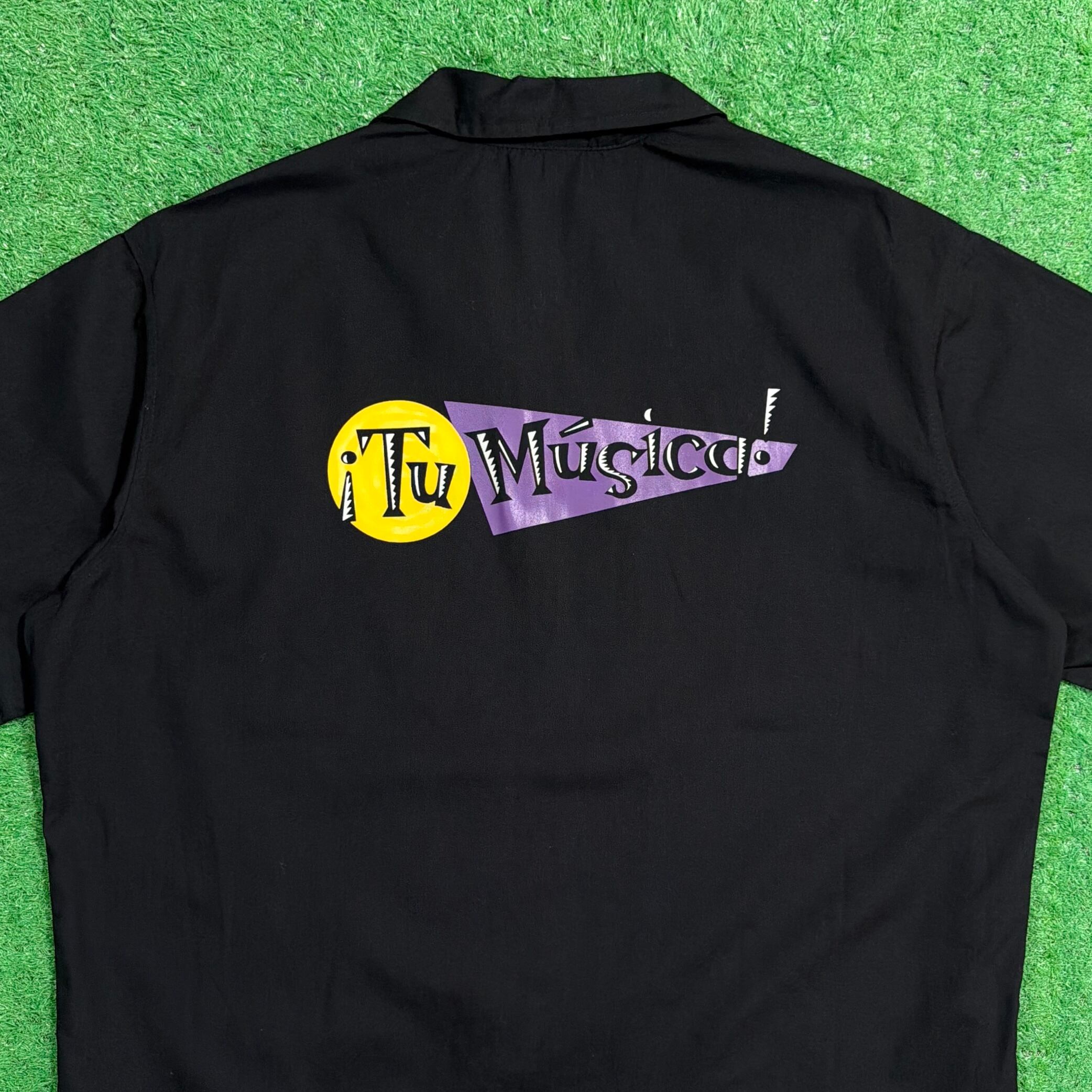 ブラックボディに、フロントの縦ラインと胸元のロゴデザインがアクセントになった一枚。バックにも同様のロゴが入り、シンプルながらもしっかりと存在感のある仕上がりです。ワークシャツらしいしっかりとした生地感で、ラフに羽織れるアイテムです。