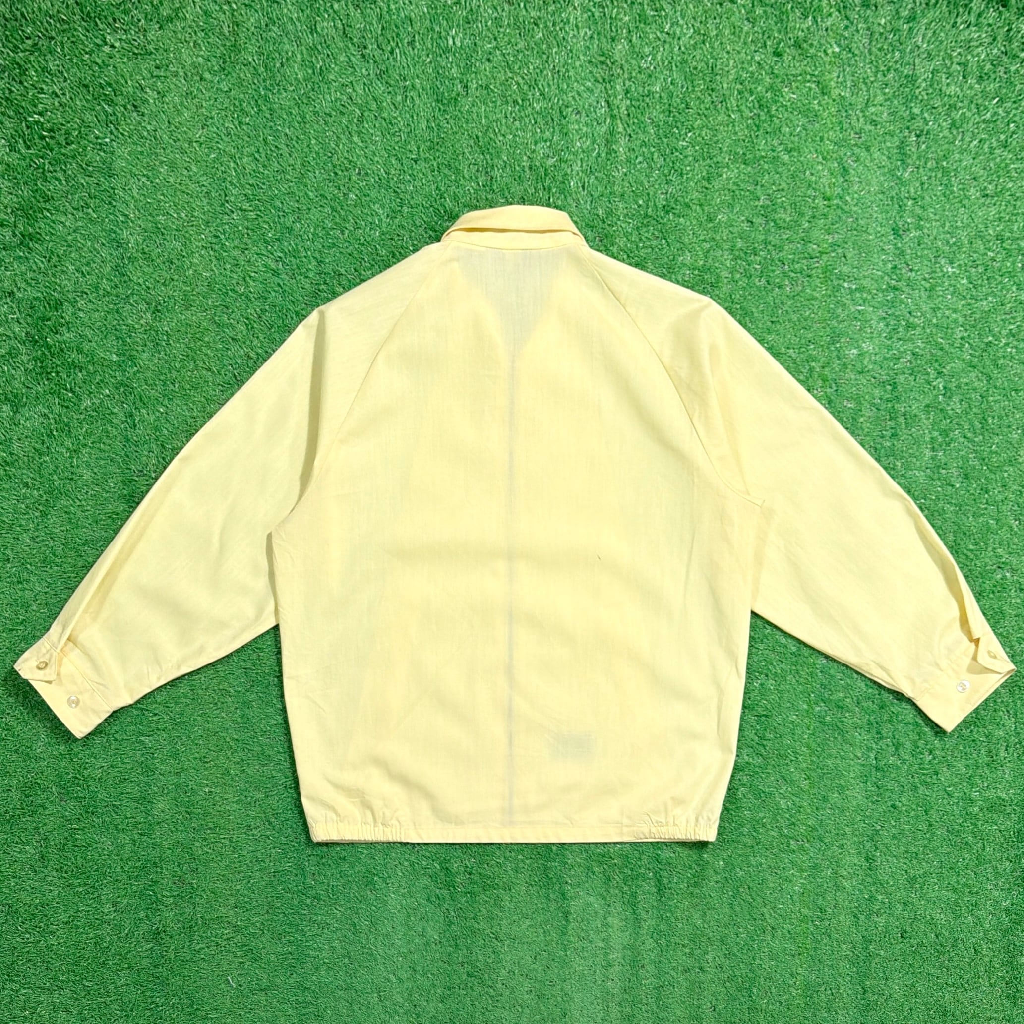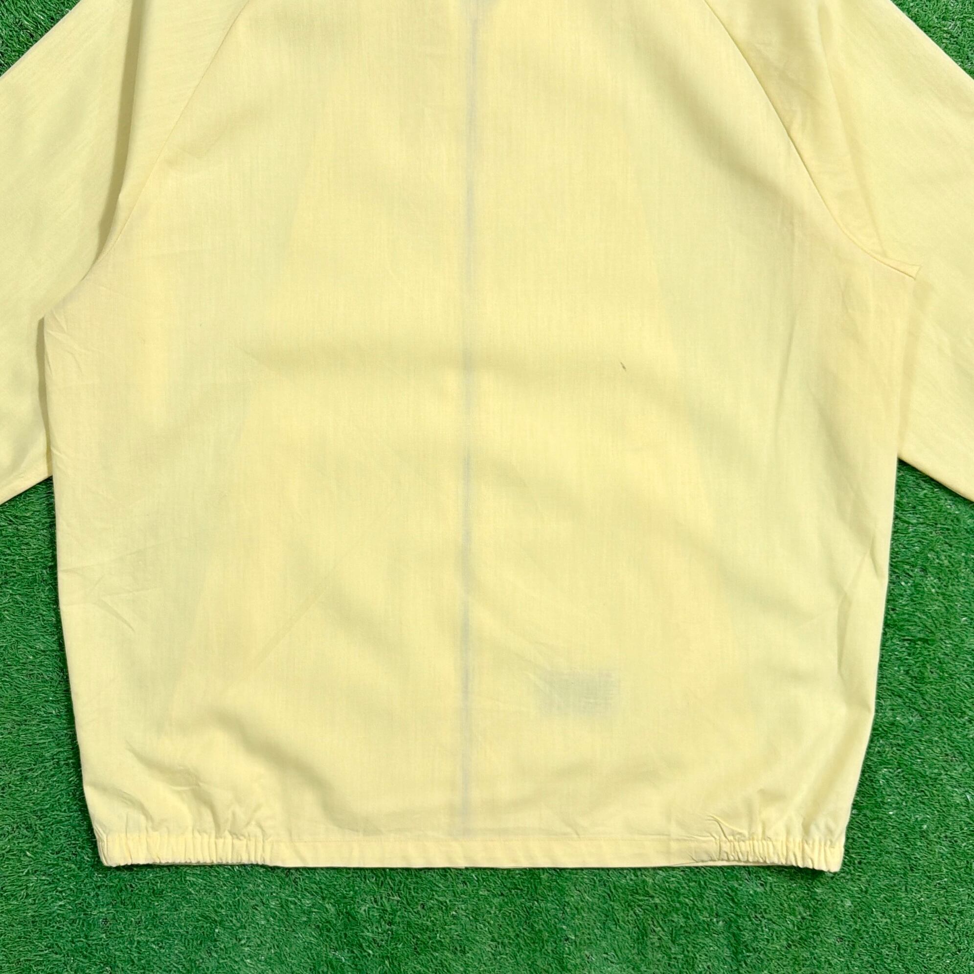 淡いイエローカラーが印象的な一枚で、シンプルながらもスタイリングのアクセントになるカラーリングが魅力。無駄のないミニマルなデザインで、幅広いコーディネートに取り入れやすいアイテムです。フロントはジップ仕様で、ドリズラージャケットらしいすっきりとしたシルエット。軽やかな生地感で、春や秋のライトアウターとして活躍します。