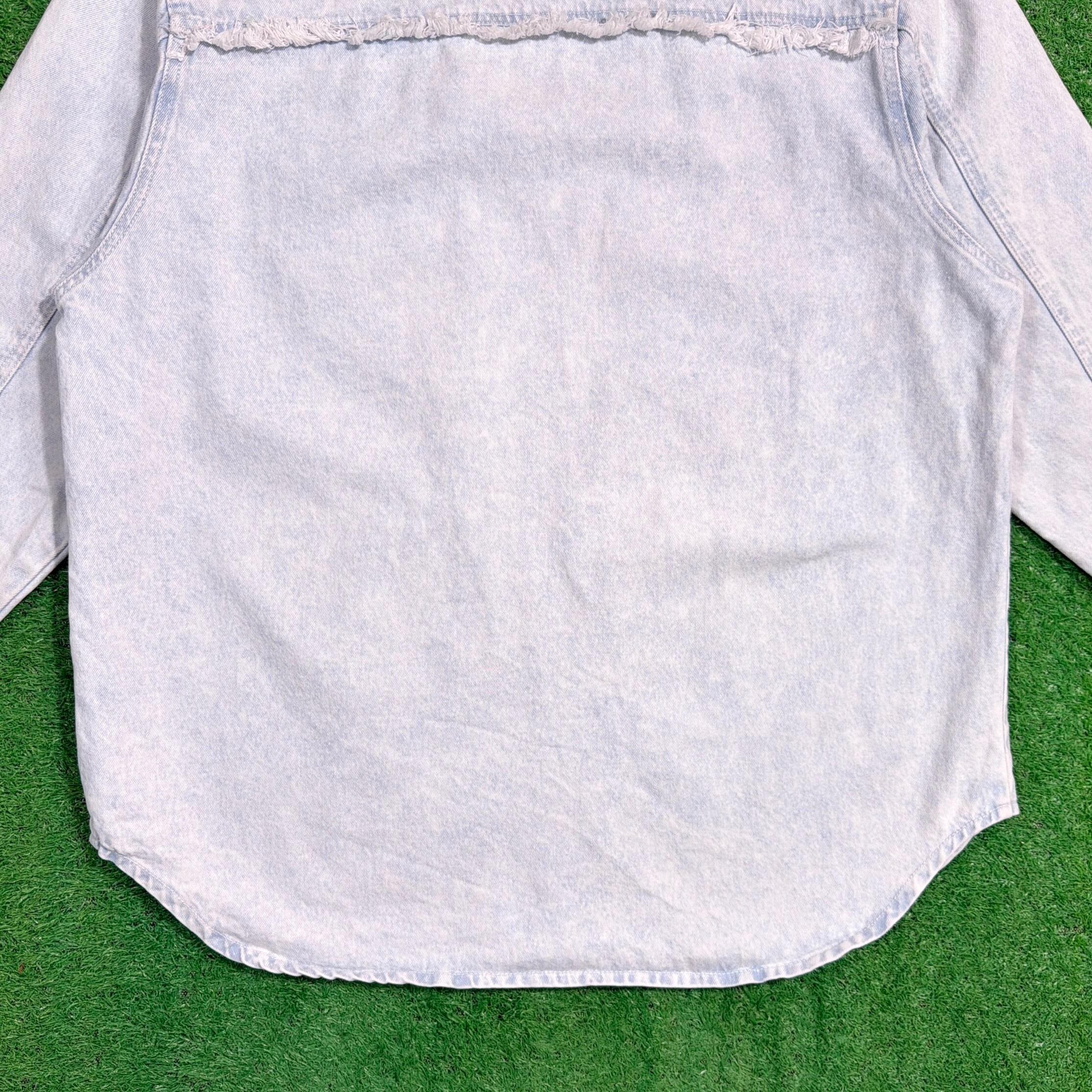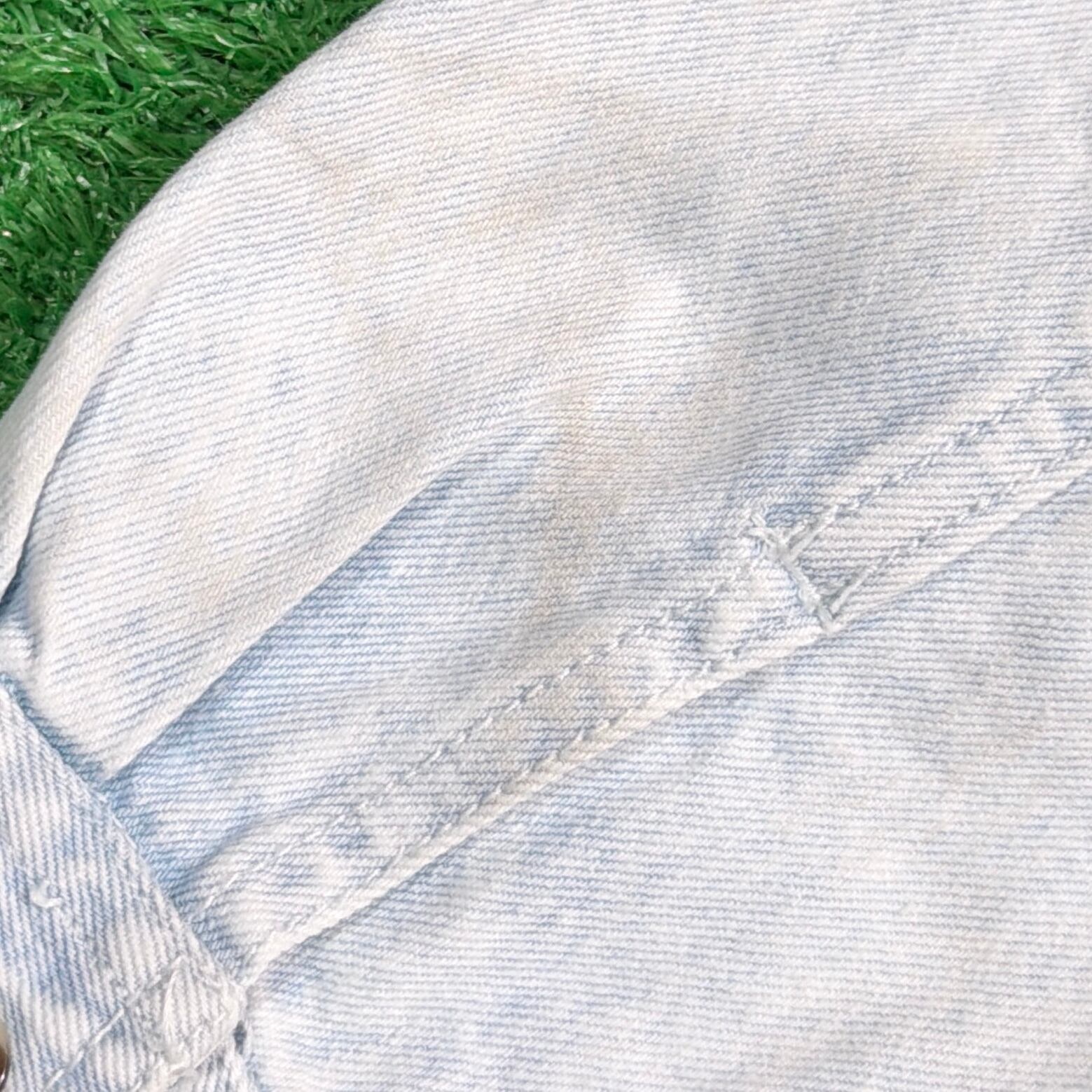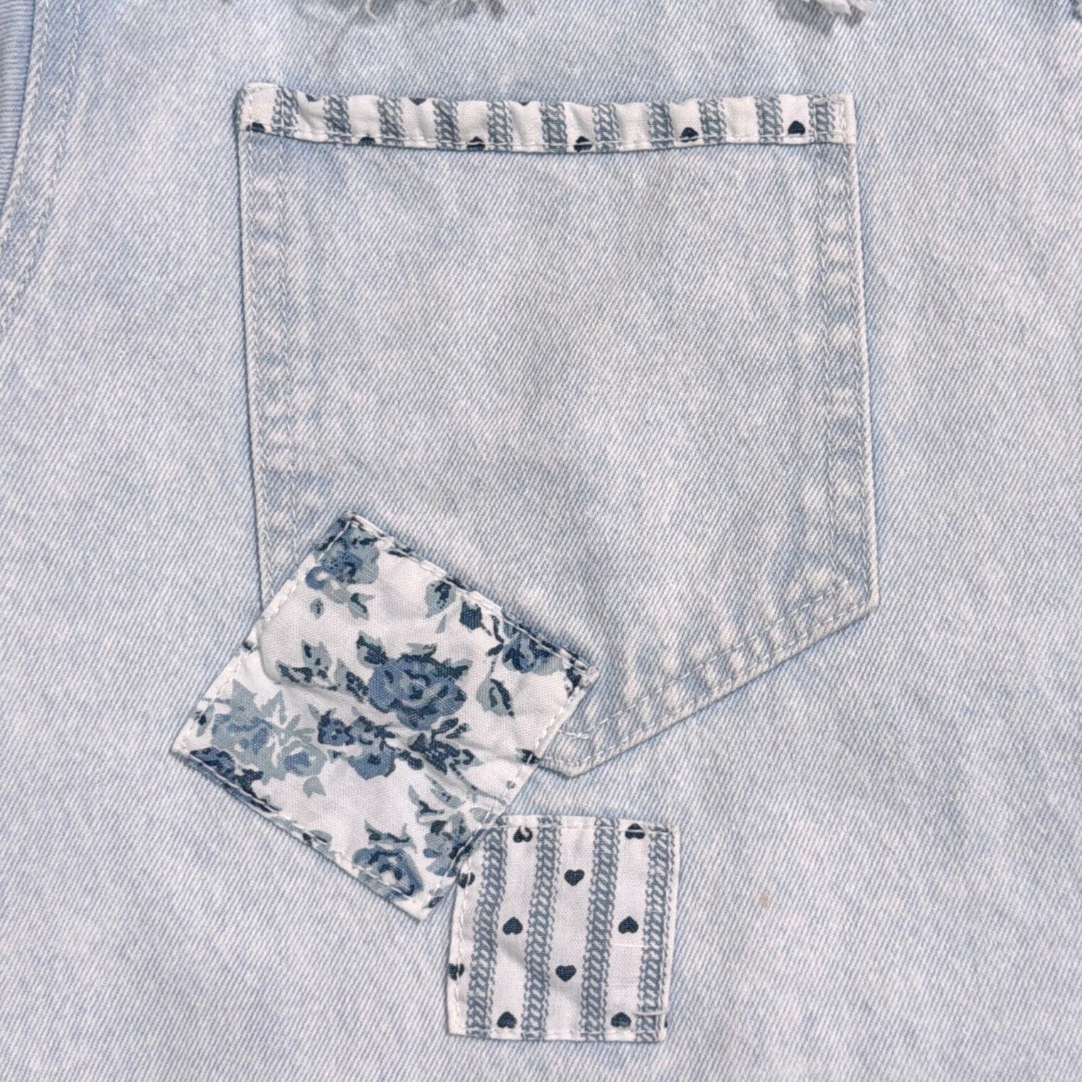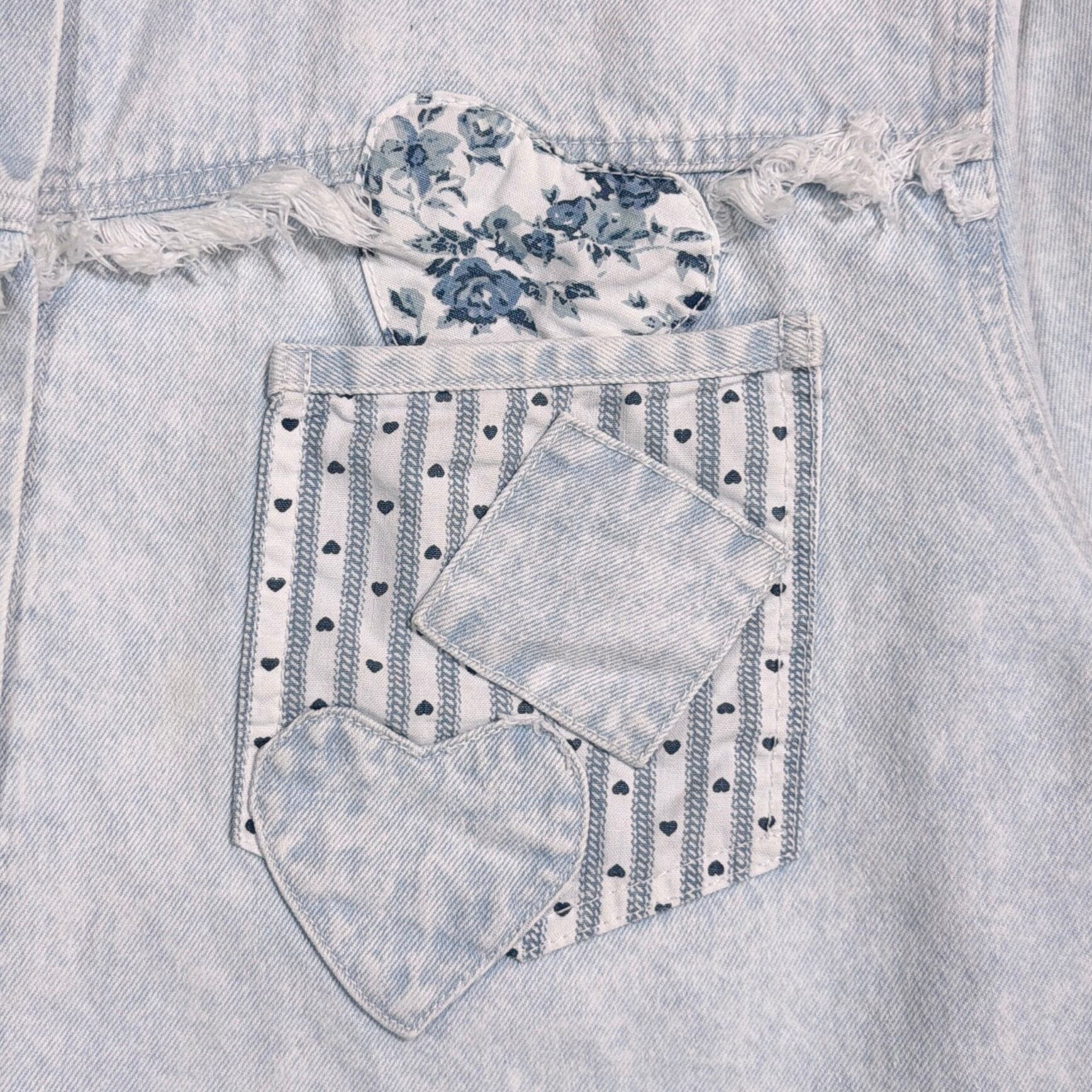 ライトブルーのデニムに、装飾が施された、しっかり個性のある一枚。細かいディテールまでこだわりを感じるデザインです。全体的にややライトなデニム生地で、シャツ感覚でさらっと着やすく、春秋はもちろん、羽織りとしても使える万能アイテム。シンプルなデニムシャツとは一味違う、80sらしいデザイン性が魅力です。