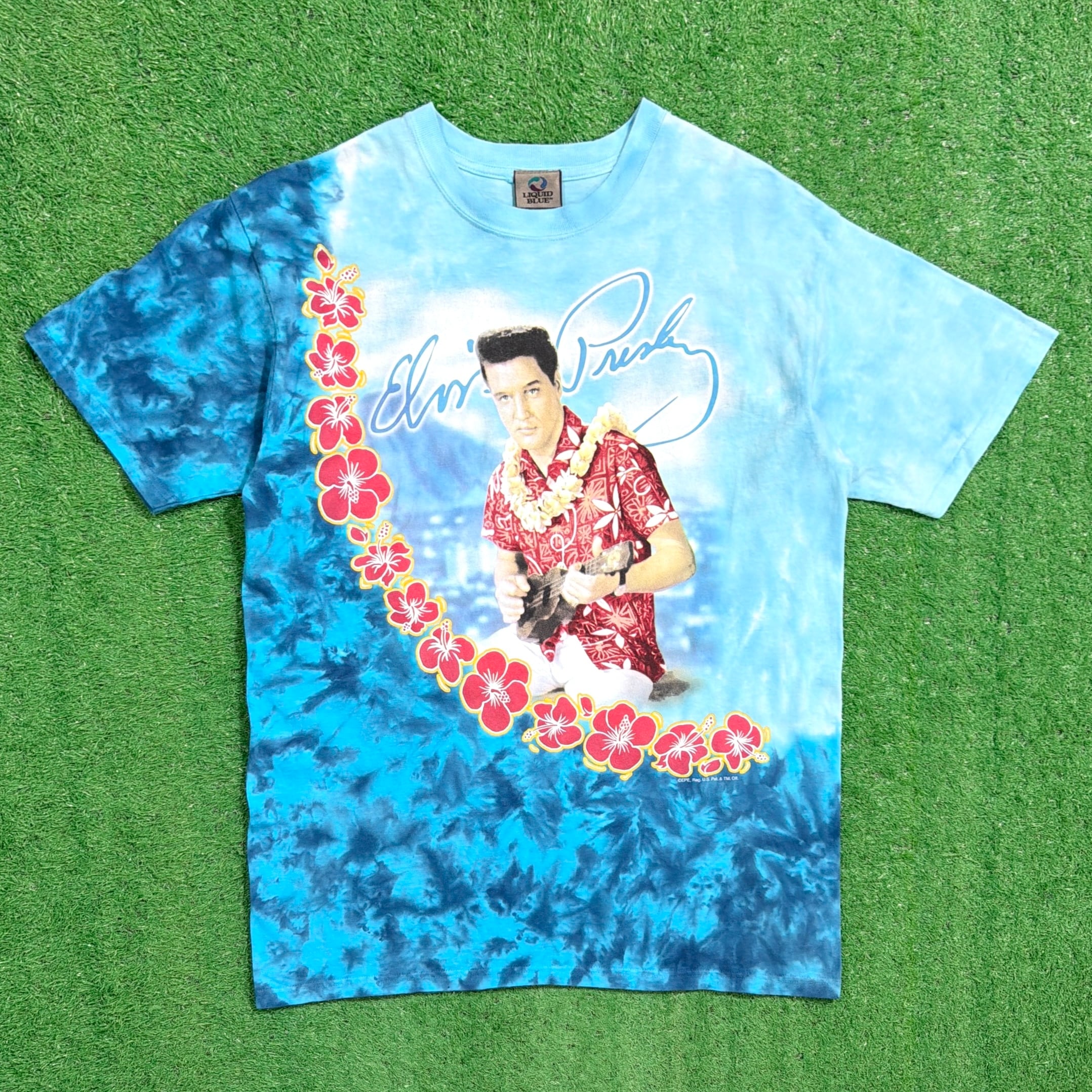 【Men's】 00s - Elvis Presley LIQUID BLUE Tシャツ / ティーシャツ T-Shirt アーティスト ロック 古着 タイダイ N0707