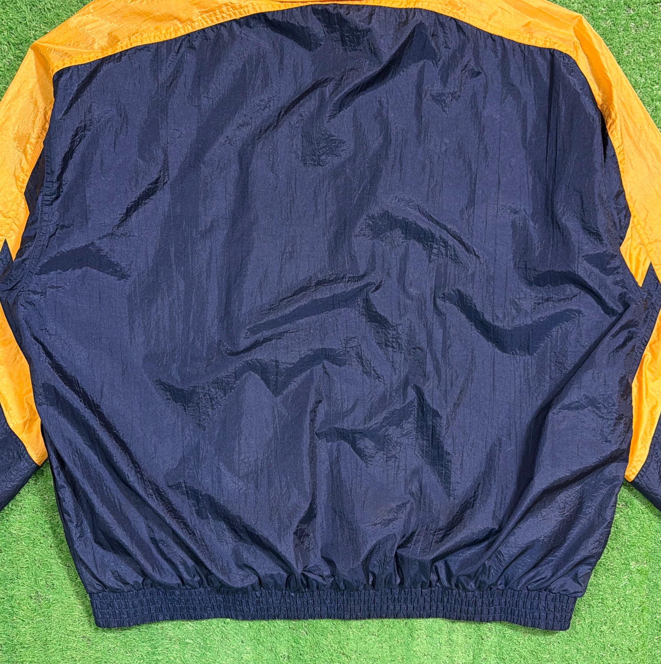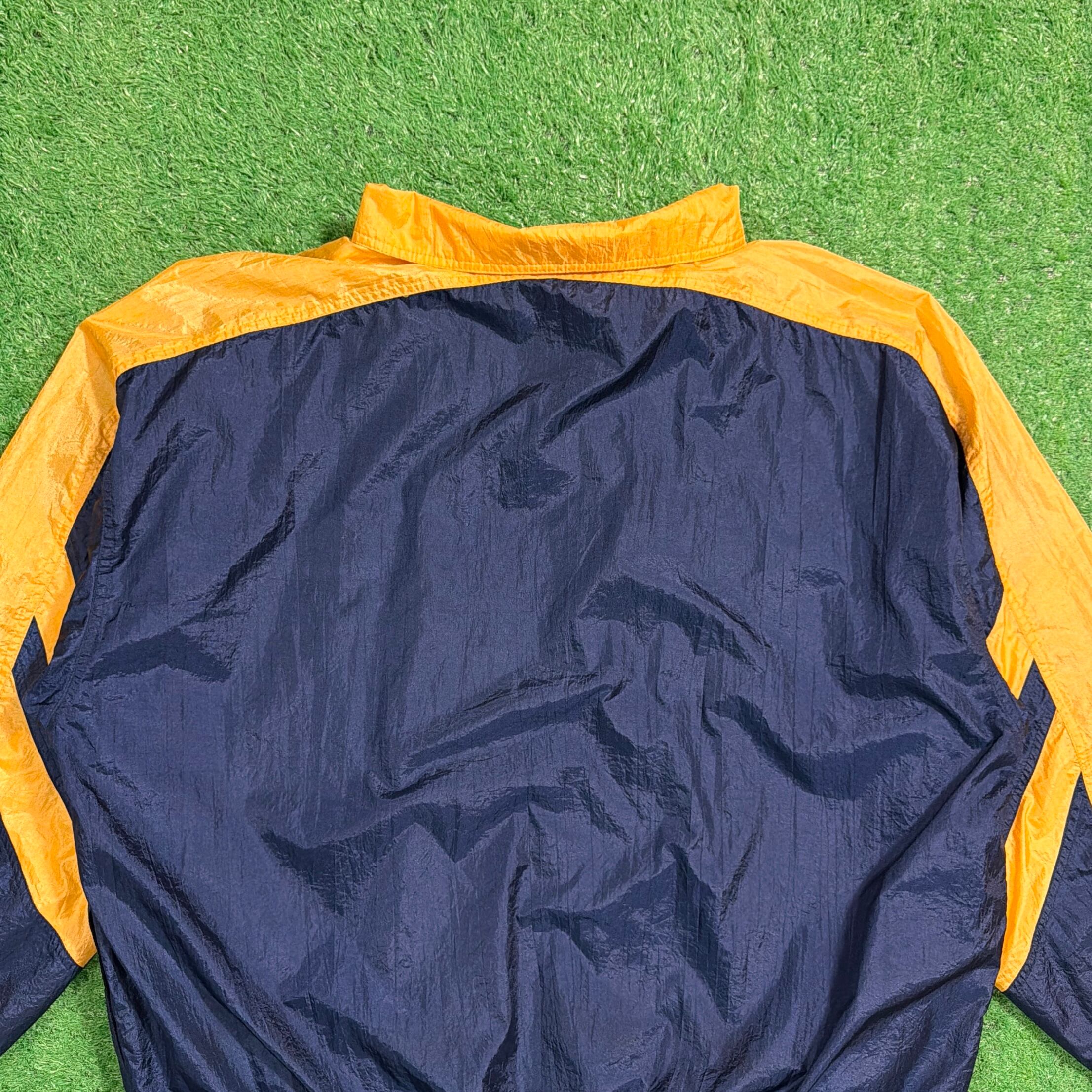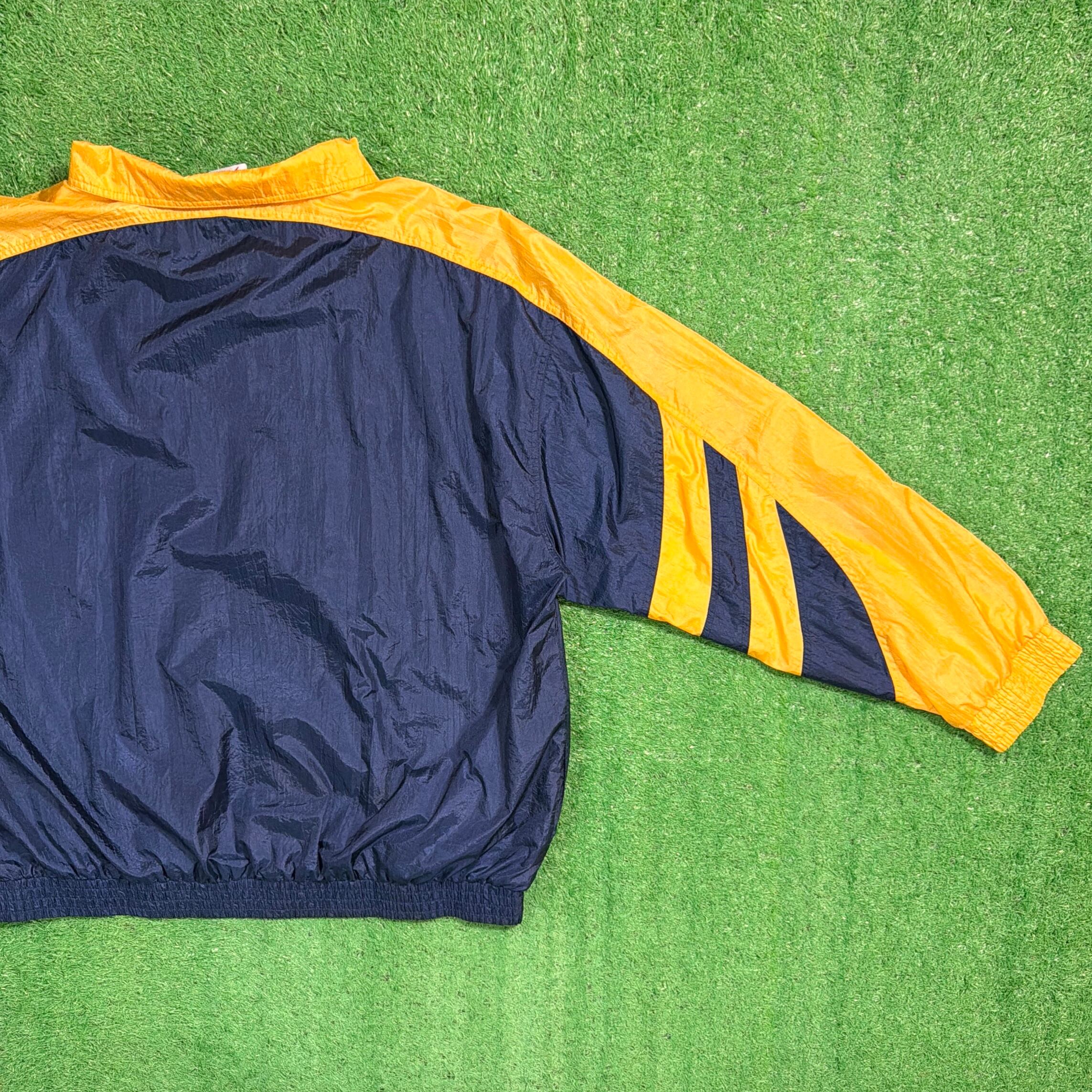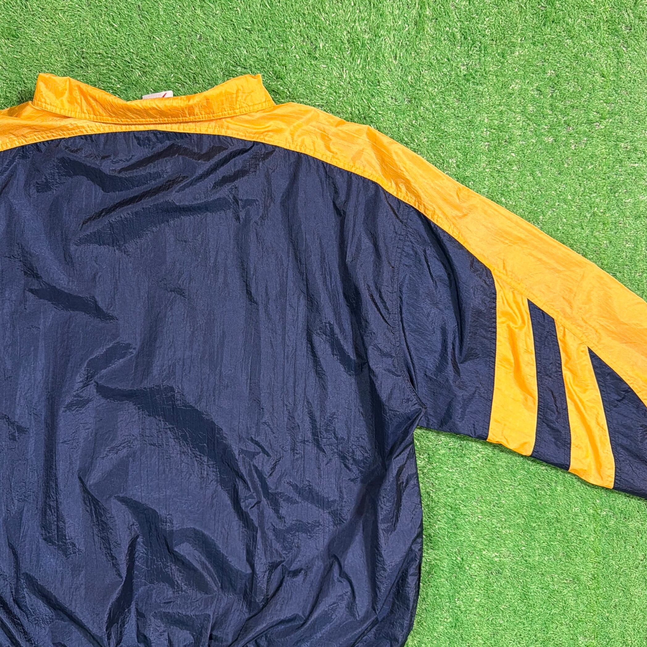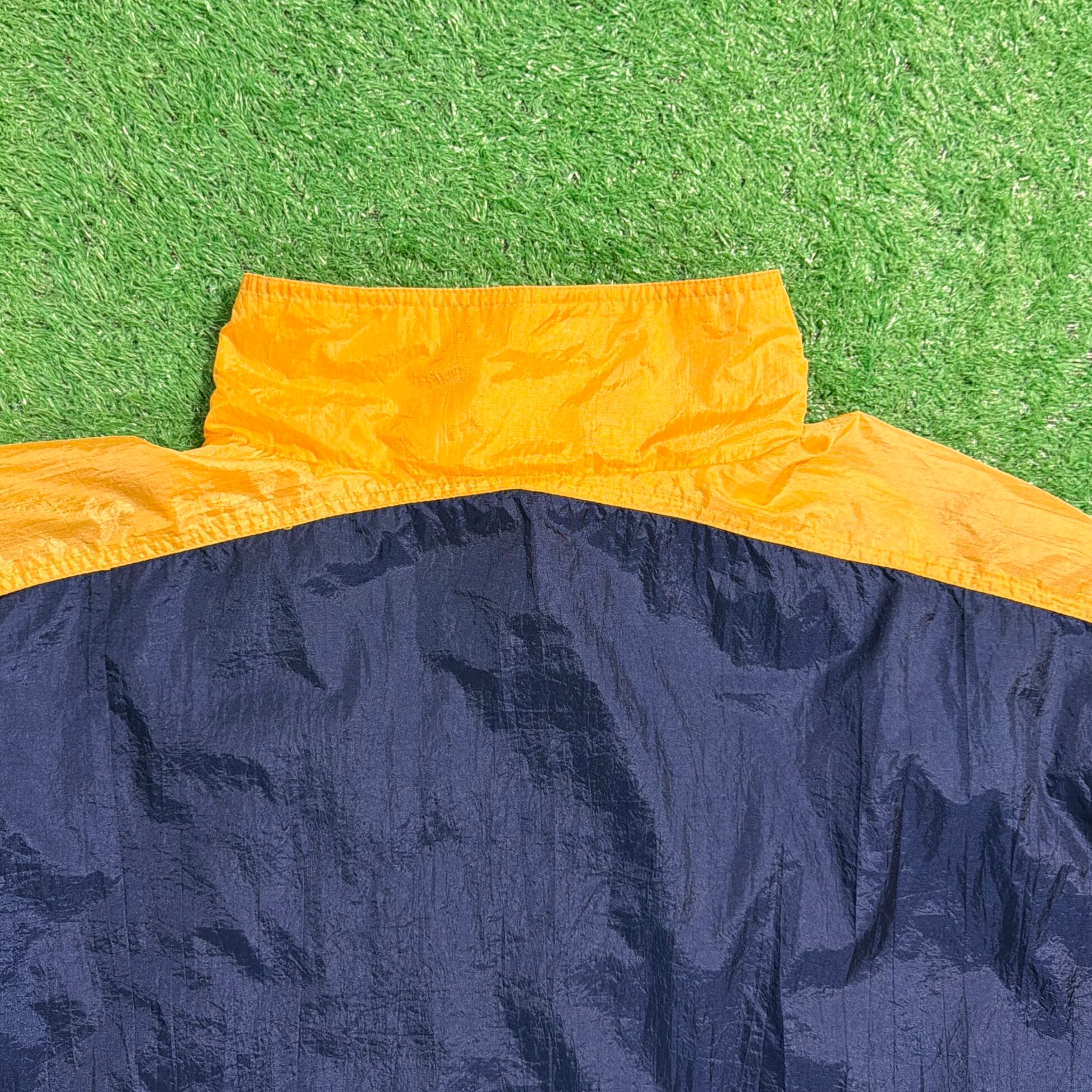 ネイビー×イエローの切り替えデザインが印象的で、スポーティーな雰囲気がしっかりと感じられる一枚。胸元とバックに入るロゴもアクセントになっており、90sらしい配色とデザインが魅力です。