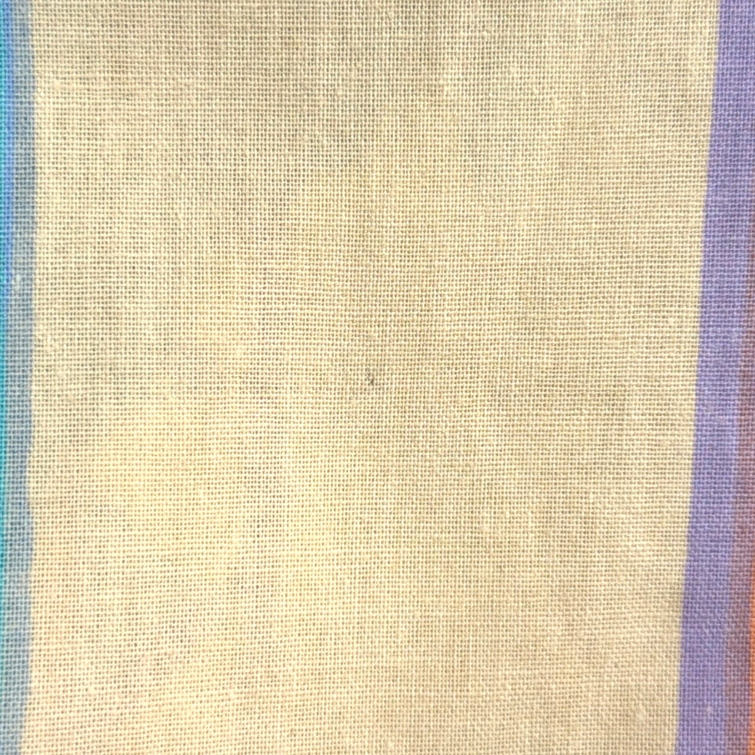 淡いブルーやパープルを基調としたカラーリングに、幾何学模様が組み合わさった存在感のある一枚。さらっとした軽い生地感で、季節を問わずレイヤードに取り入れやすいアイテムです。