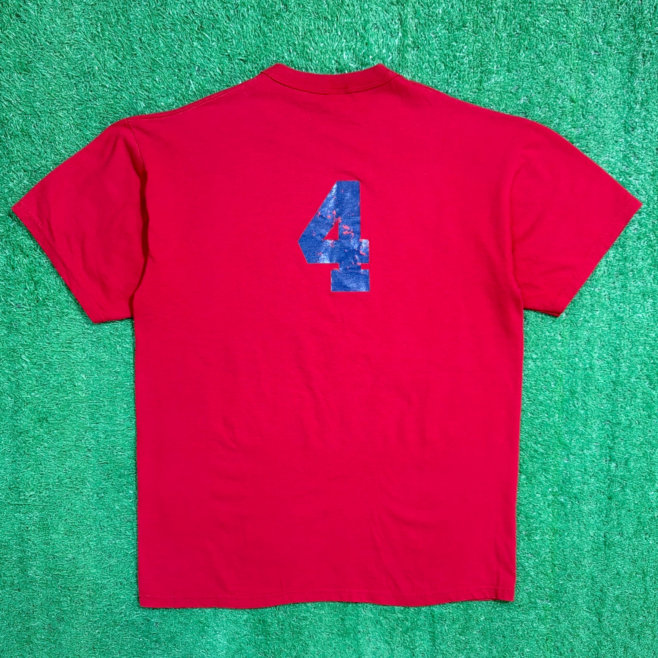 フロントにはおなじみのアーチロゴ、バックには「4」のナンバープリントが入る、シンプルながらインパクトのあるデザイン。企業モノらしいポップさと、スポーツTのようなナンバーデザインが合わさった雰囲気のある一枚です。