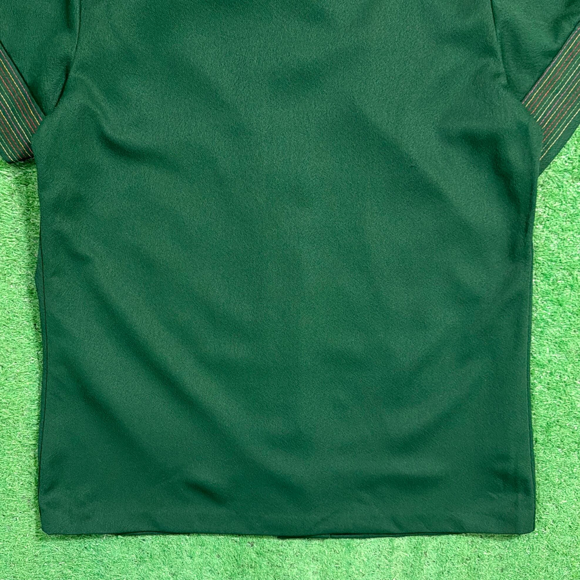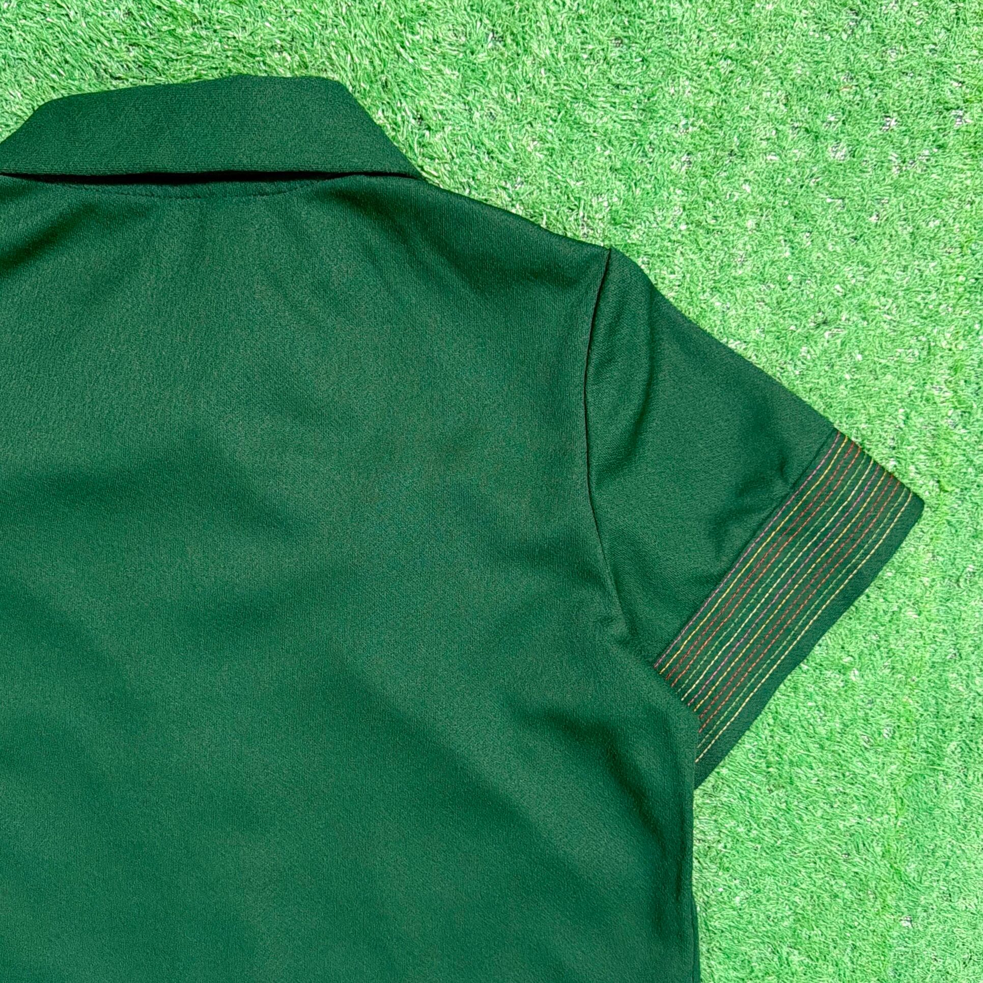 深みのあるグリーンカラーに、肩から袖にかけて施されたステッチデザインが特徴的な一枚。刺繍のようにも見える装飾がアクセントになっており、シンプルながらも70年代らしいディテールがしっかり感じられます。