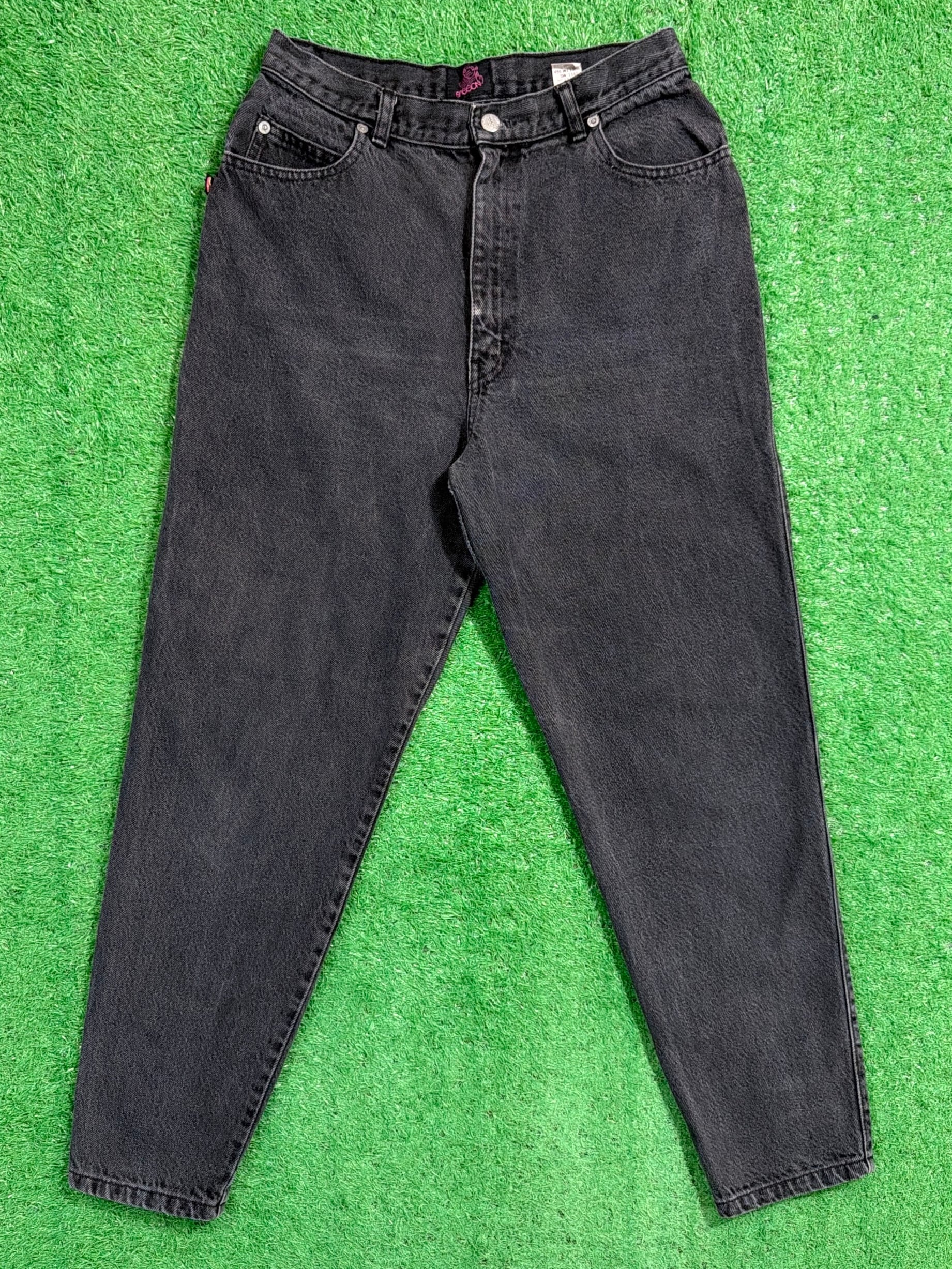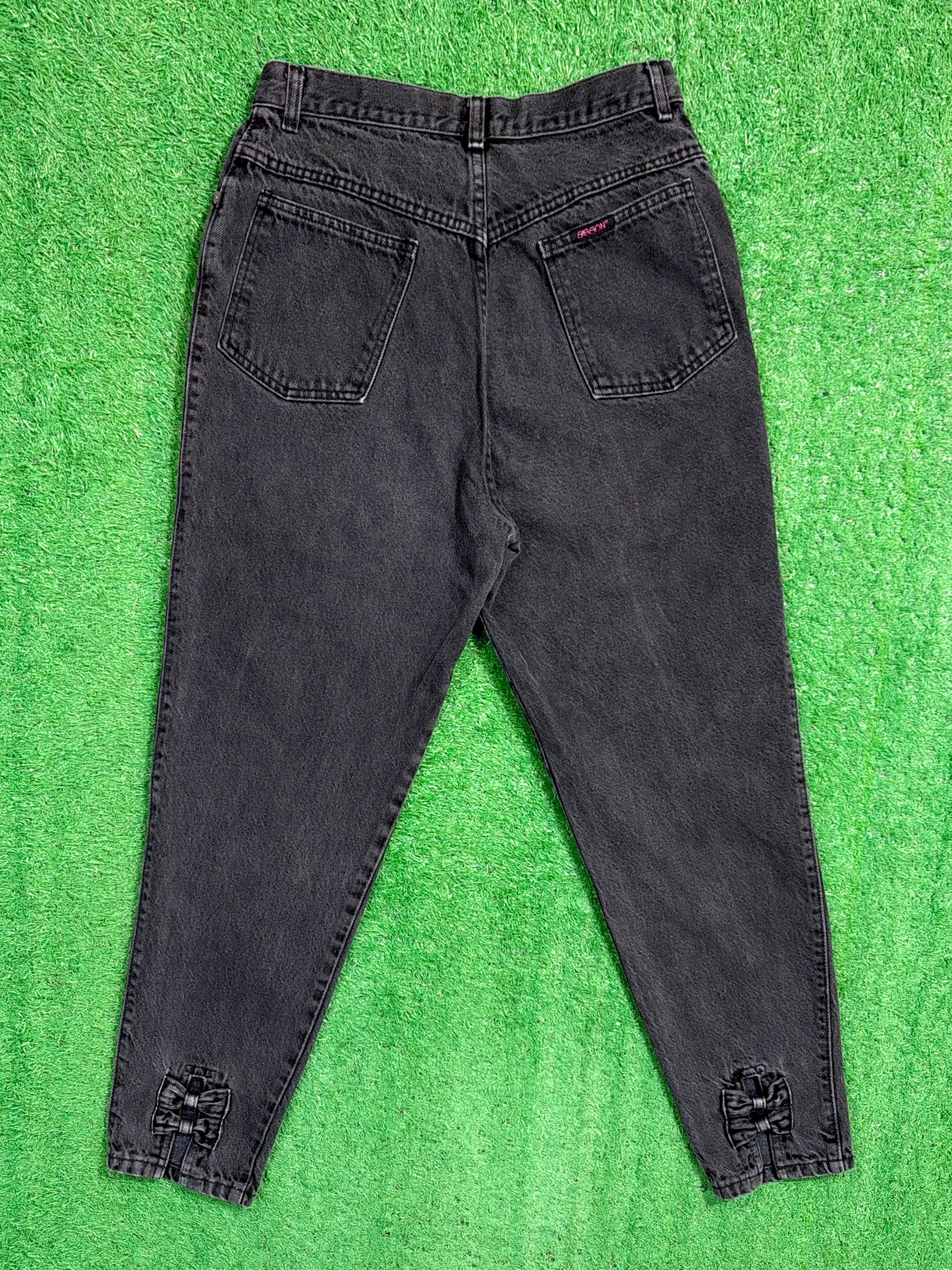 【Lady's】 80s ハイウエスト デザイン ブラック デニムパンツ / 80年代 ジーンズ ジーパン ブラックデニム レディース 古着 N0801