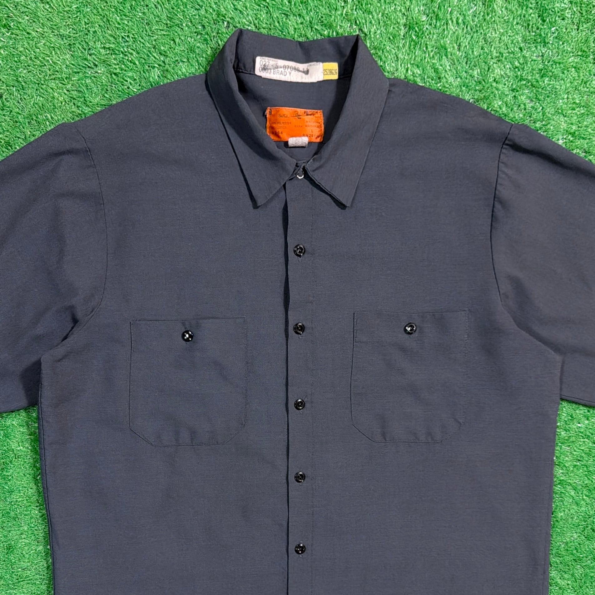 フロントはシンプルなワークシャツ仕様で、バックプリントとのバランスも良く、着たときにしっかり存在感の出るデザイン。ワークウェアらしいタフな作りで、デイリーにも取り入れやすいアイテムです。
