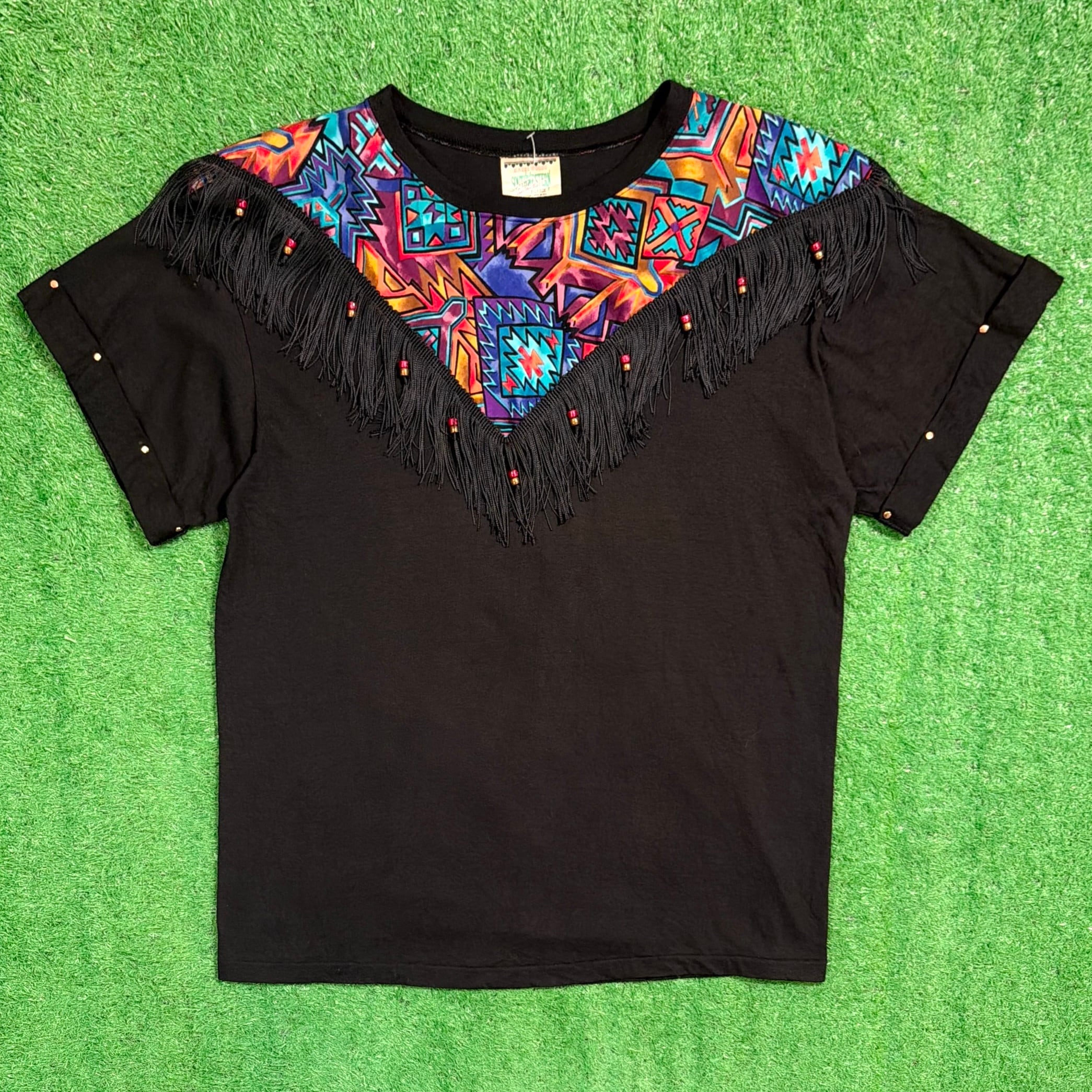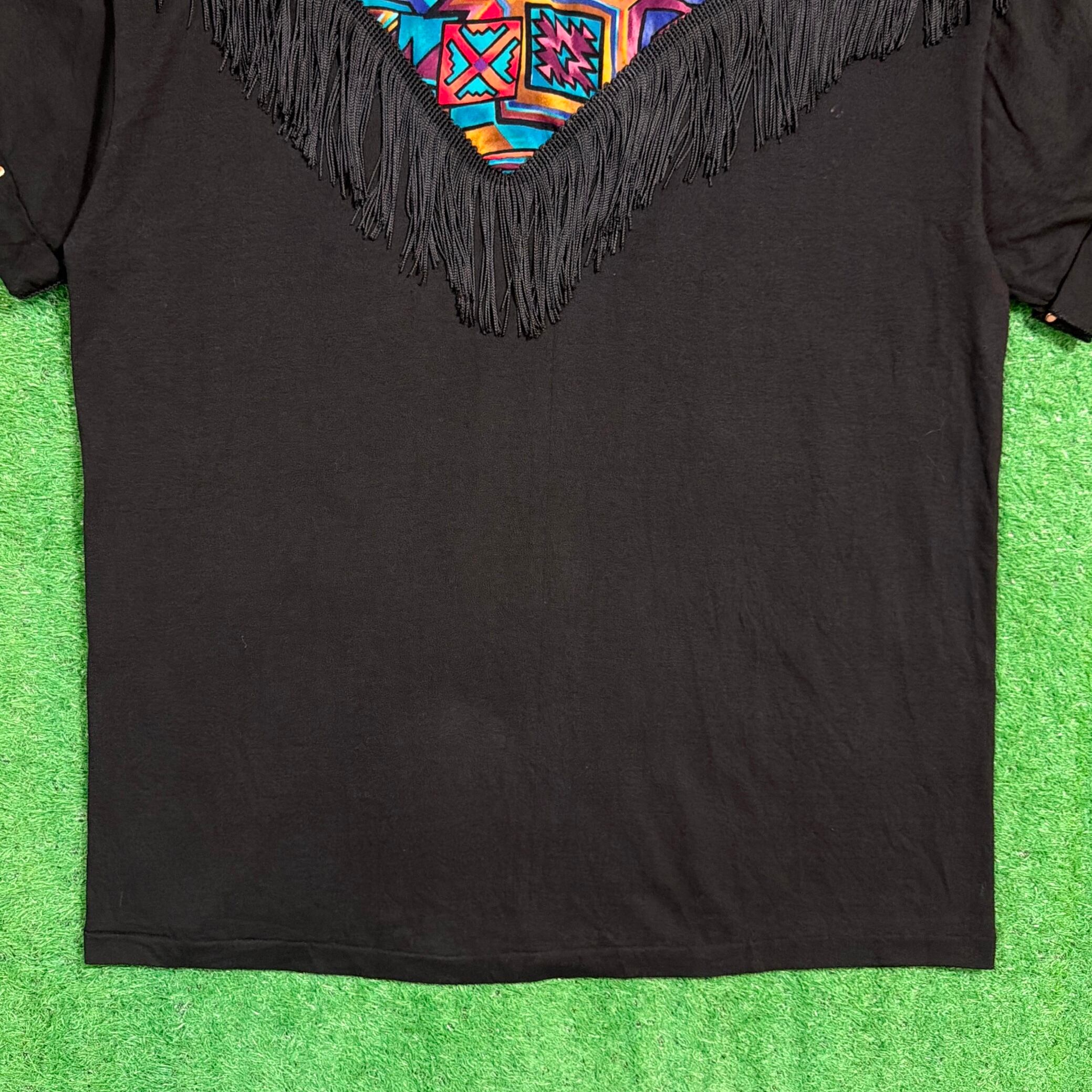 1980年代〜1990年代頃のアメリカ製、ネイティブデザインのフリンジTシャツです。