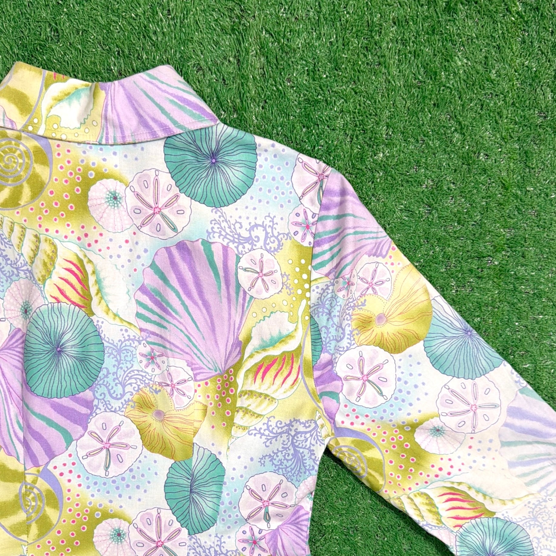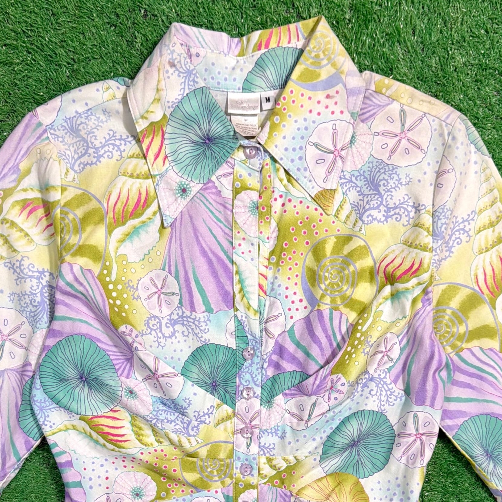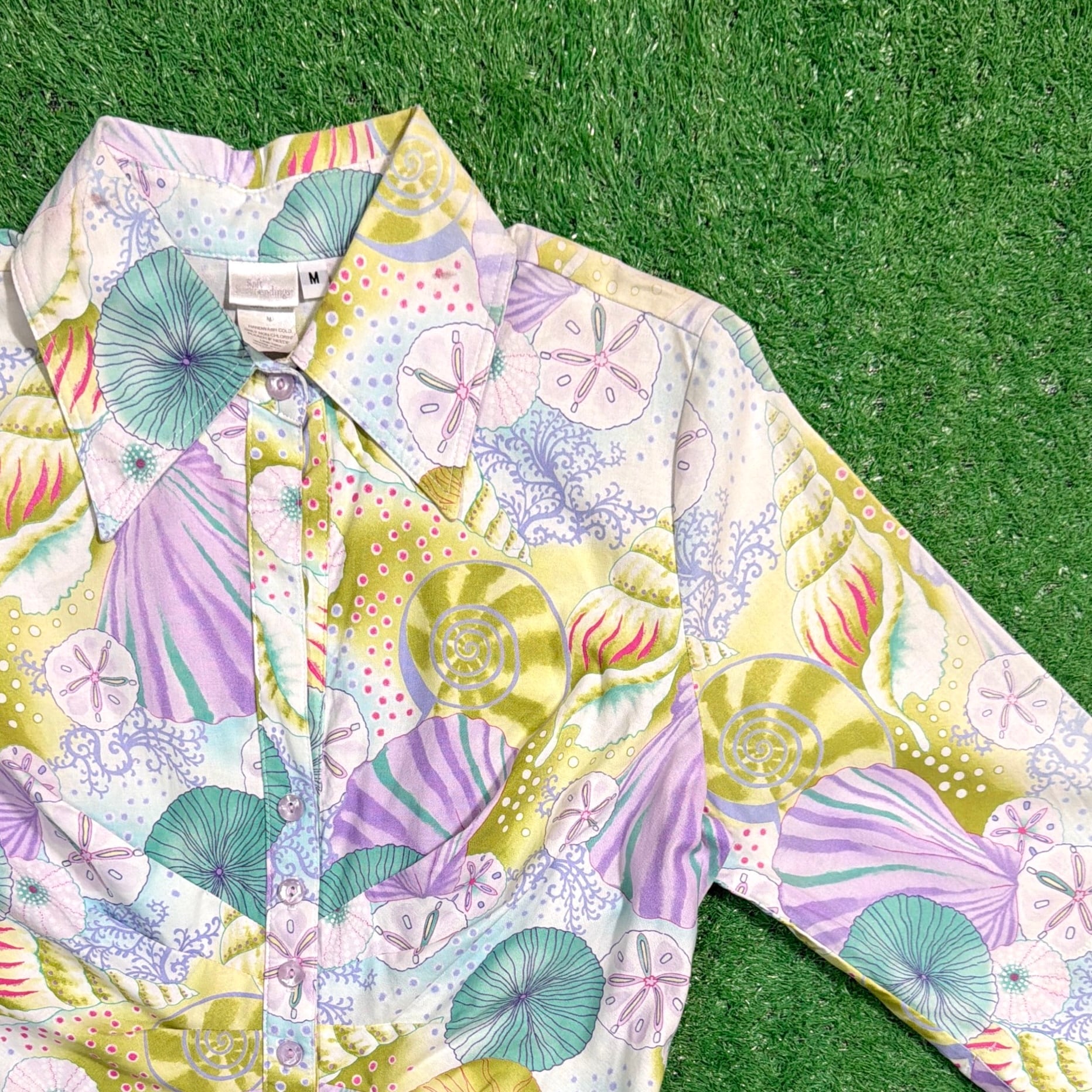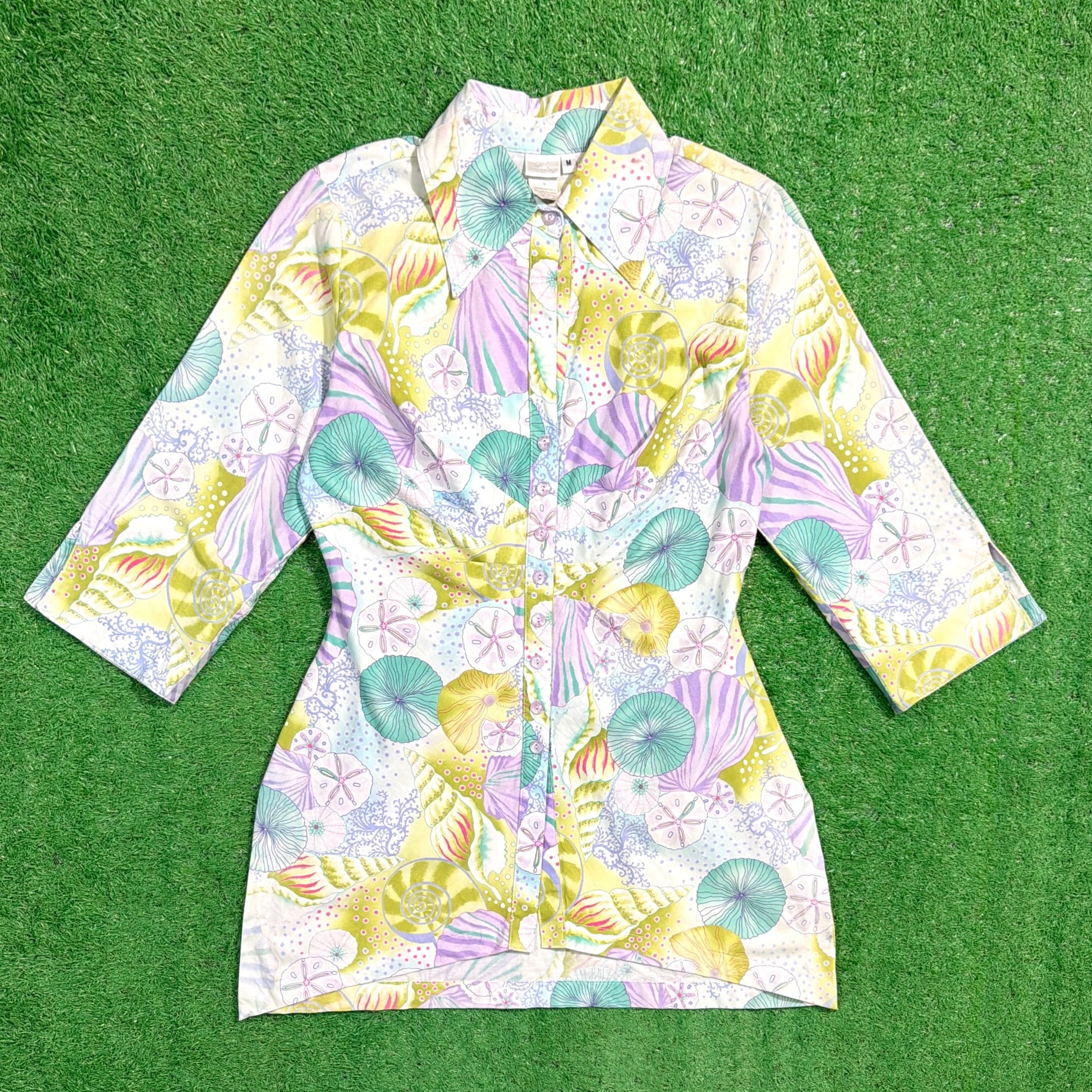 【Lady's】 00s - ボタニカル柄 ロング丈 シャツ / アメリカ製 USA製 古着 レディース 総柄 柄シャツ N0819