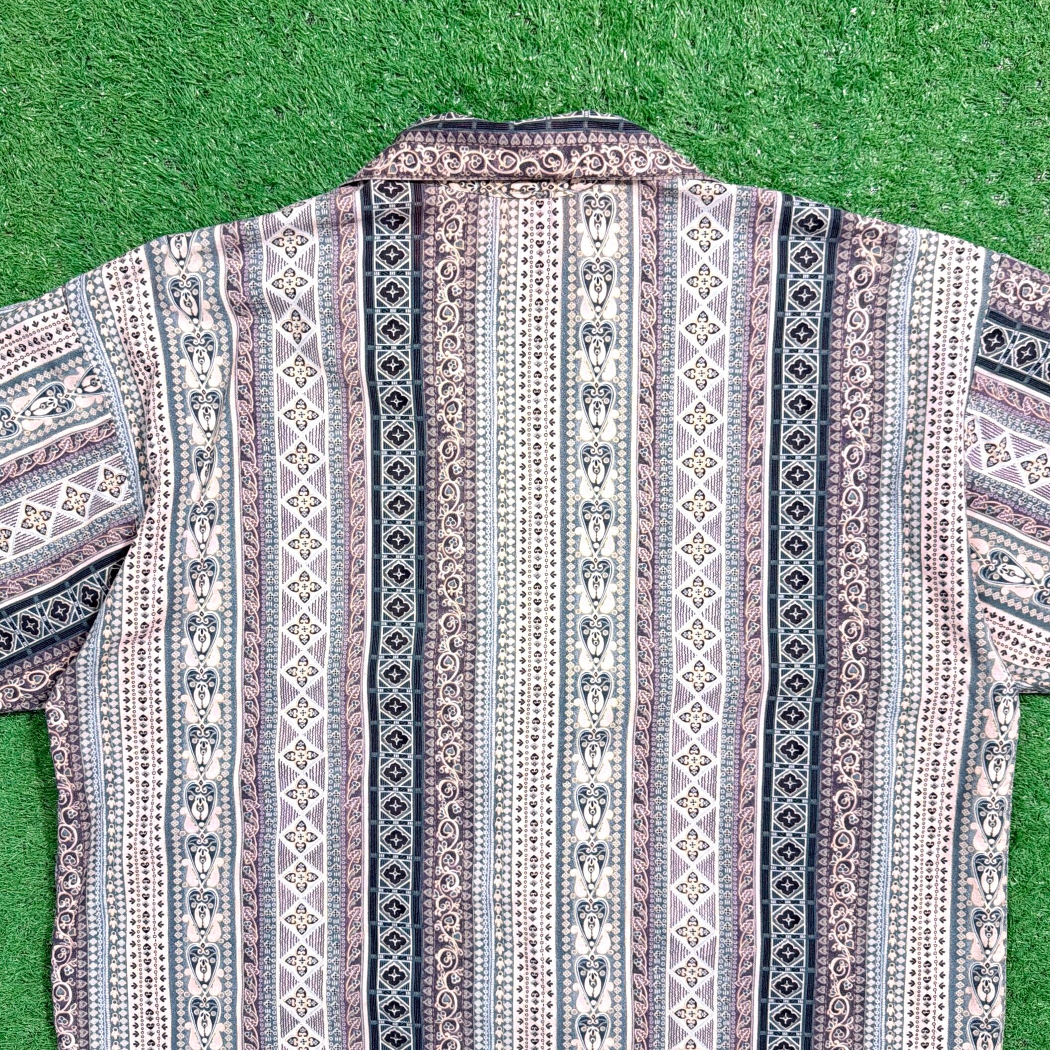 【Unisex】 90s エスニック ストライプ 開襟 シャツ / アメリカ製 USA製 90年代 古着 柄シャツ 総柄 メンズ レディース 1723