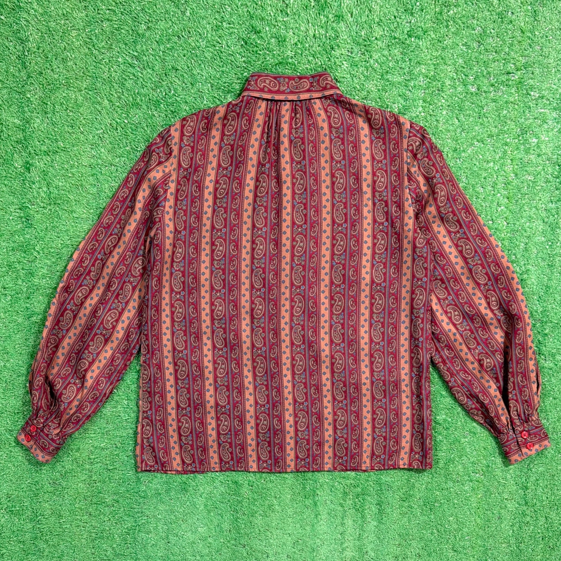 【Lady's】 70s ペイズリー ストライプ シャツ / 70年代 長袖 レディース 総柄 柄シャツ 1725