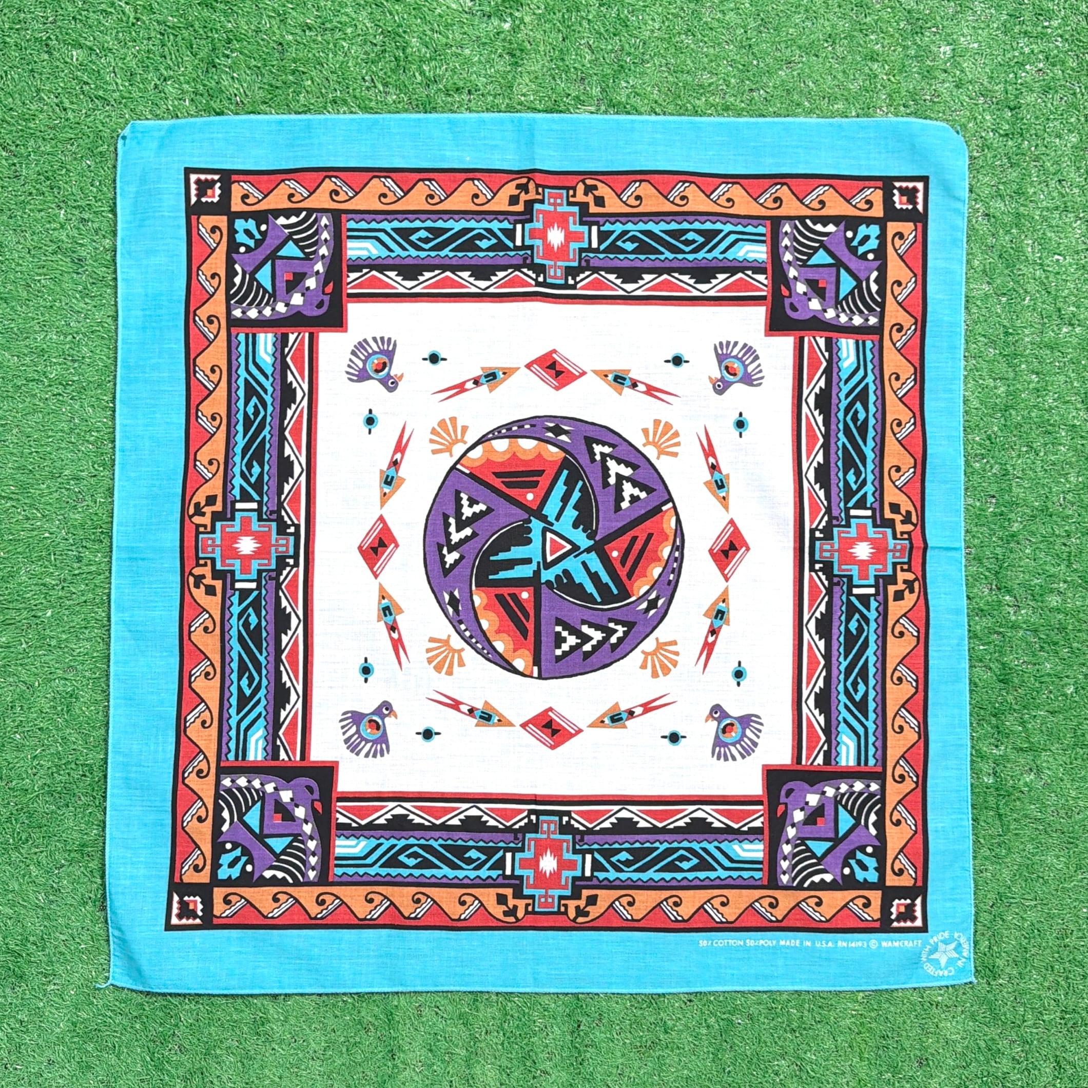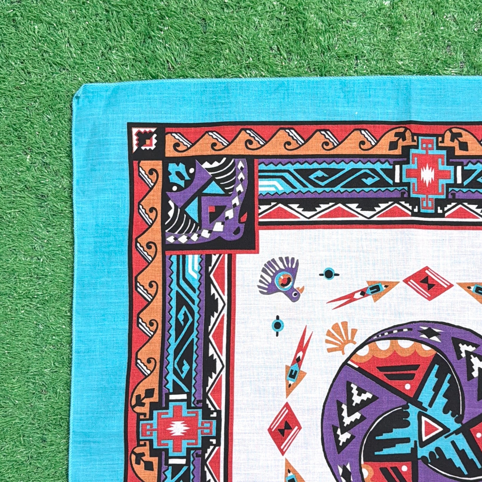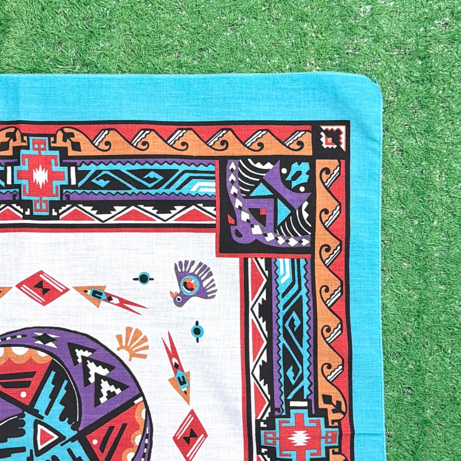 【Unisex】 90s ネイティブ柄 バンダナ / アメリカ製 USA製 90年代 古着 ネイティブアメリカン オルテガ ハンカチ 1727