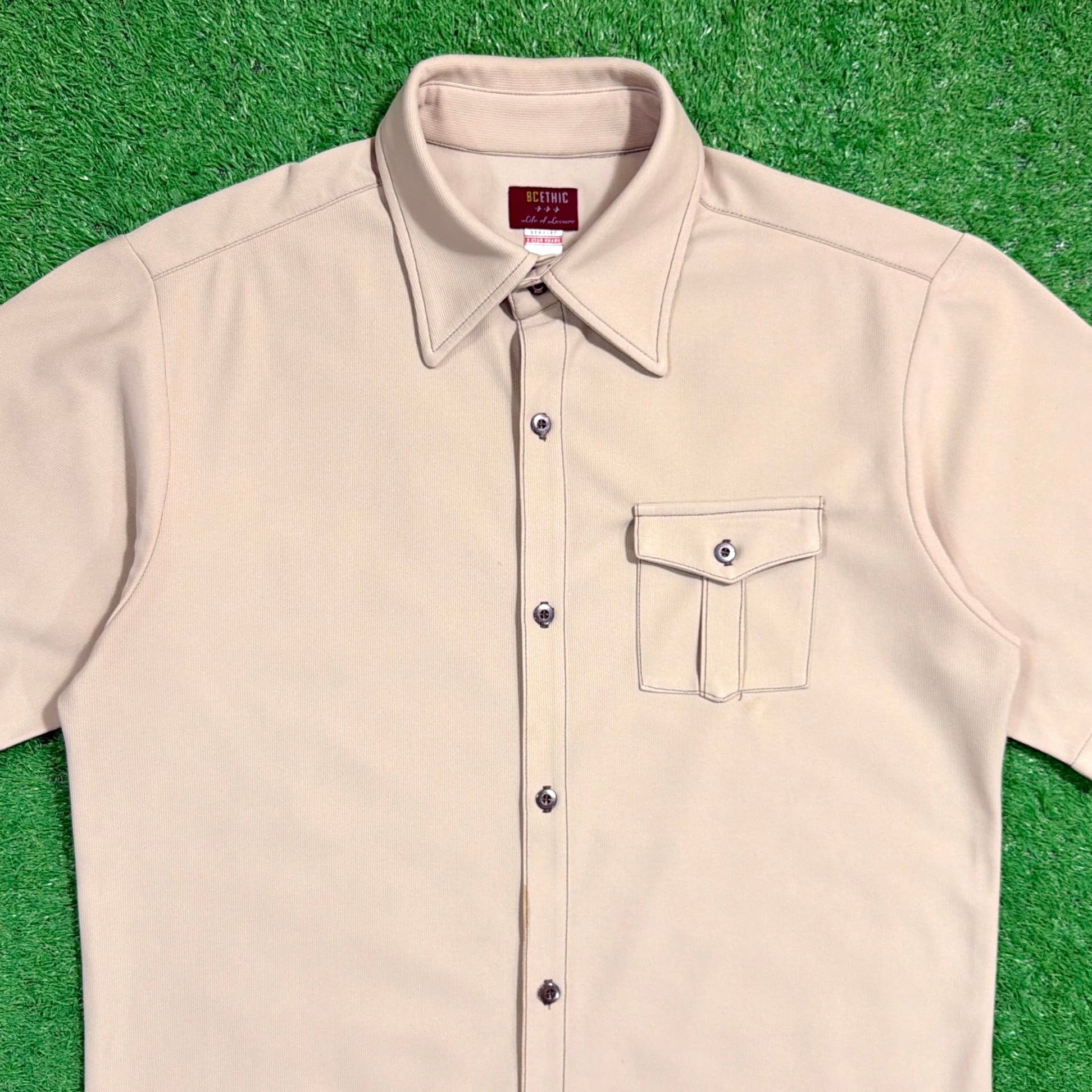 1990年代のアメリカ製の半袖ポリエステルシャツです。