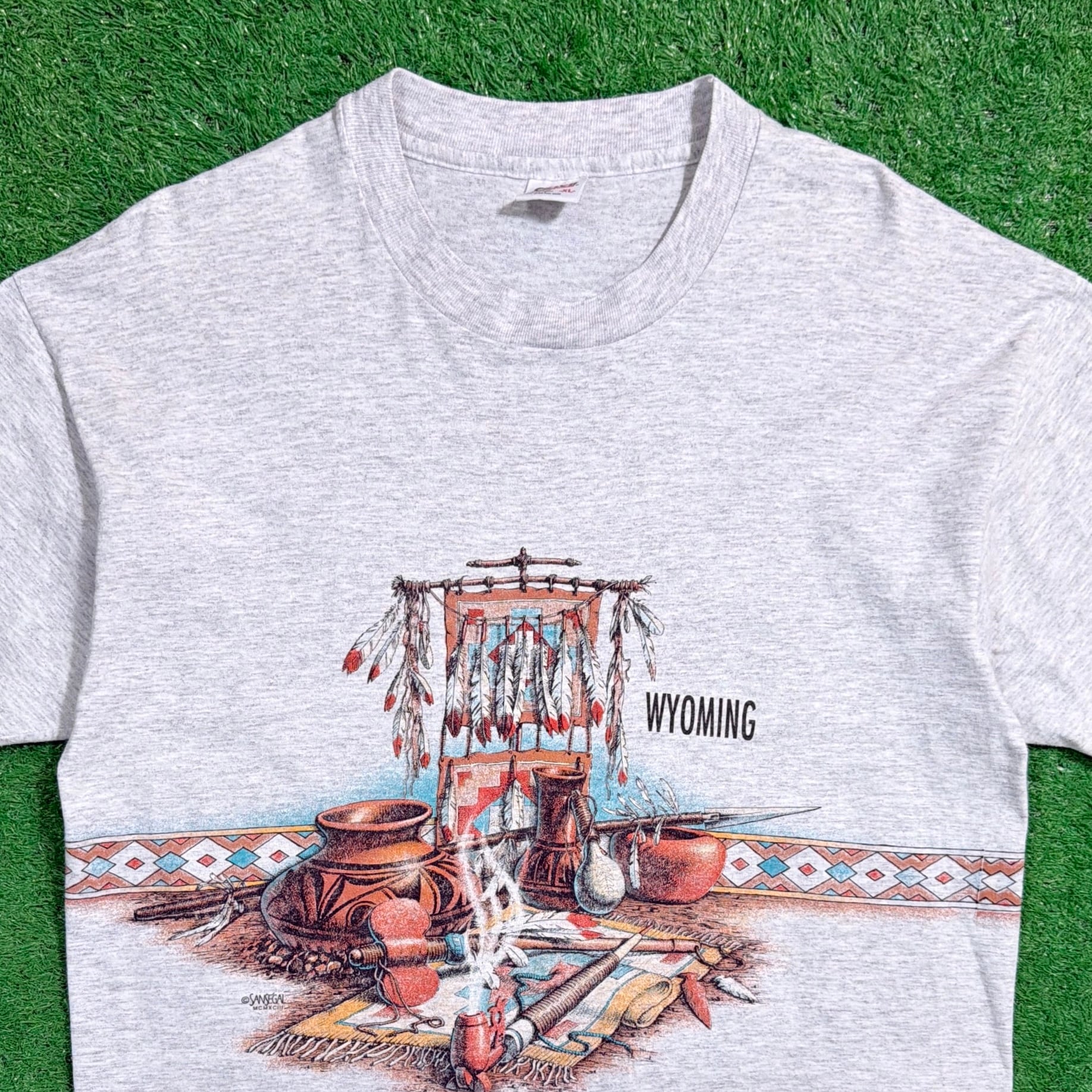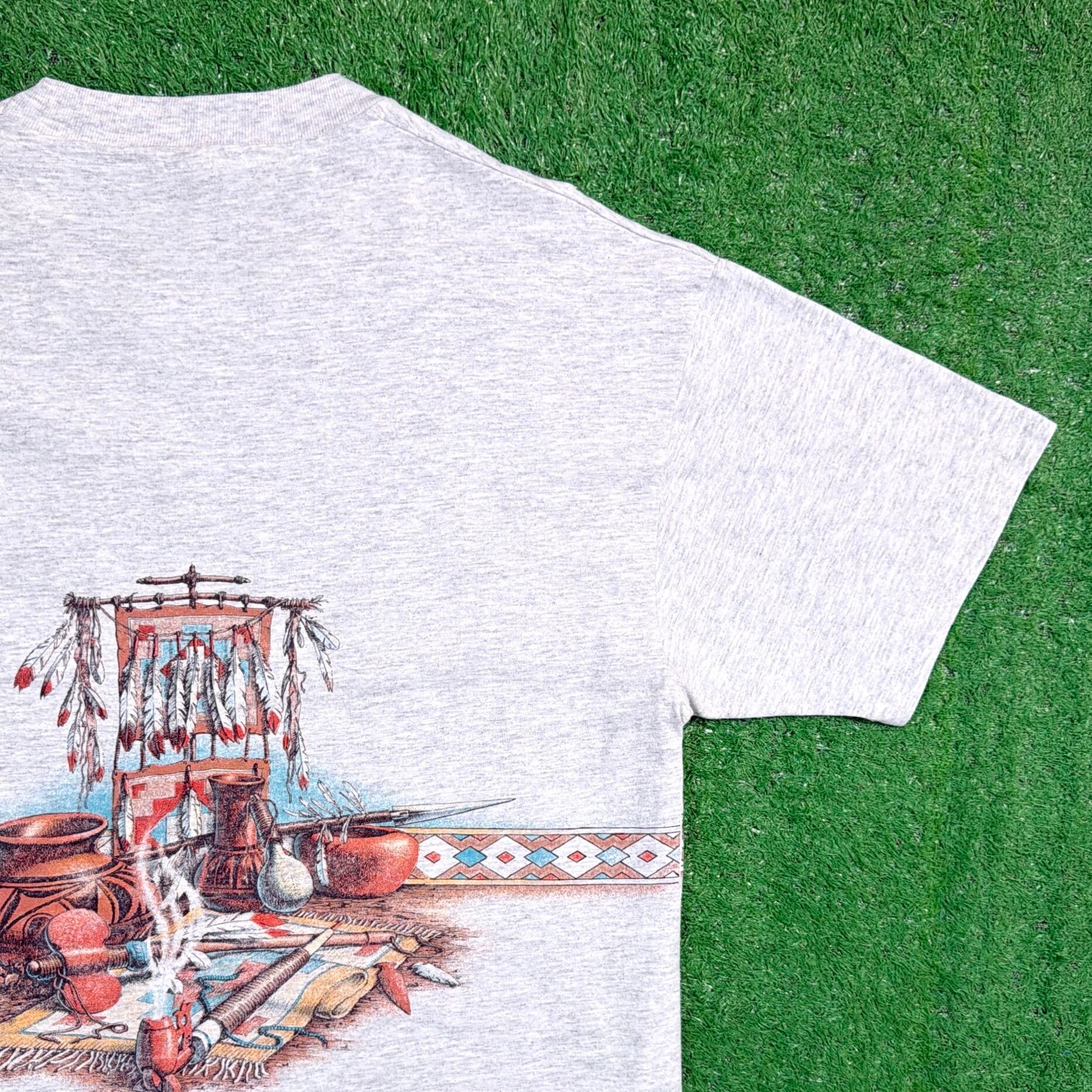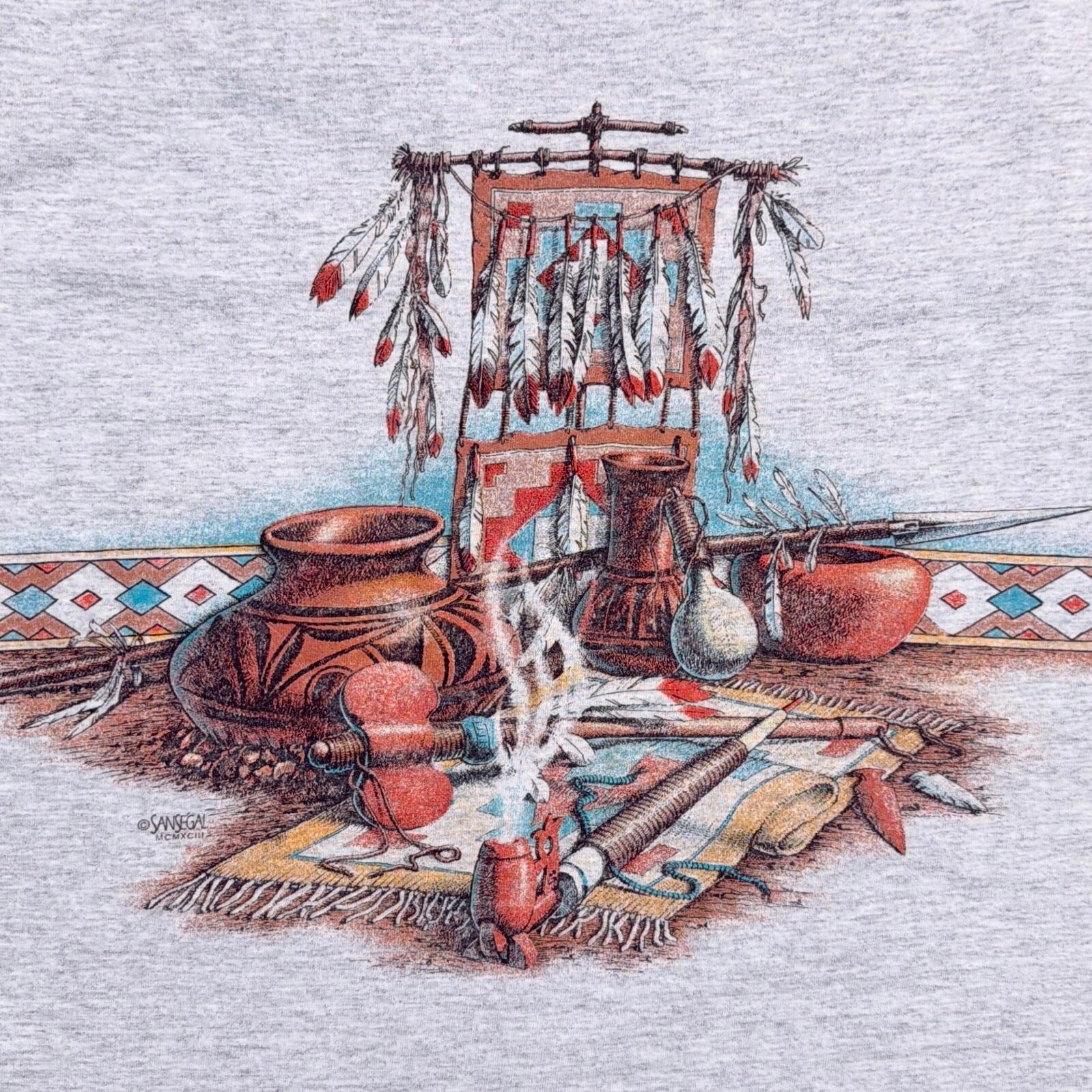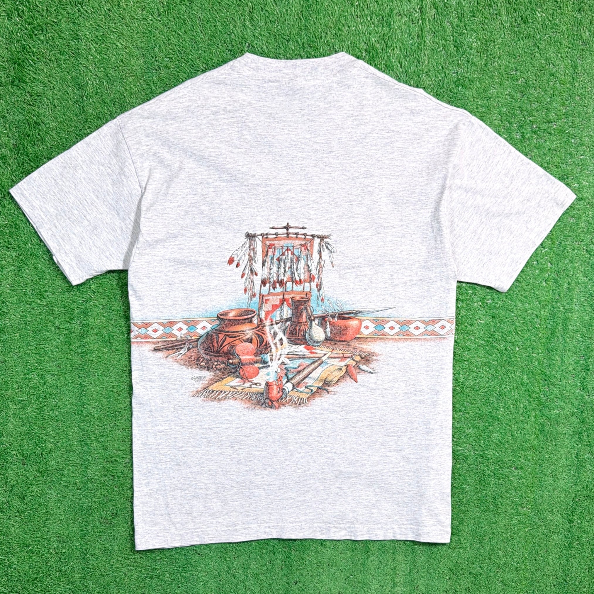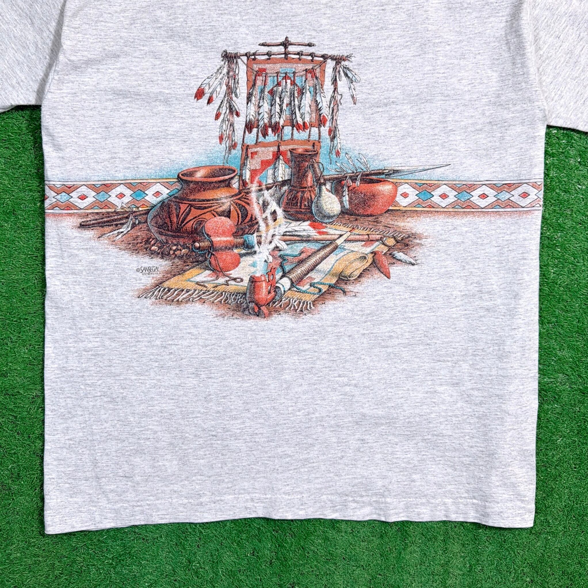 【Men's】 90s ネイティブアメリカン モチーフ イラスト Tシャツ / アメリカ製 USA製 90年代 ティーシャツ T-Shirt 古着 1734