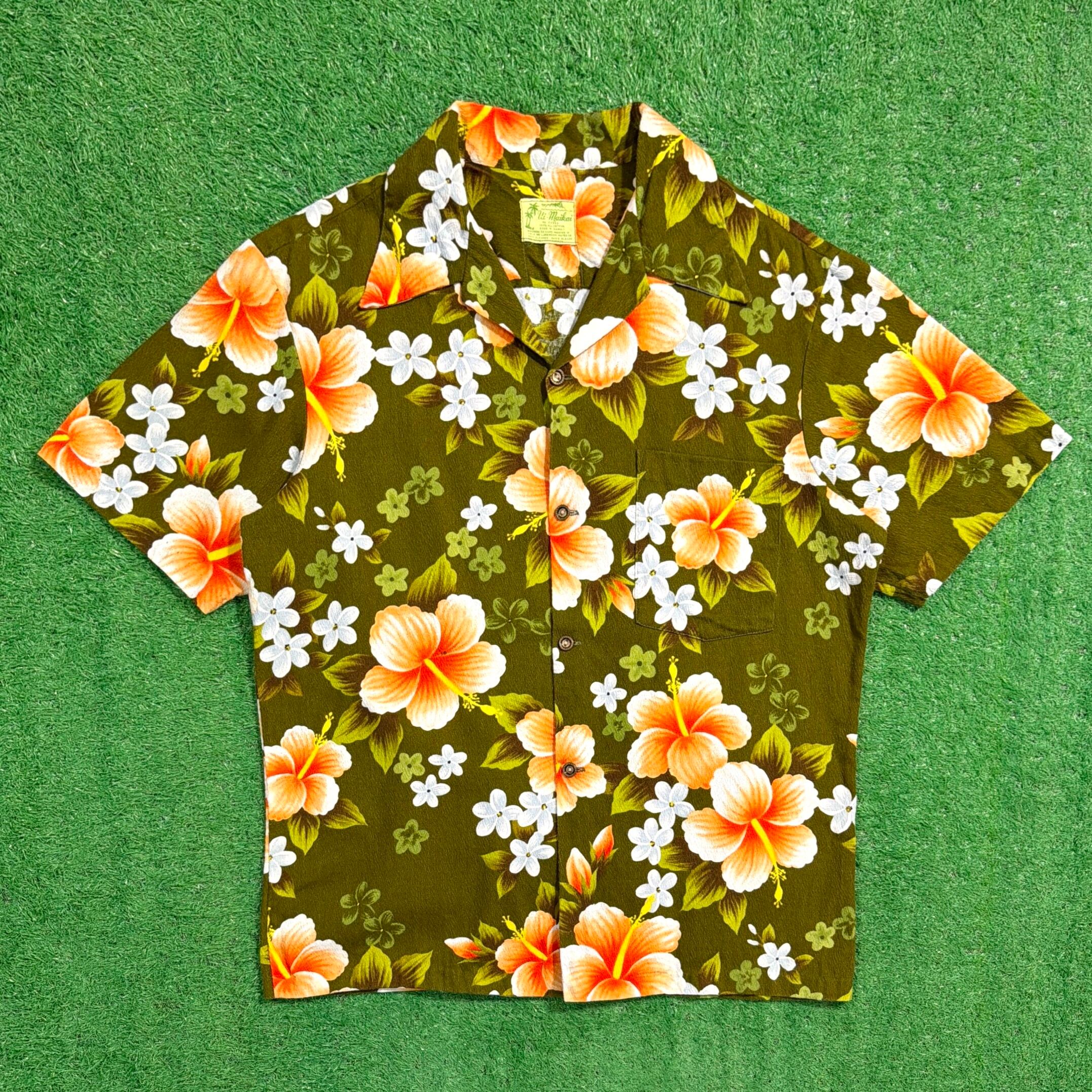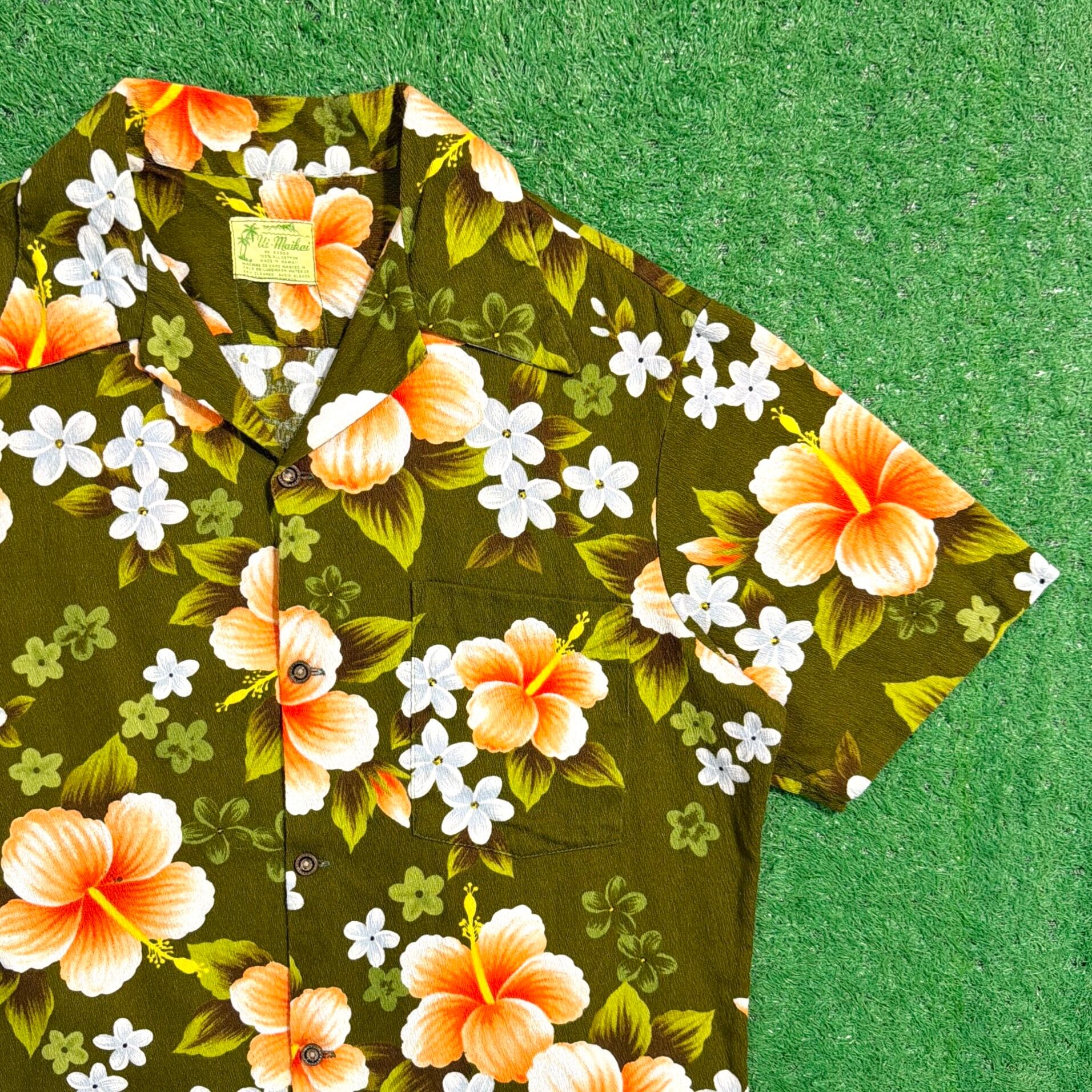 【Men's】 70s 縮緬素材 アロハシャツ / ハワイ製 70年代 シャツ アロハ 古着 メンズ 1741