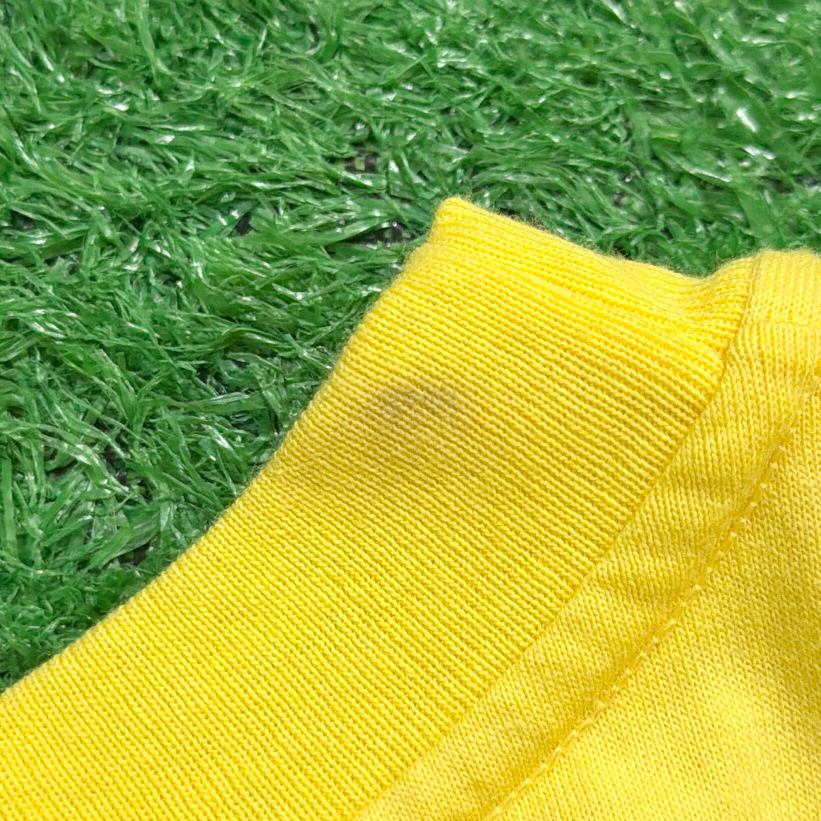 発色の良いイエローボディにブラックプリントのコントラストも抜群で、1枚でしっかり主役になるアイテムです。