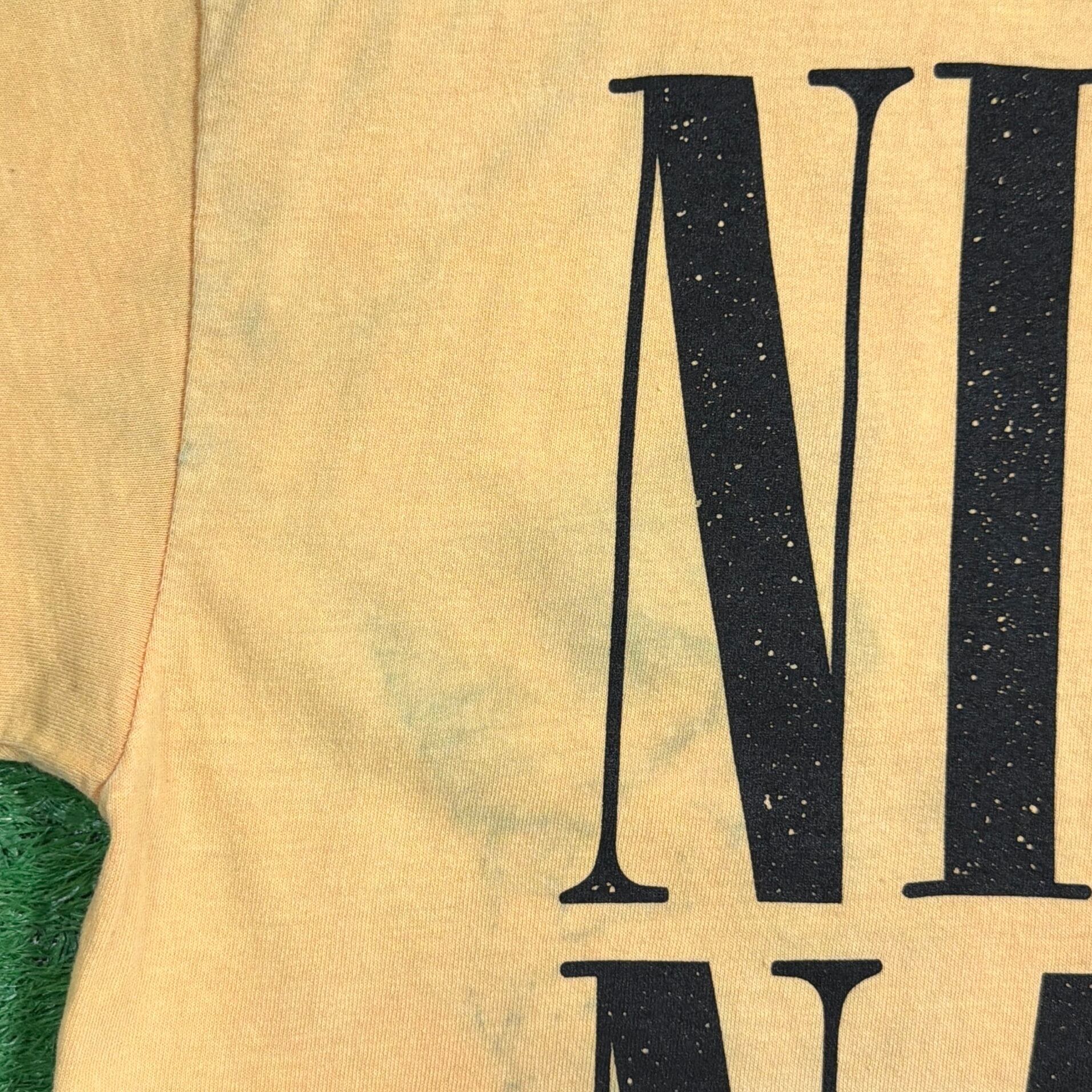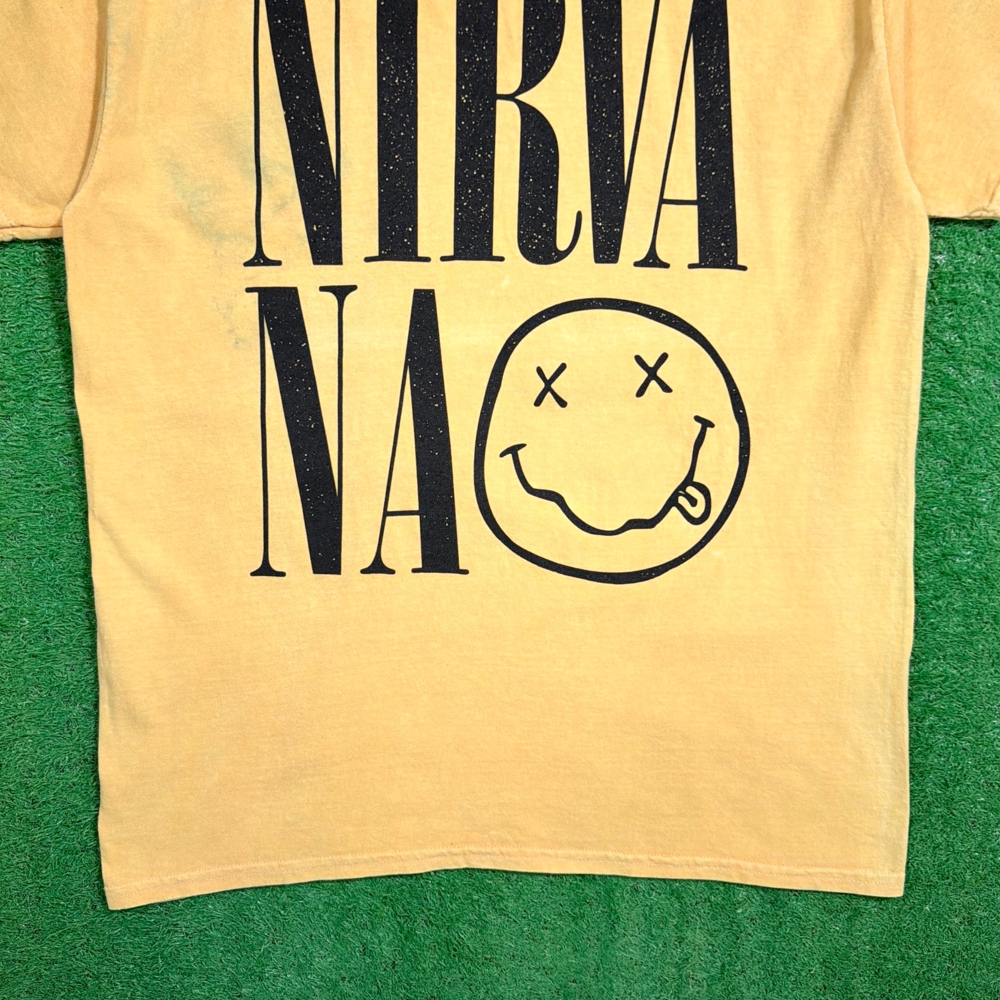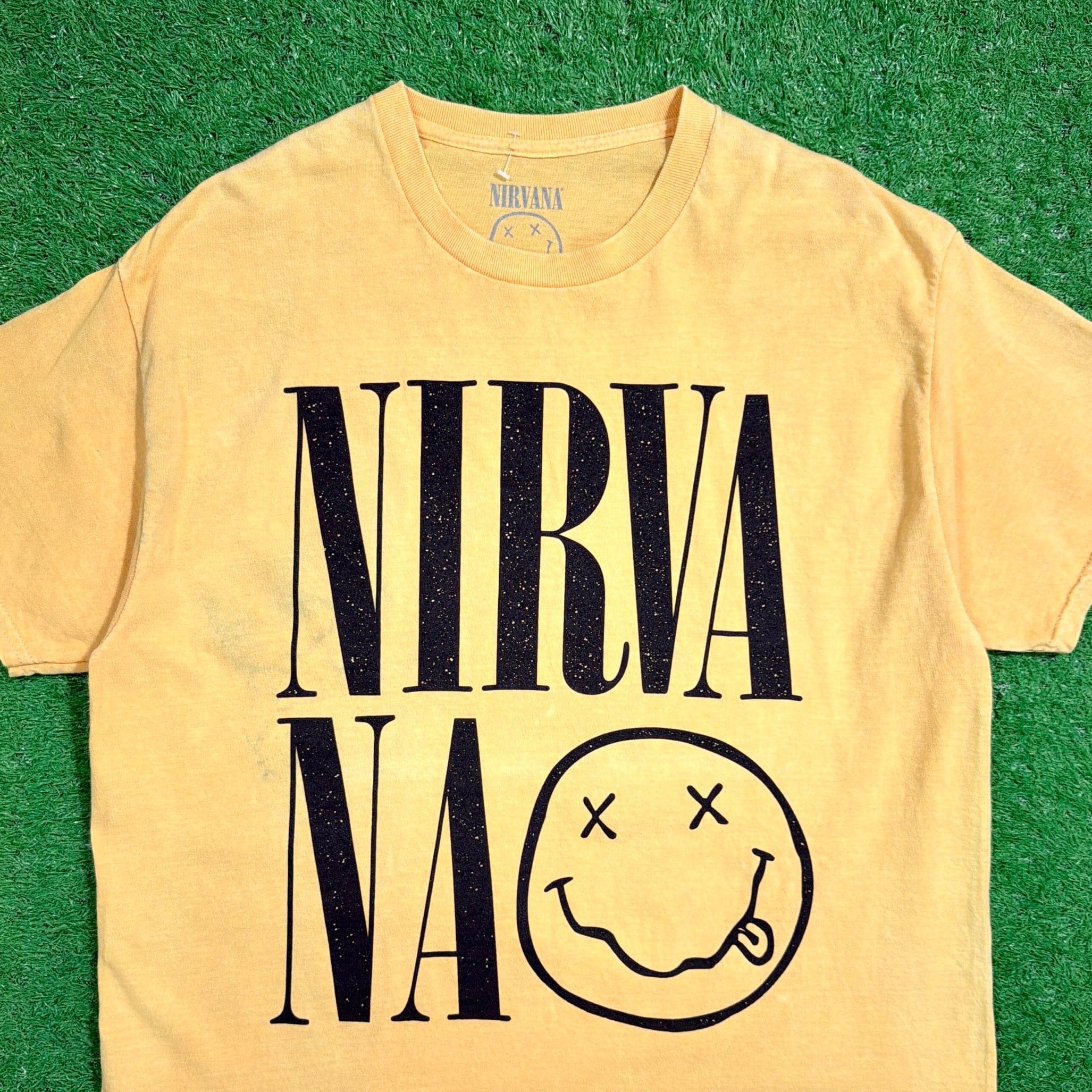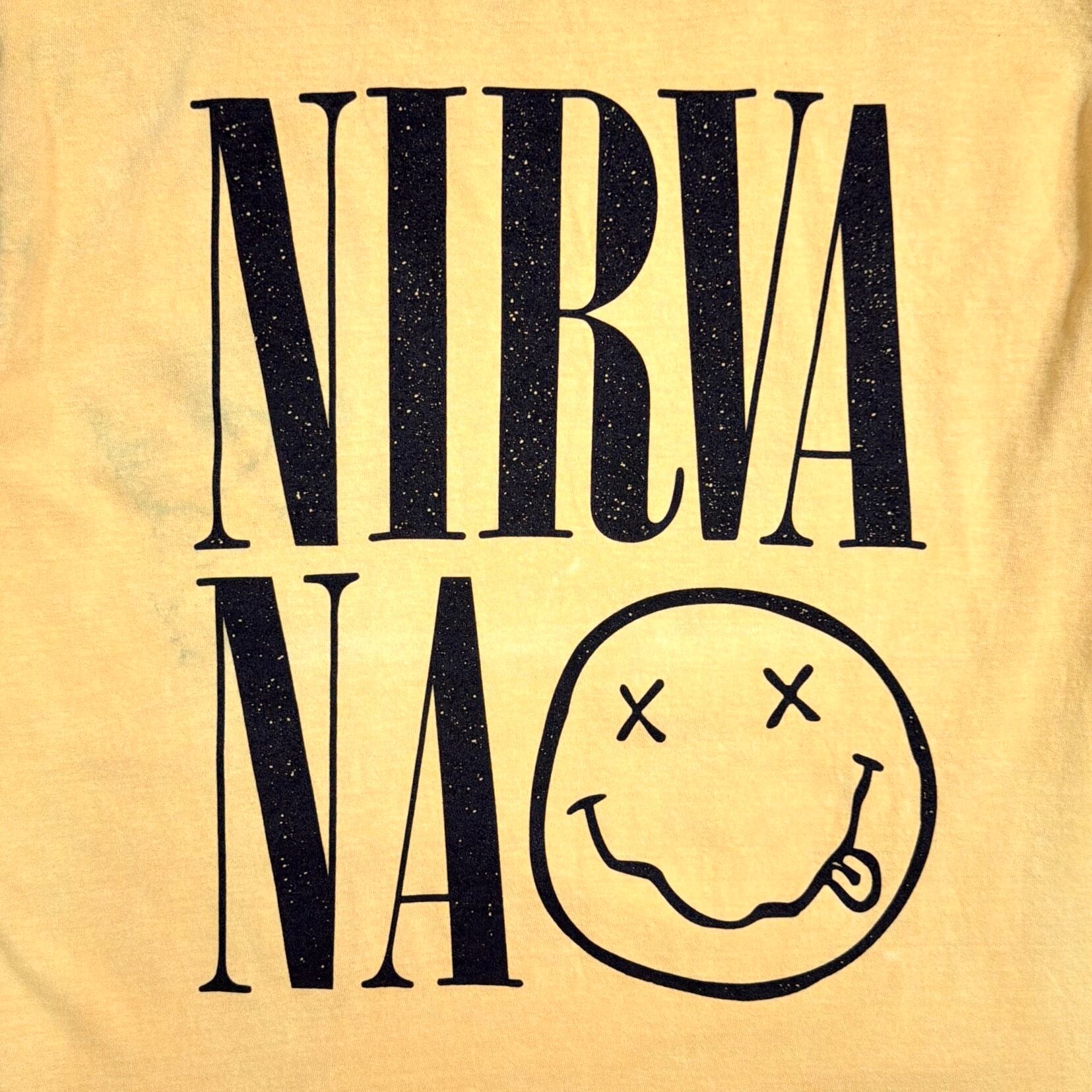 NIRVANAは1990年代を代表するグランジバンドで、シンプルながら強いメッセージ性を持つデザインが特徴。このアイテムもその世界観をしっかり感じられる一枚です。