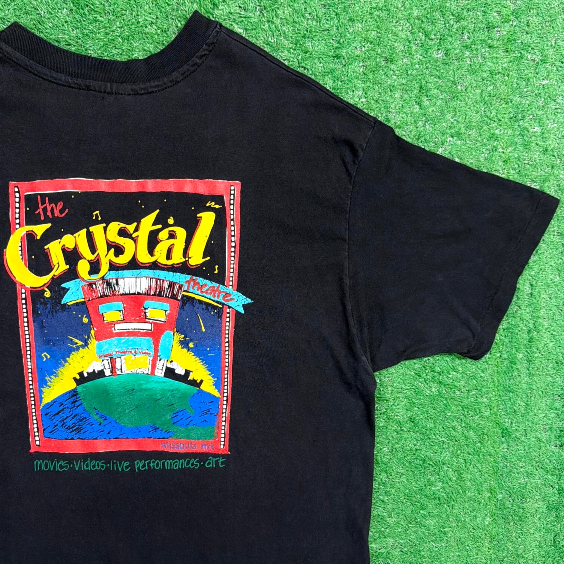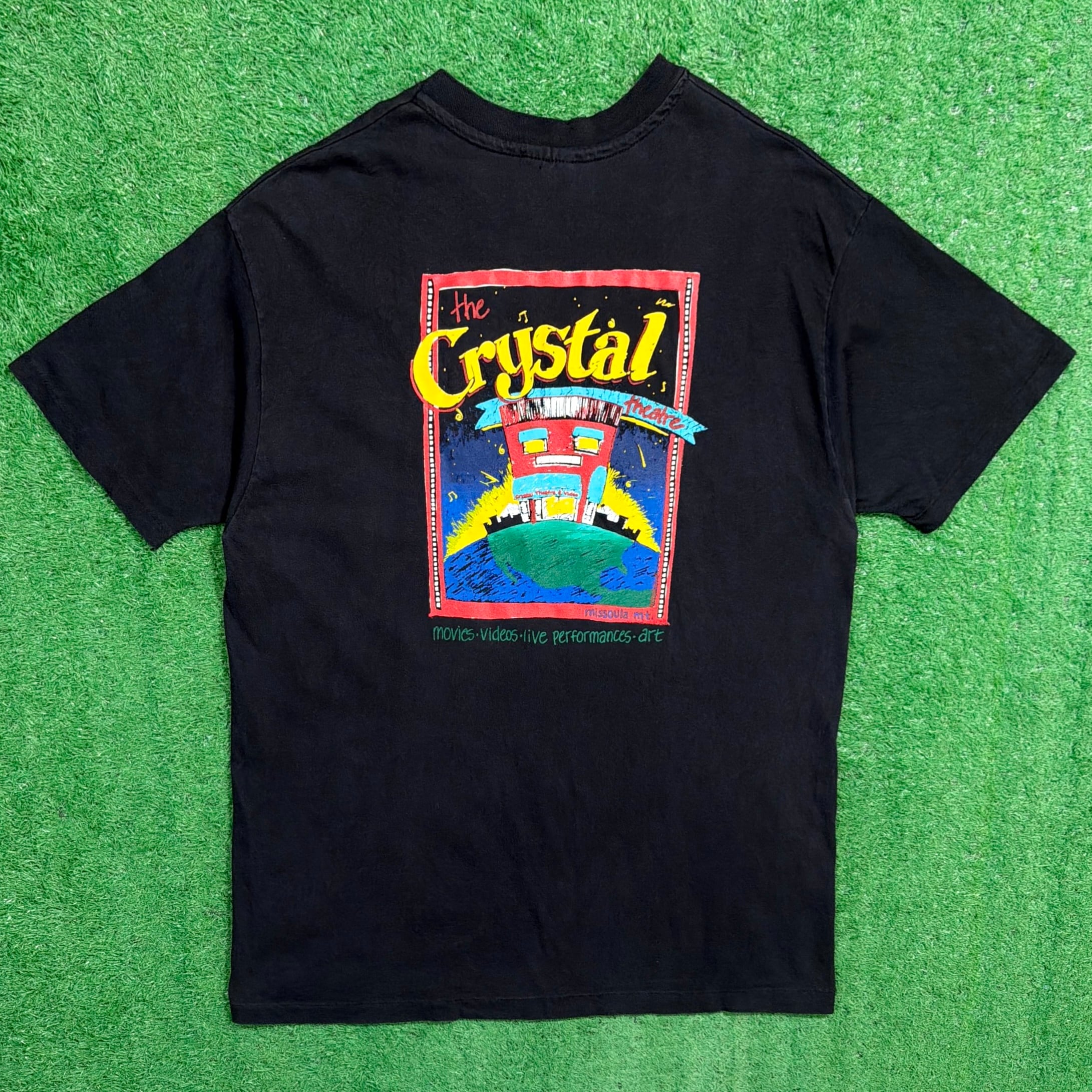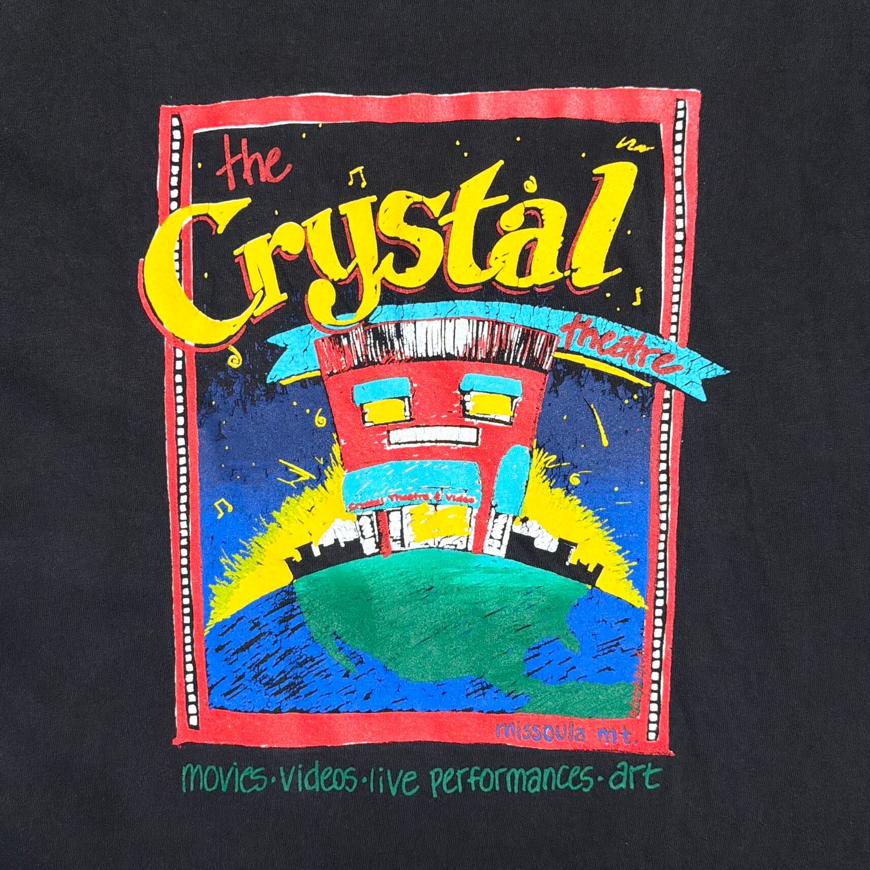 「CRYSTAL THEATRE」のプリントが入る一枚で、アメリカのシアターやライブ会場に関連したデザインと見られるアイテム。
