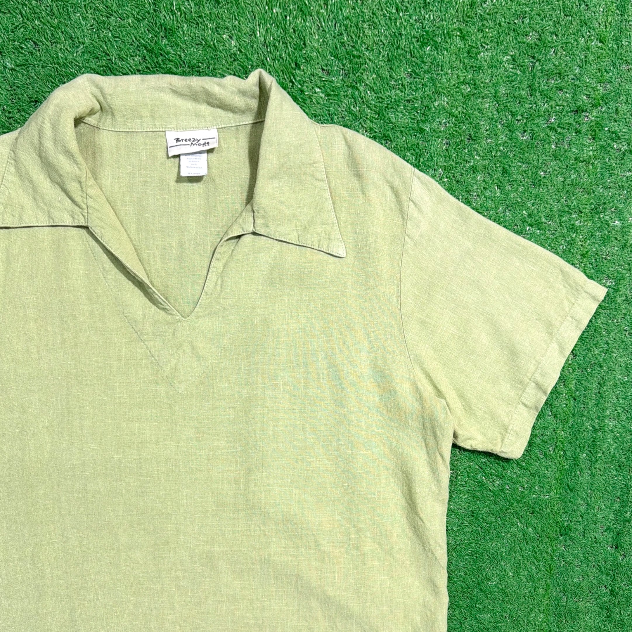 1990年代のアメリカ製、リネン素材の開襟プルオーバーシャツです。