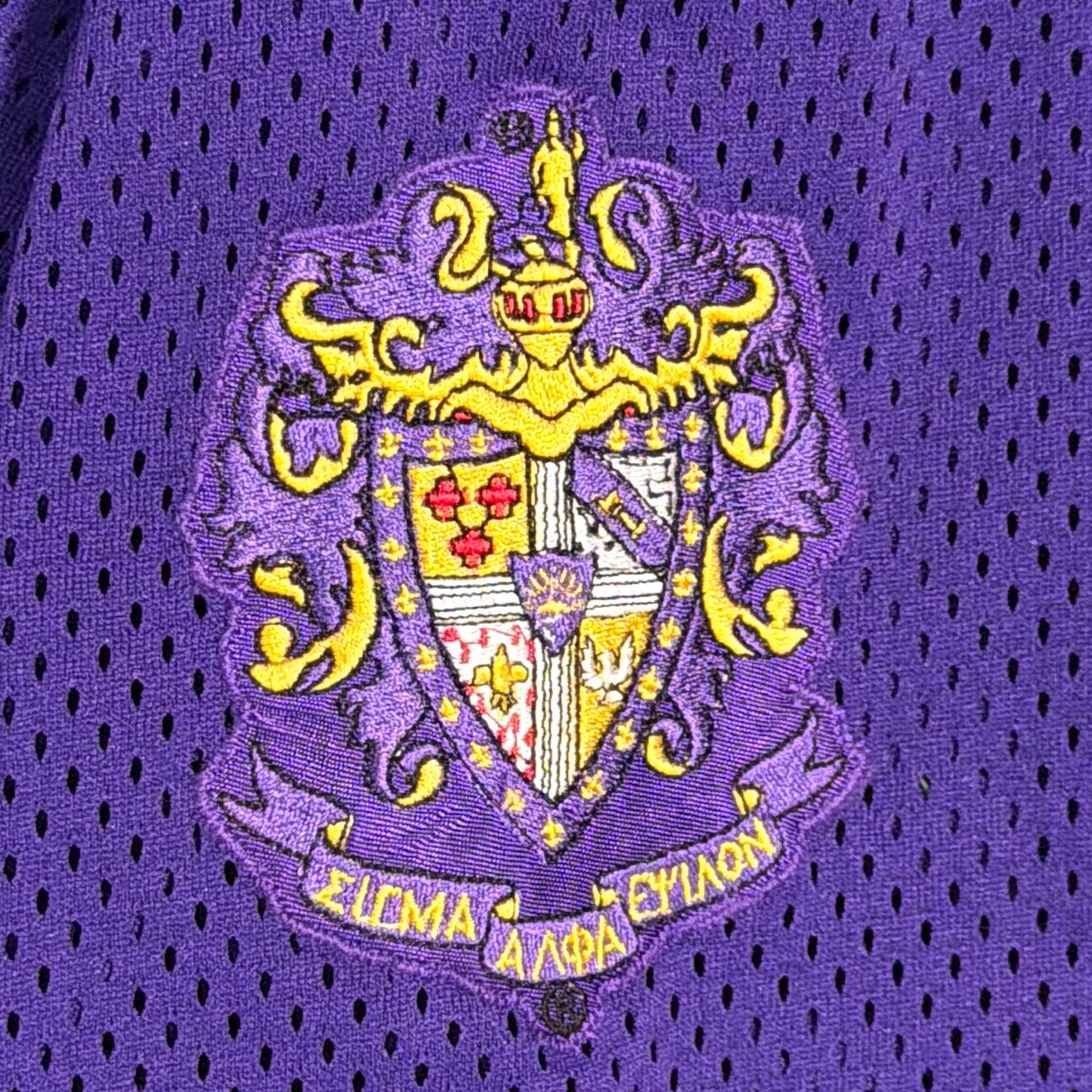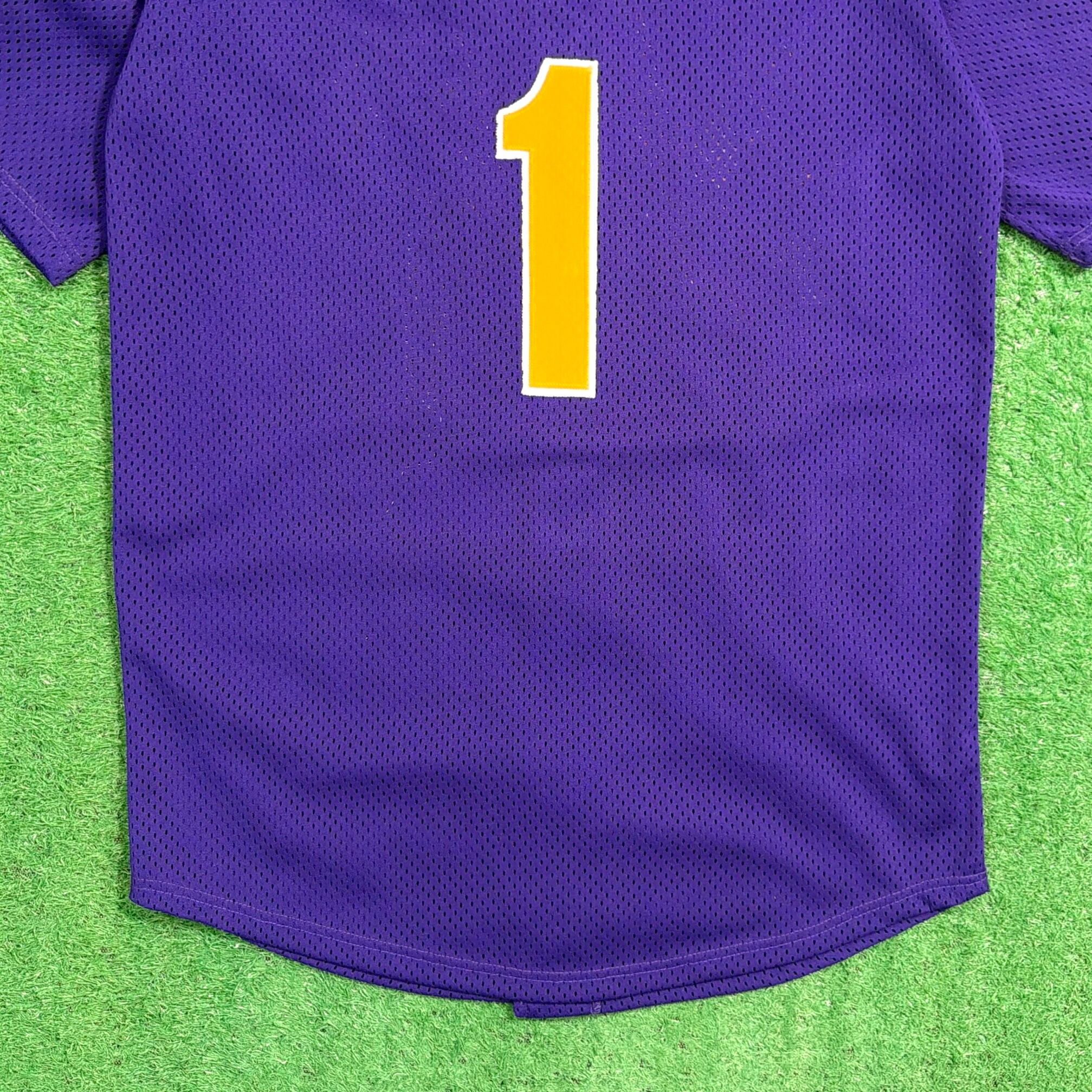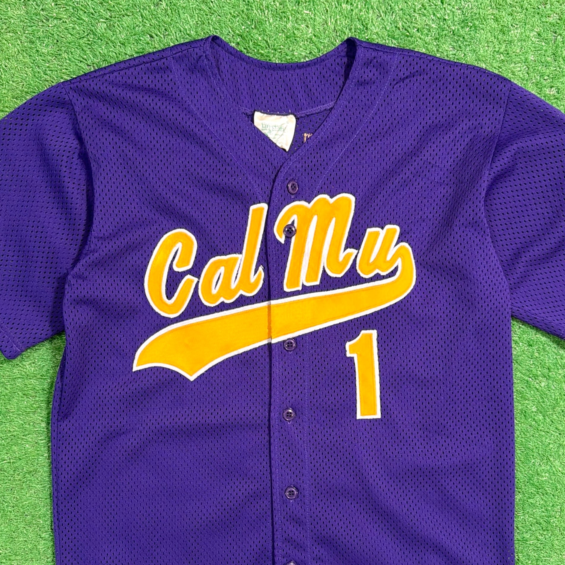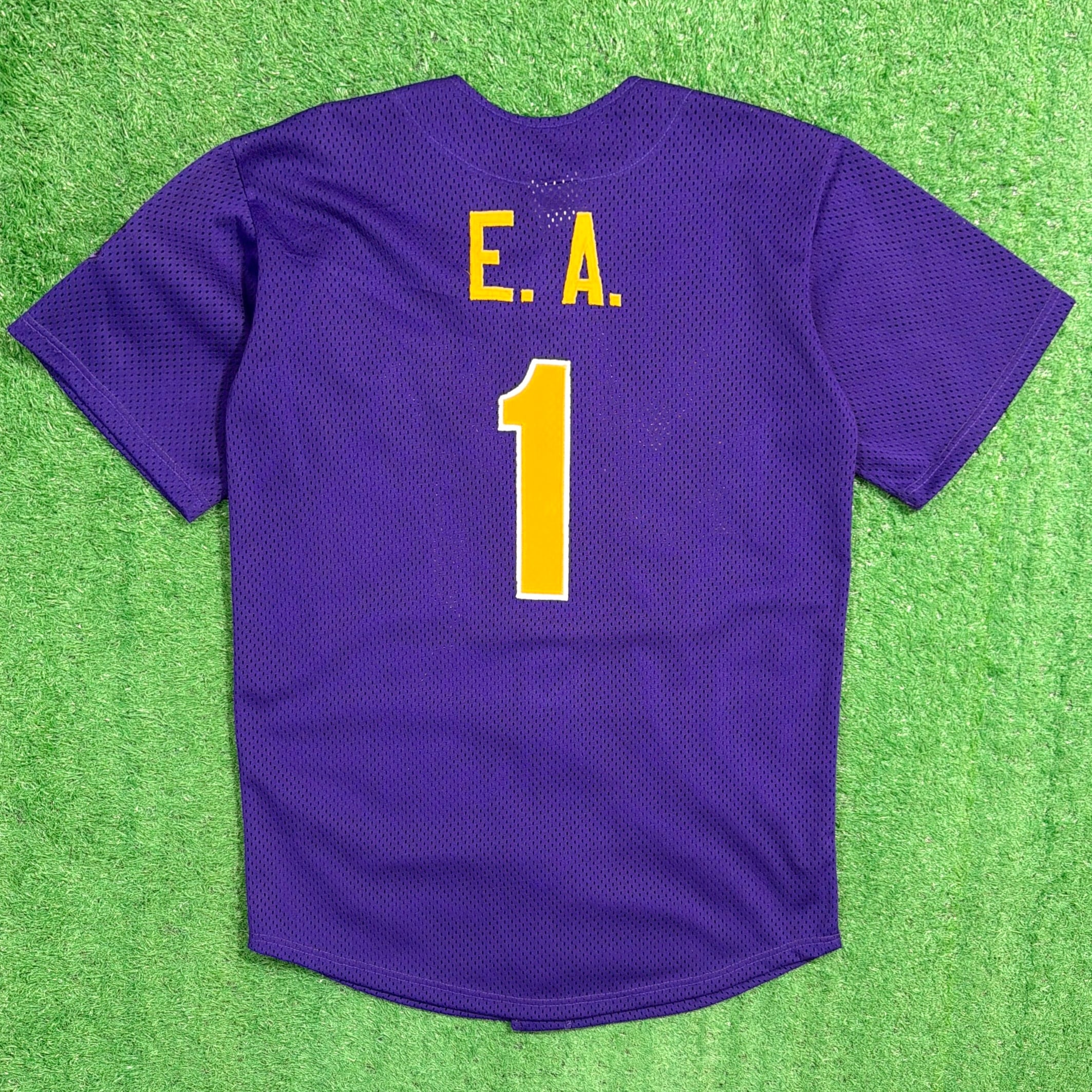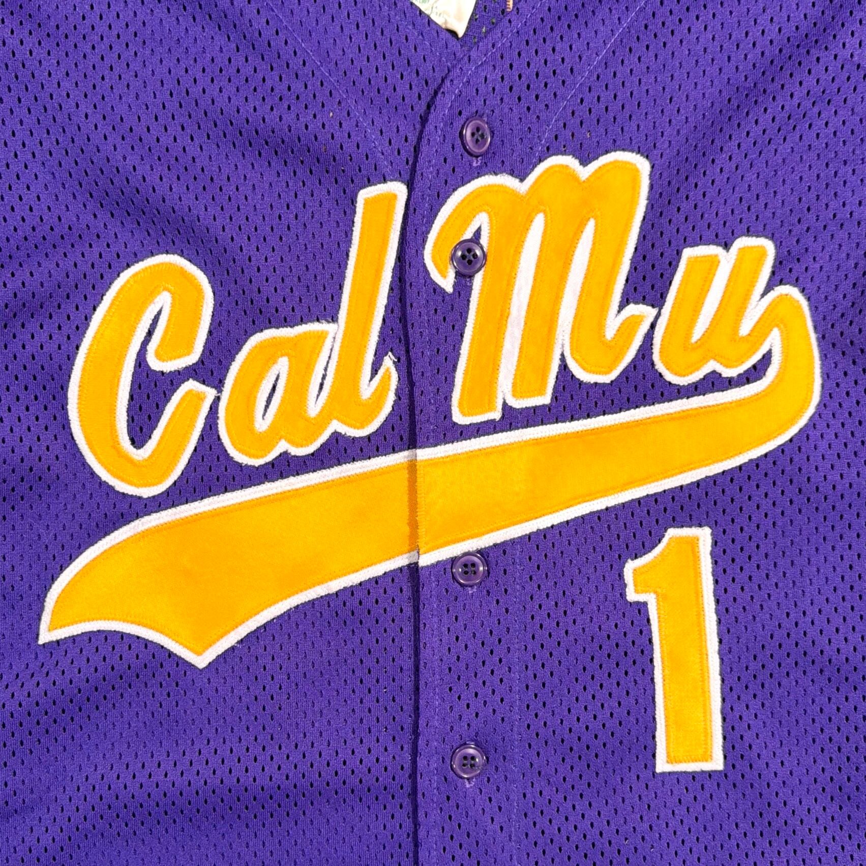 パープルのボディに「Cal Mu」のロゴとナンバリングが入った、スポーツチームを思わせるデザインが特徴的な一枚。バックには「E.A.」と番号が入り、実際のユニフォームのようなリアルな雰囲気も魅力です。