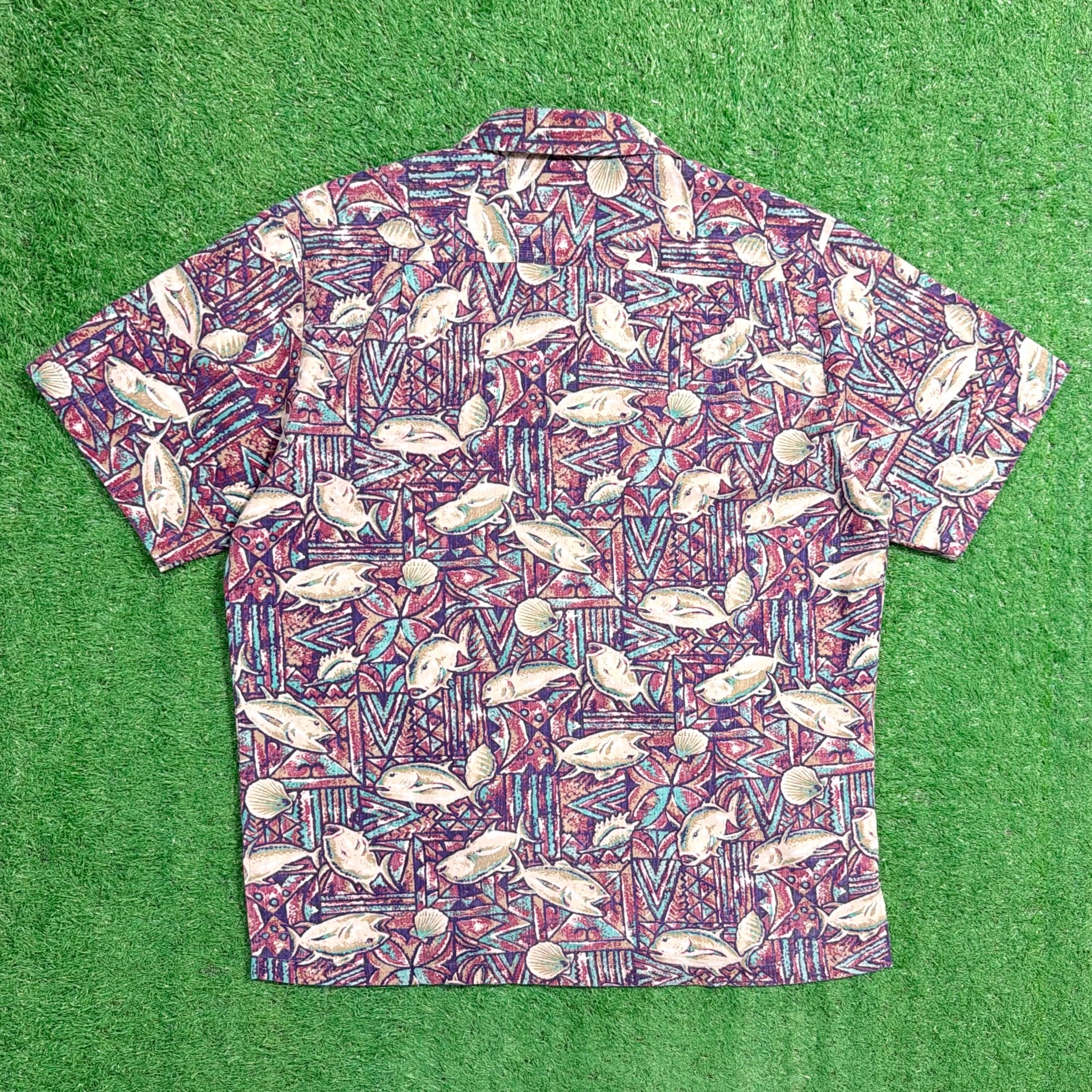 【Men's】 80s - 90s 魚柄 アロハシャツ / ハワイ製 80年代 90年代 アロハ シャツ 開襟 総柄 柄シャツ 古着 1749