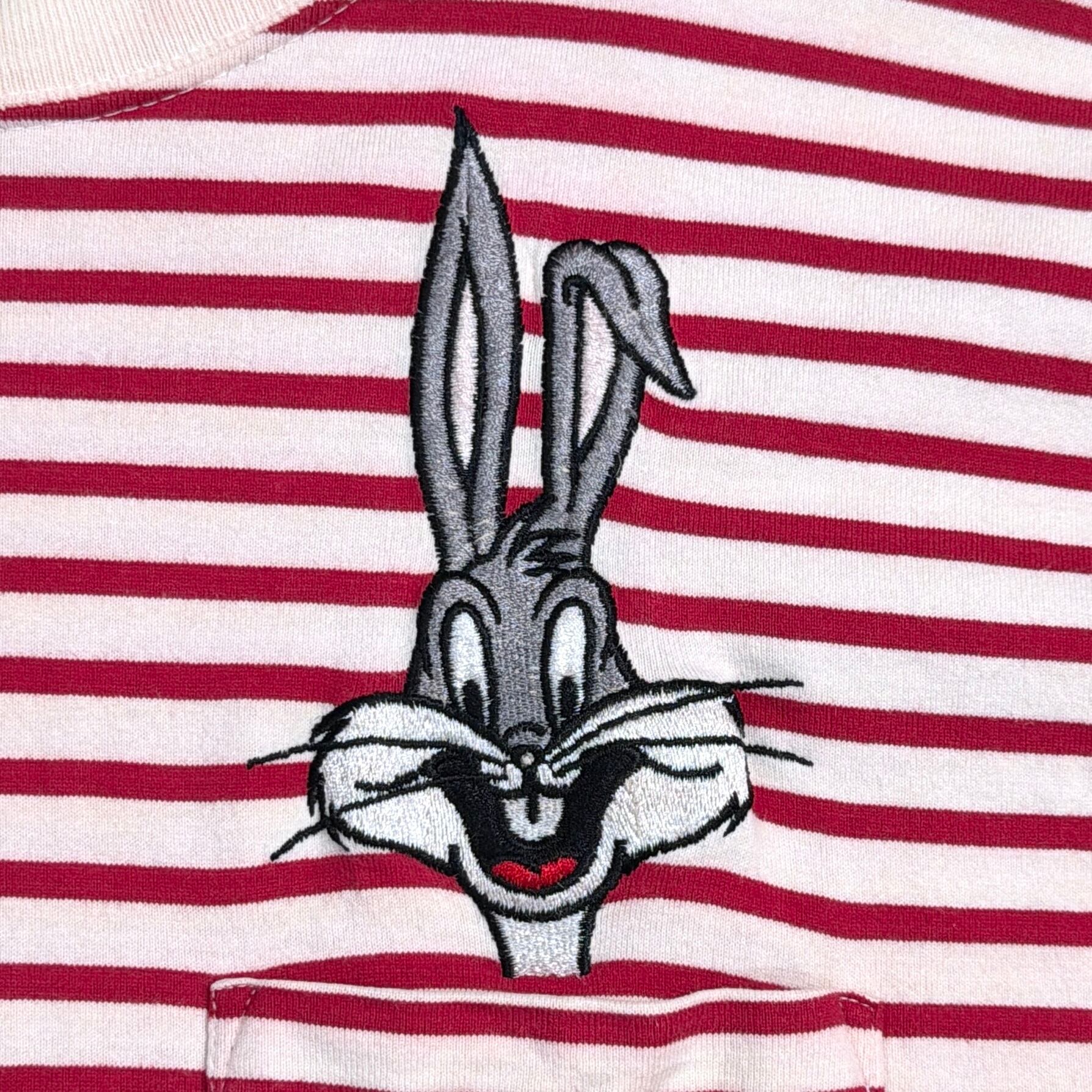 1990年代のLooney TunesのBugs Bunny刺繍入りボーダーTシャツです。